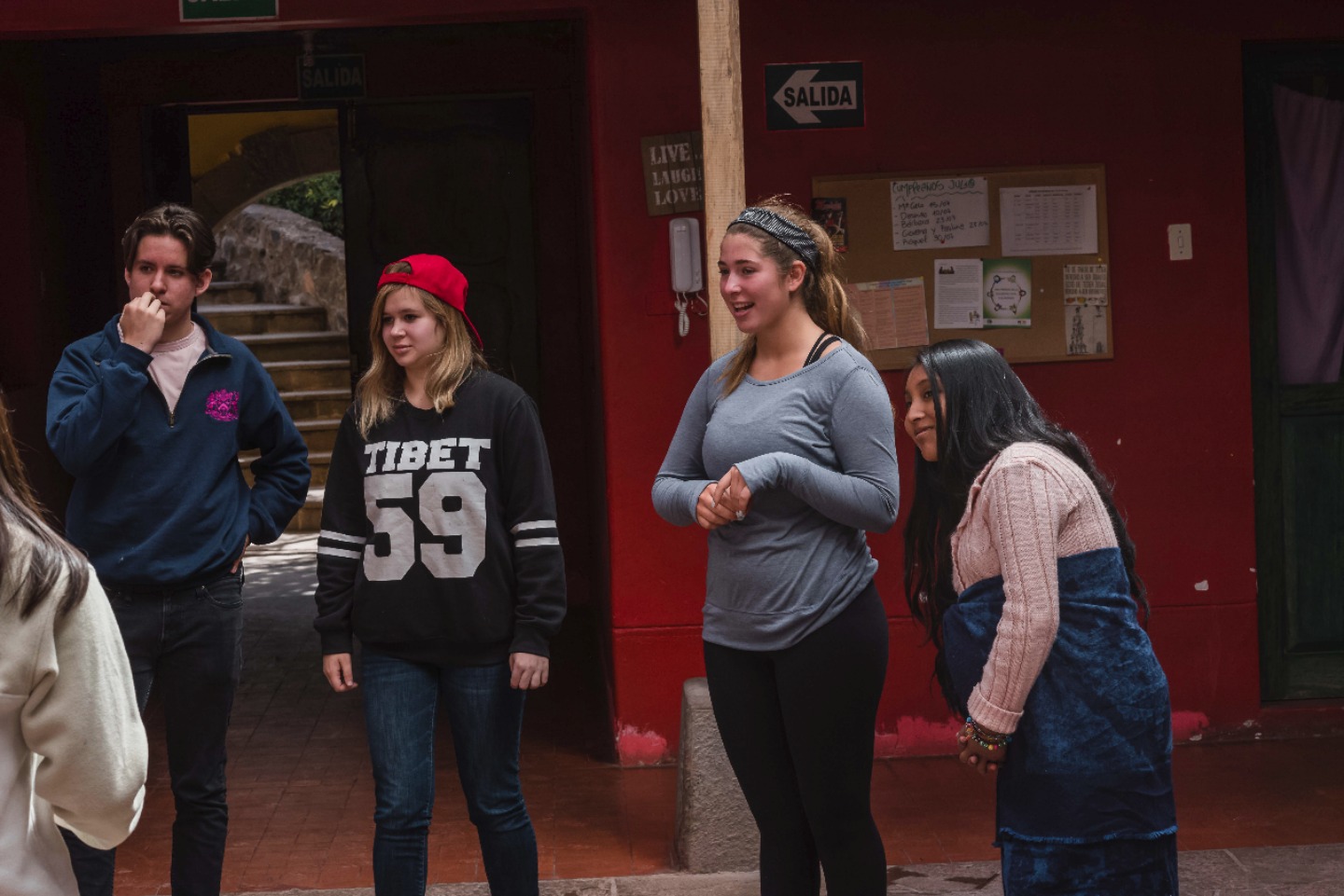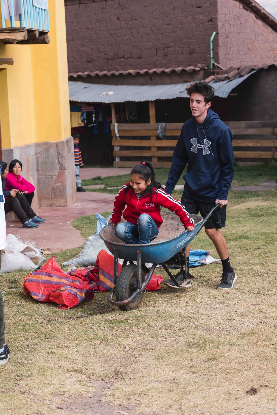 Today, for our first day of service work, we got the privilege of visiting a place called Casa Mantay, a home for teen mothers who were impregnated under unfortunate circumstances and their children. When we first arrived, we were warmly greeted by the house’s adorable dog Greta and given an opportunity to learn about the organization, its purpose, and the way it functions through a ‘speech’ from their director. We were then introduced to all of the mothers who ranged in age from about 13 to 18. Although some were rather shy at first, we all broke the ice with some silly name games that got us interacting and running around with one another. Following a whole tour of the house kindly translated by Javier, we got to work on the major task of the day: shoveling up dirt from where there used to be a wood stove to provide an even surface for them to build a library. As fun as that was, the afternoon was what truly made today an amazing day. We got the chance to actually meet several of the kids and play soccer, have tickling matches, go down slides, and simply joke around with them. Despite the language barrier that the majority of the students on the trip were up against, every single person appeared to make an effort to interact with the moms and children alike and create an environment radiating with happiness in a place that, if one simply heard about the circumstances of the births, may be perceived as depressing. Sad to leave, we all boarded the bus and had a karaoke session featuring Ed Sheeran who we learned the people at Casa Mantay love as well. We had dinner at another local Peruvian restaurant that had everything from salad to pizza to guinea pig and alpaca. When we returned to the hotel, we ended our long day with our first forum during which we debriefed our day and attempted to define service and respect as we see it. As a group, we decided that service is the act of giving a helping hand, your time, and passion to have a positive impact while showing respect and commitment without any expectation of reward; it also includes stepping out of your comfort zone to engage in selfless acts that change you and others for the greater good. The part of the forum that resonated with me, and probably others as well, was the quote Skylar shared with us from her high school choir teacher that says, “respect is what you have when no one is watching.” With that, we all headed to our rooms for a good nights sleep and loads of anticipation for what’s to come.