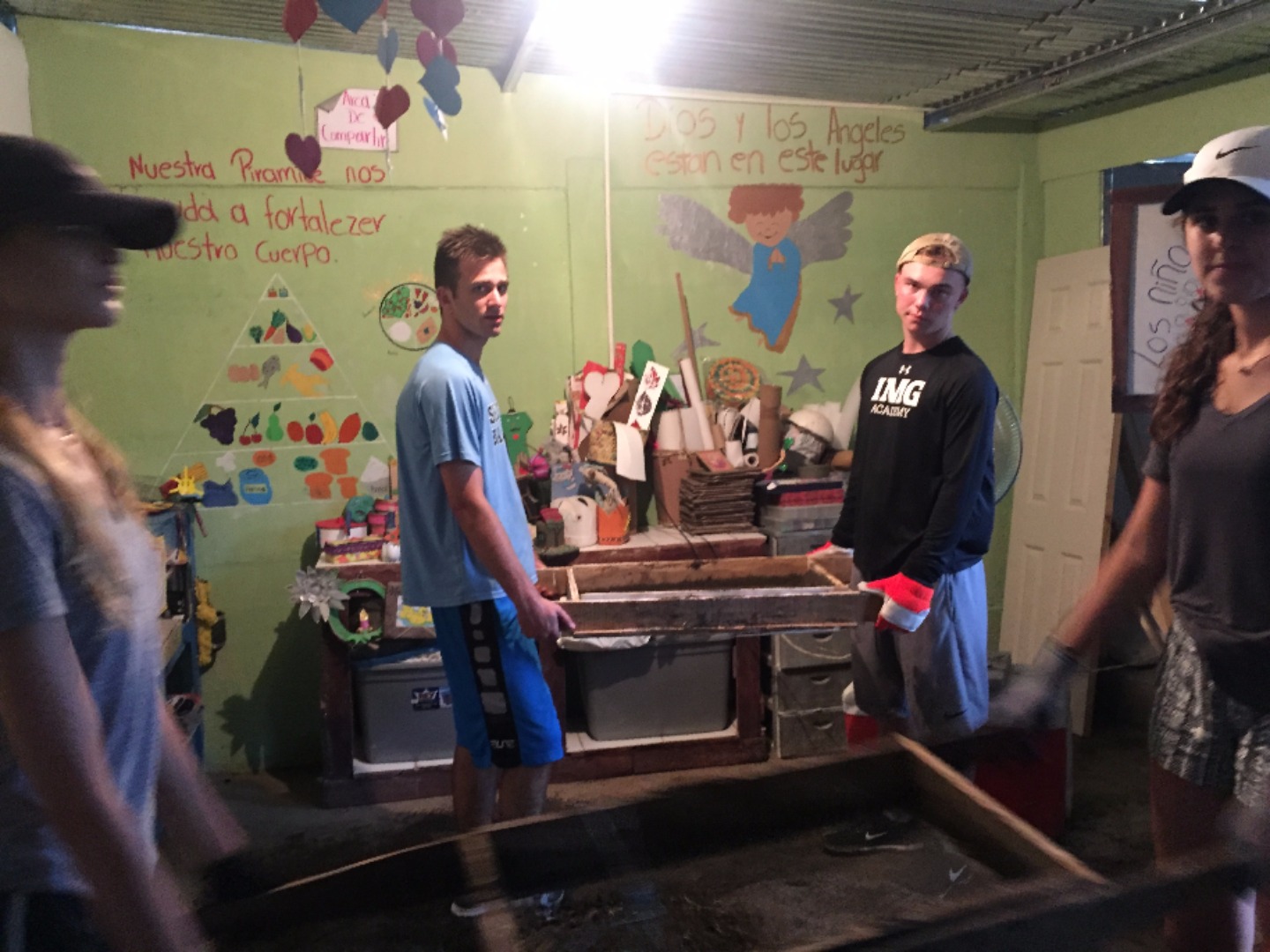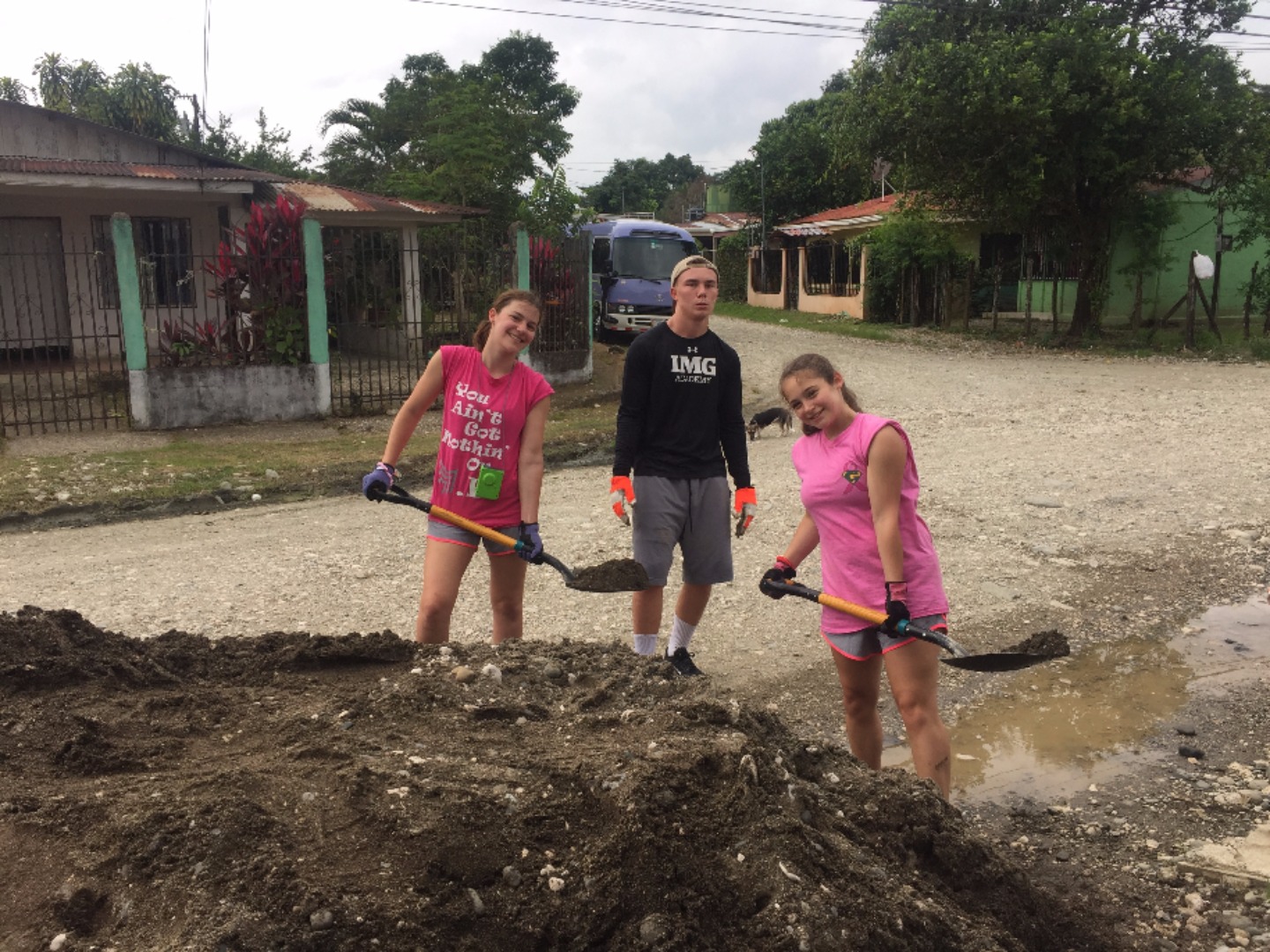 Today we woke up and ate delicious pancakes for breakfast made by Josh. Then we departed on our way to work for Fatima in Rio Claro. We dug up tons of sand and put it in buckets and transported it to help build a new floor in a school. We all felt like there was so much work to be done and were expecting more help from the people there. I’m sure the remaining days will be more gratifying as we start to see the closing of an entire project. Fatima first told us how excited she was to have us there and gave us a bit of a background story of her life. Fatima cooked a very good lunch for us and made a good snack. We are looking forward to an even better couple of days. On a side note, we had a very quiet and enjoyable bus ride to Rio Claro. We ate fruit loops and slept. After service, we checked in to our new home for the next five nights and ate a very filling dinner. The boys are looking forward to a relaxing night by the pool and beach. The girls will probably be hanging out in their room. Matt and Charly out peace yo.