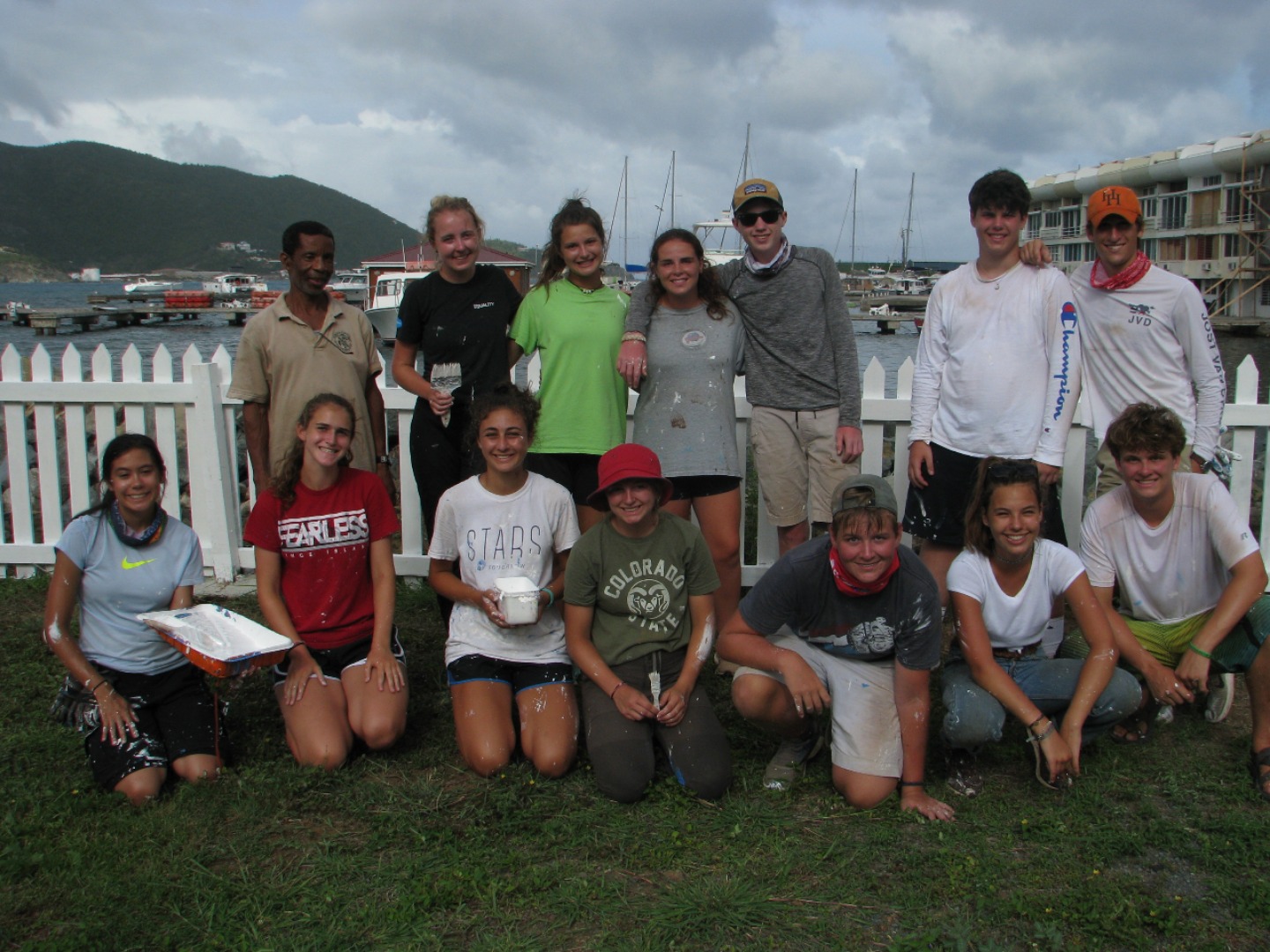 Day numero 13: started with a bang, literally, with a 5-second honk to signal our departure from the fleet to go to Road Town. This particular morning started in the usual fashion with Stefan, Shannon and I j-chillin on the roof of our boat, and of course, the rain started coming down to wake us up again. After the 3 of us + Ty took all the clothes off the lines and threw them in the main area. Of course, at this point in the morning, I have to check on my man-crush-everyday, Jaden… noticing that he wasn’t 100% awake, I did the only reasonable thing, locked him in his foxhole (sneaky sneaky). Once arrived at the Moorings dock area we loaded up all our stuff onto the dock and headed to our taxi. BUT WAIT! THERES MORE! Would it be another day without one of us getting injured in some way, emotional, physical or otherwise? Heck no. Today’s victim was Brynnie Boo’s foot. OH LORDY THAT’S A LOTTA BLOOD (but not it was just wet). We decided to leave her with our resident medic, Pirate Johar. Fast-forward 15ish minutes, our strong lady Brynn was back in action with a lil limp in her step (aka style points). We loaded up into the taxi and headed for our project for the day: painting a fence of mystery size. After passing a few large fences and dreading the thought of PAINting, we finally arrived at a pretty dope park where a much smaller half painted fence laid. With me and the trusty team #UseAndAbuse (Jaden, Stefan, me, and our lovely captain director of GoBeyond teacher (some other title) Elliot Francis Wright Callaway Evans IV) we hopped right on that fence and began whipping it into shape. About three and a half minutes into our great exercise we realized that we had to paint the other side of the fence which was wonderfully on the edge of some sewage looking water. We finessed some 2×4’s to lay across the dirty water and sent our best man J-drizzle to test them out. The day went on in the usual fashion with the boyz running out of steam first and deciding to eat mustard sandwiches. Because why not? Without boring y’all readers back home with the specifics of our day I’ll just sum it up with a rap… *rap beat* climbing over the dirty water, runnin’ out of the water, damn this sun hotter, can’t even call my father, WORD. Aight, we back on the boat after a gosh darn failure of a taxi rap-off. Blessed with the dock, our showers consisted of the freshest of fresh water. Once we sauced out way back to the boat, we found out that Jaden had used the wrong showers (classic Jaden). Once again #blessed by our captain teacher GoBeyond director Elliyeet Francis Wright Callaway Evans IV we ate dinner not on the boat but on the second floor of a real-life Indian restaurant where Bollywood videos would not stop playing. Putting us all into a trance. Once again team #UseAndAbuse were all late for our regional post-dinner meetings. Fast forward like an hour or two idk lol. Jaden managed to charm a very kind woman (classic once again) into giving us her mega inflatable rubber duckies with a complimentary lollipop for Stefan. We also finessed some dank ramen noodles from her that we are currently about to eat and then go to bed on our newfound inflatables. #RedBullGivesYouWings #sorrymom #kinda #imnotactuallyinsane #muchluv