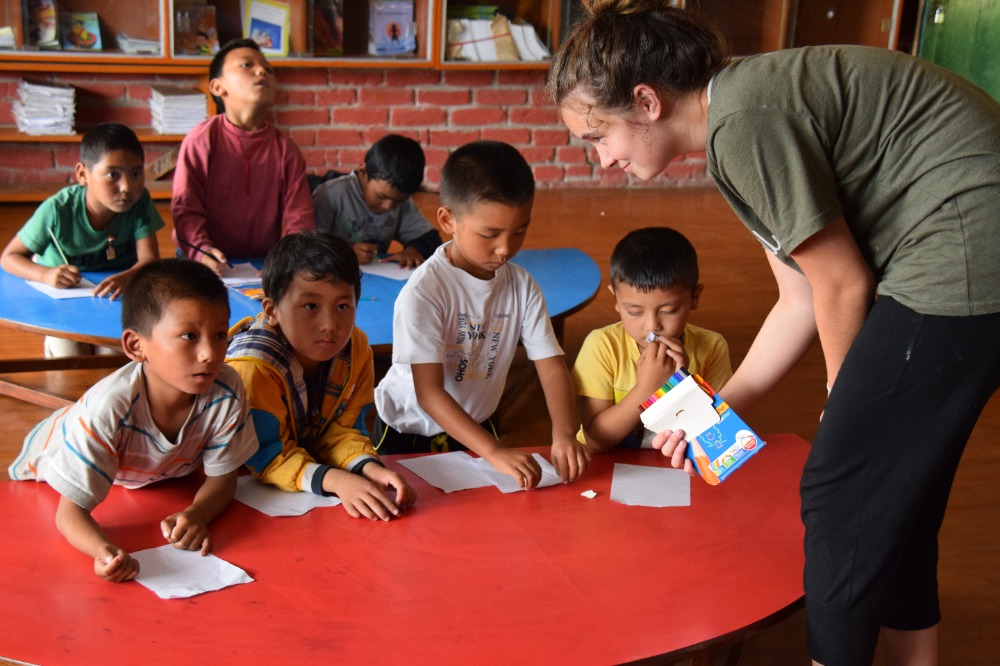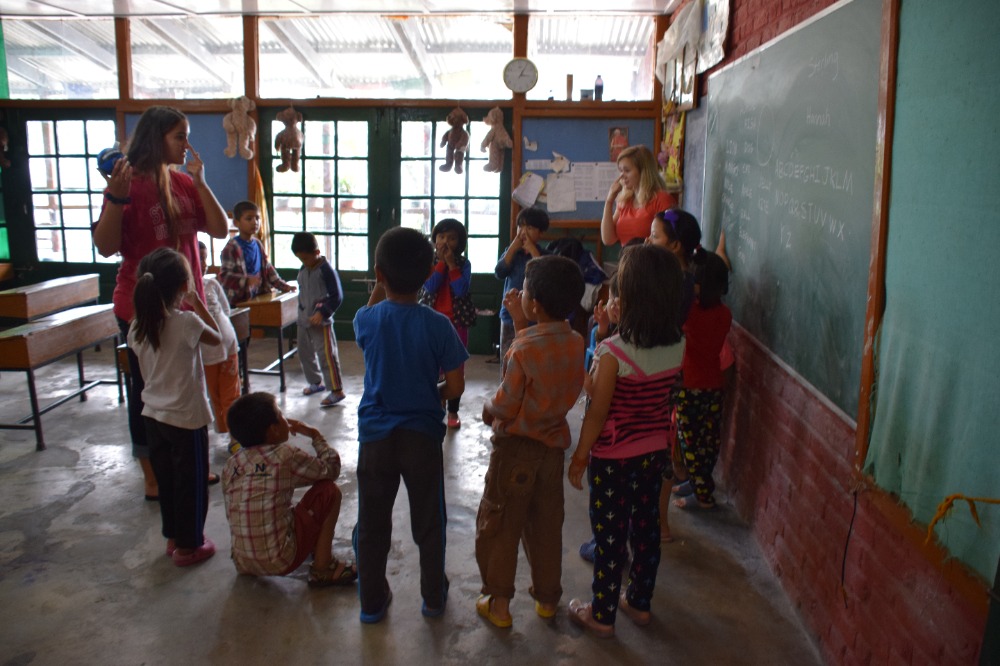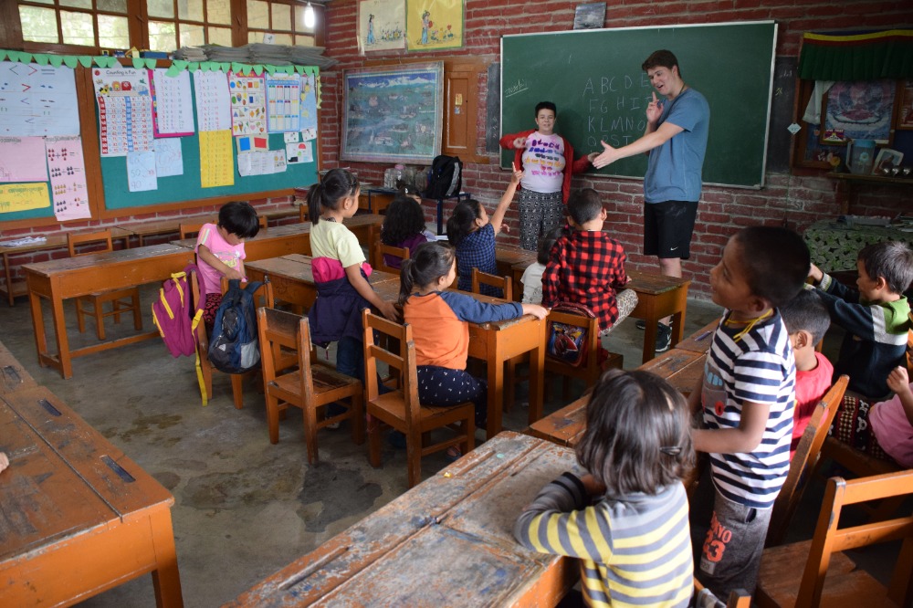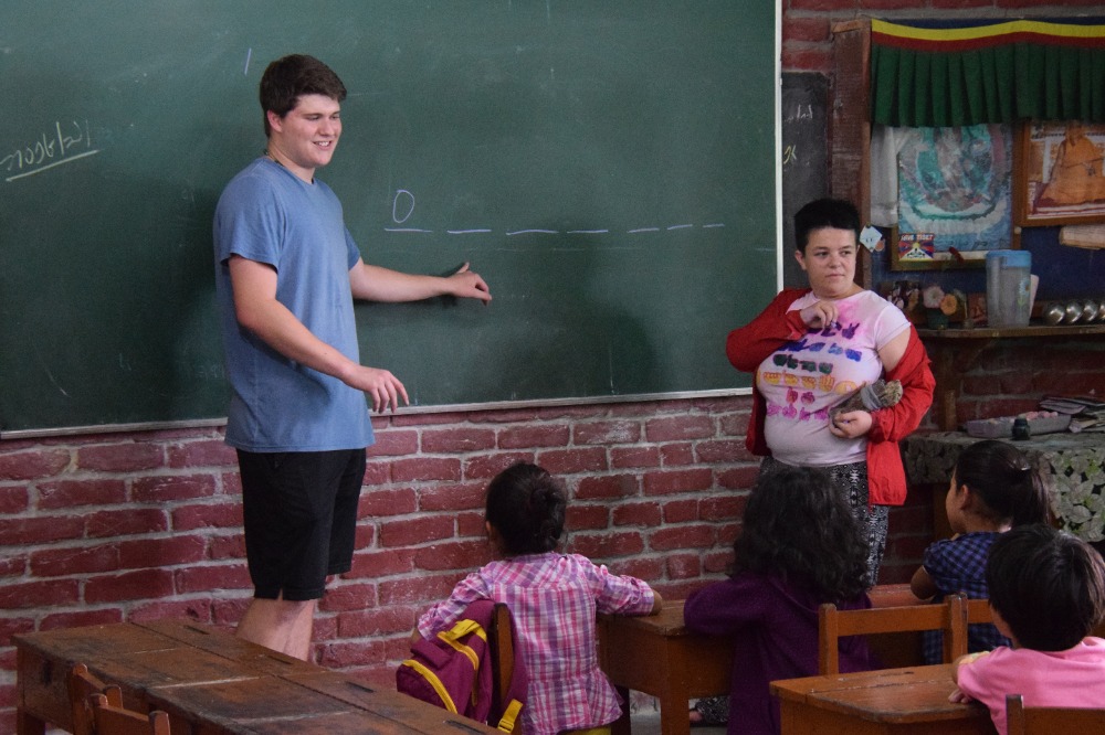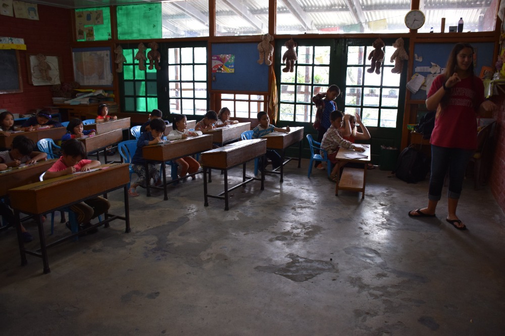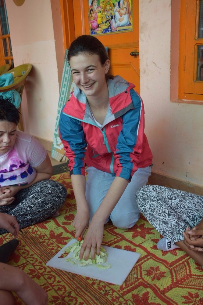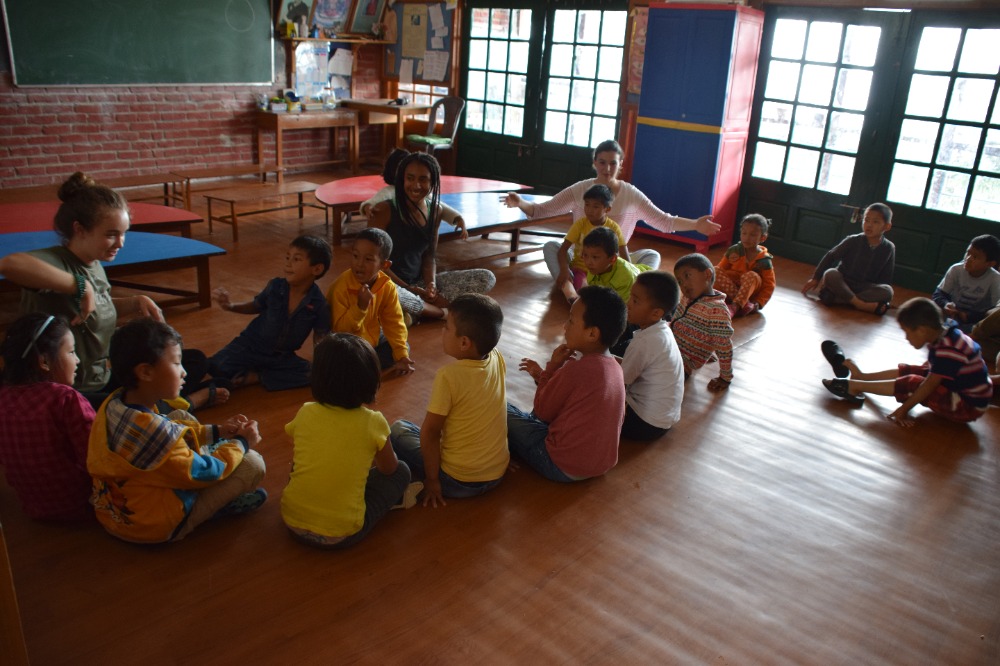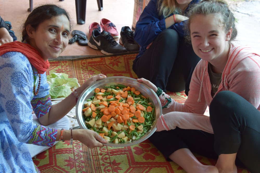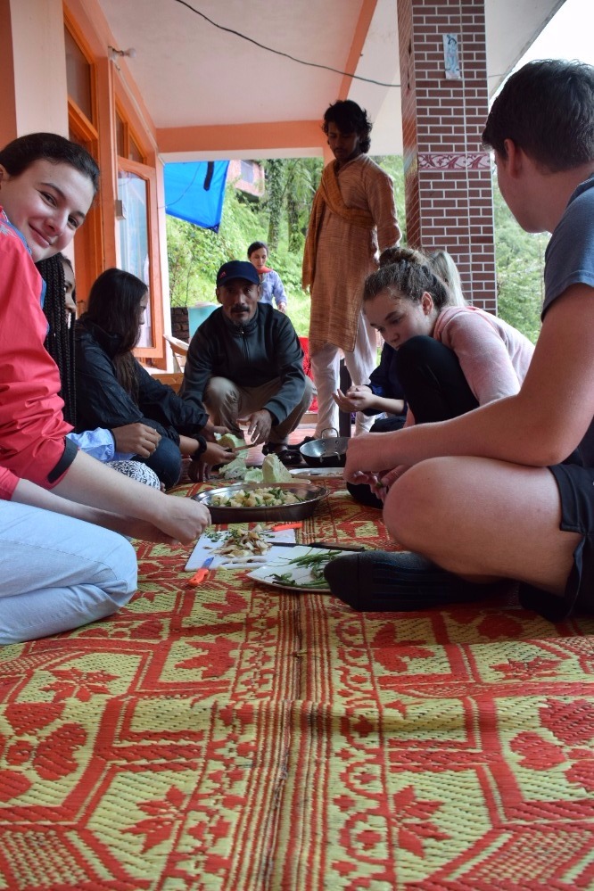 As Saturdays should be, we took it easy today. After Rabsel’s delicious fluffy pancakes and a game of Bananagram to warm up our brains, we headed off to an ashram to prepare our lunch, which consisted of Dahl, vegetables and a sweet chickpea paste with sugar and clarified butter. Once our energy level was filled, we spent the afternoon in the Tibetan Children’s Village where we split up into three groups and entertained and taught English to six years olds. I have to admit no mater how sweet they where, it was quite demanding keeping a group of 20 energy balls under control for two hours Finally, we cooled off by watching a documentary on the Chinese taking over Tibet. By the way, we welcomed Lifeworks photographer Elliot so you will now have much more good quality pictures.