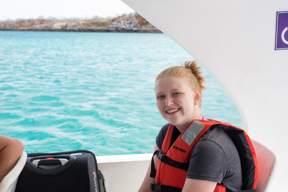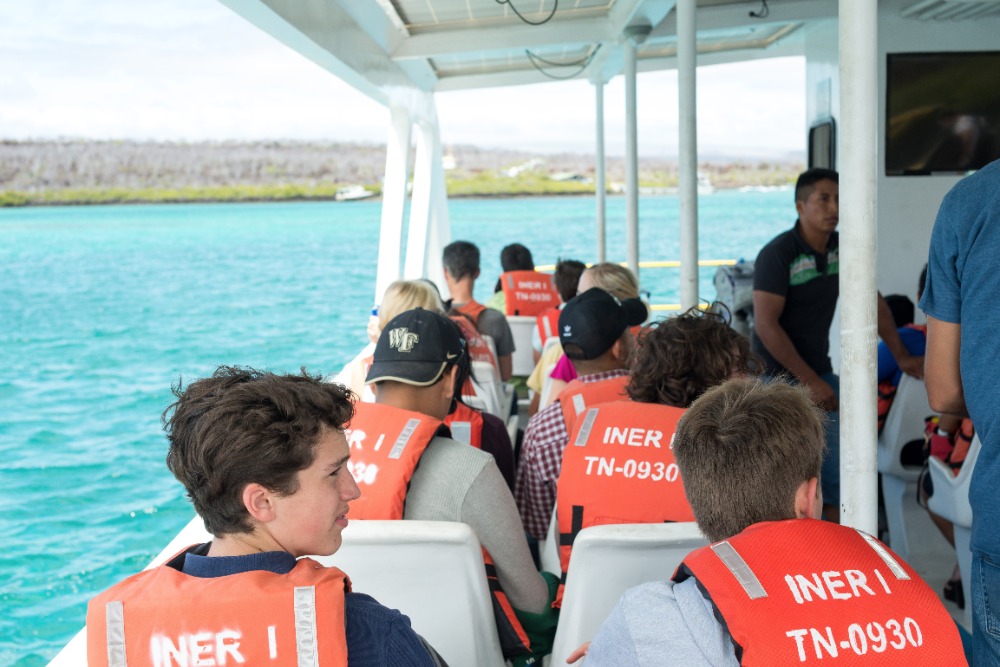My alarm sounded at 3:30 am, my excitement meter went from 0 to 100; real quick. Being team leader my mission was to deliver the non-ecstatic news to the sleeping teenagers: it was time to wake up. Shortly after the baggage haul, we started our long journey to the Galapagos Islands. We got on the plane with tired eyes and a bright mind for a 4-hour flight. Some of us were confused by the sudden stop in a major city for a transfer flight. Nonetheless, everyone safely arrived in the Galapagos Islands, a luxurious destination that took our breaths away. From the airport, we had to take a bus, a ferry, and another bus to get to our swell hotel.
