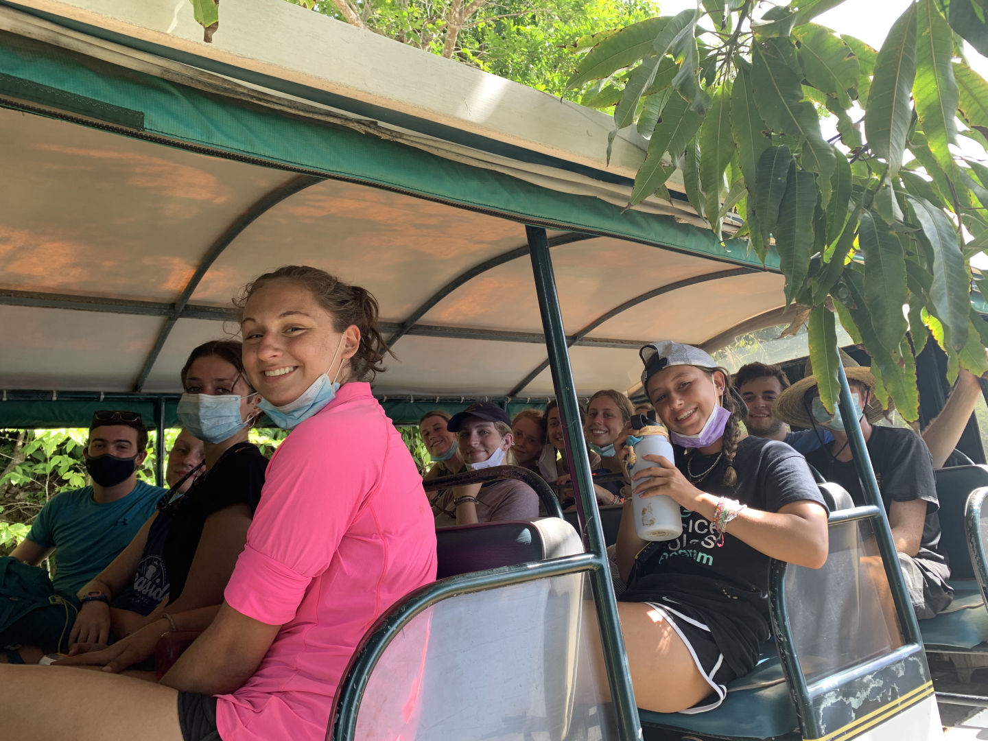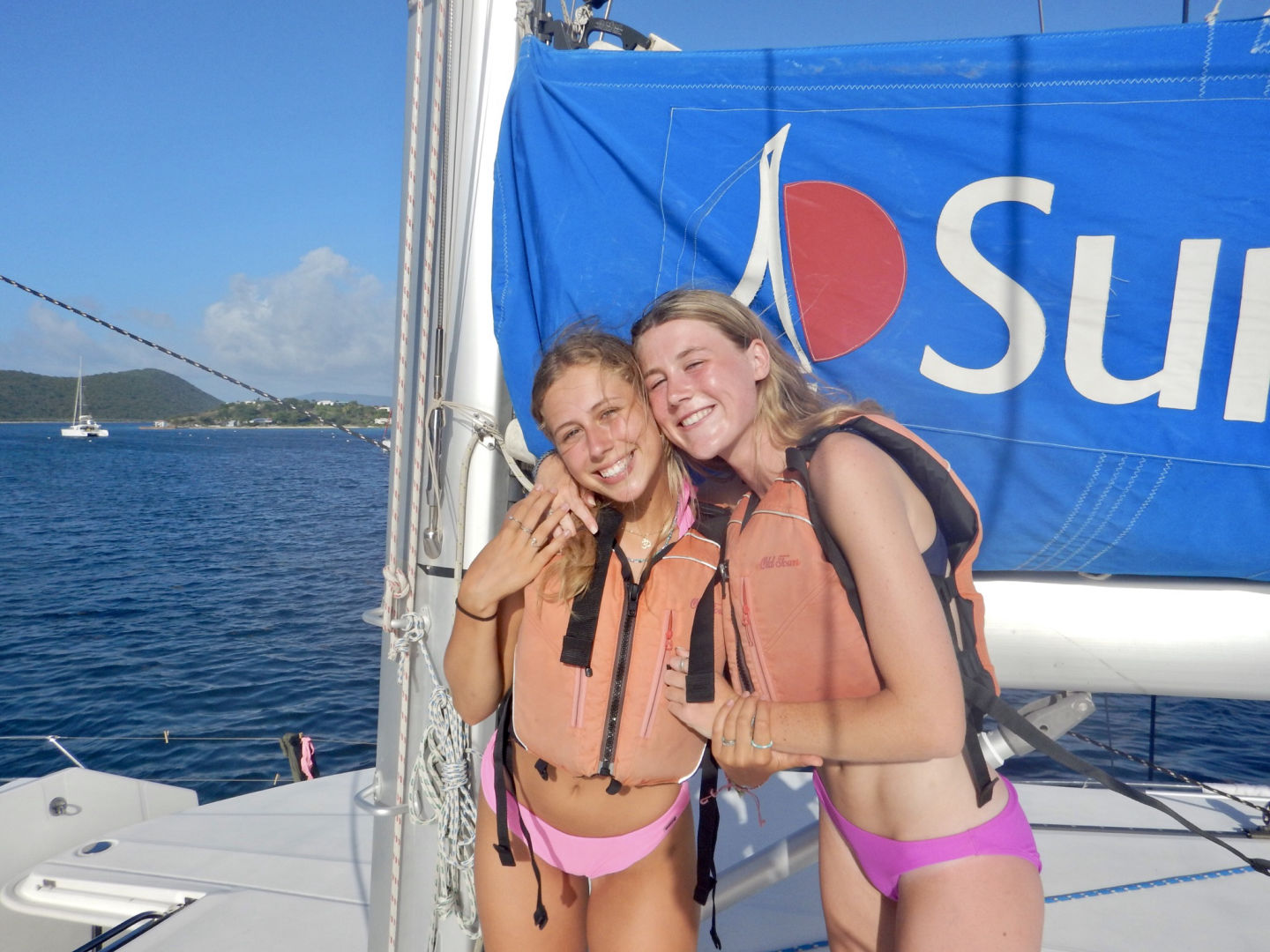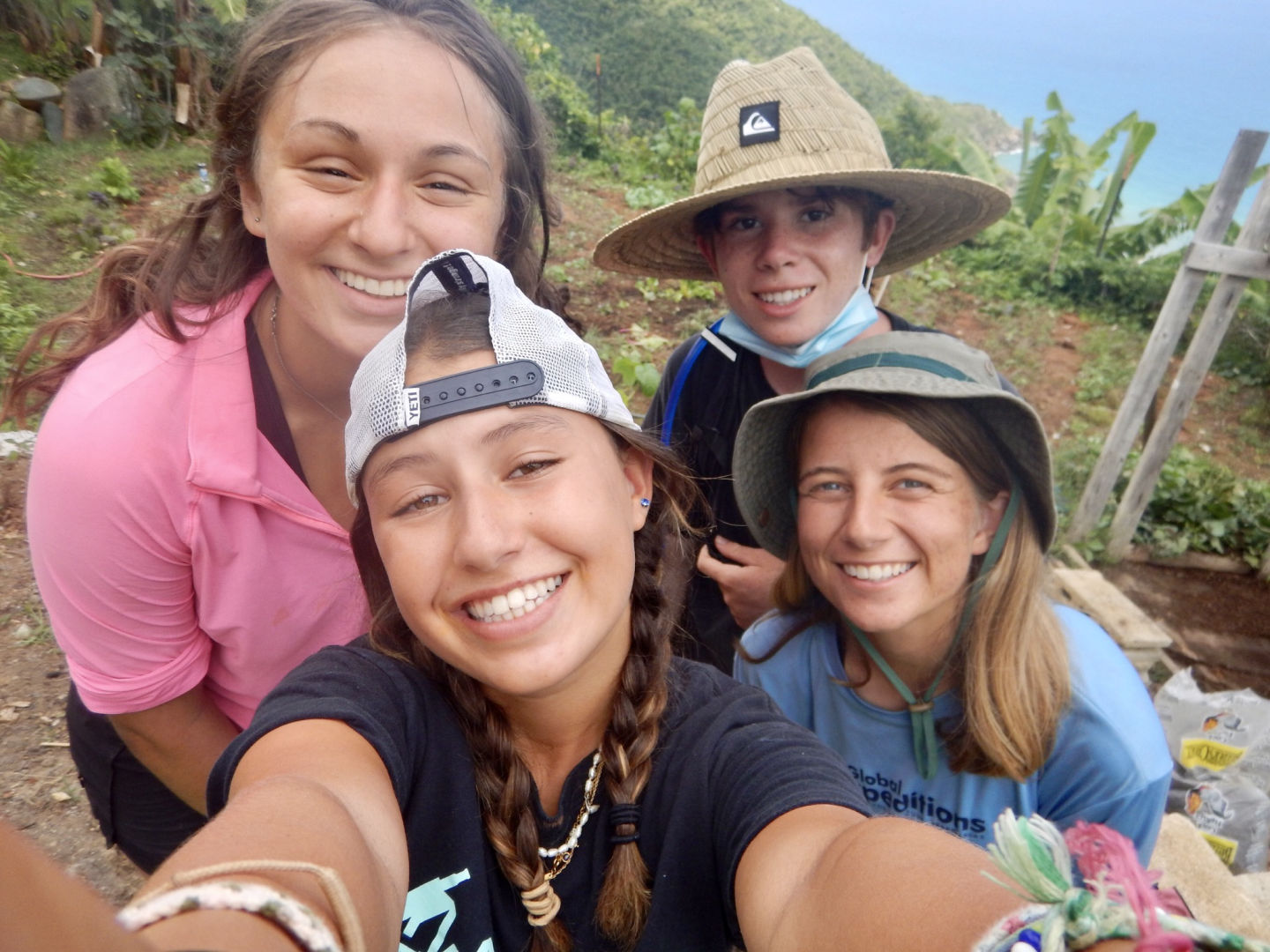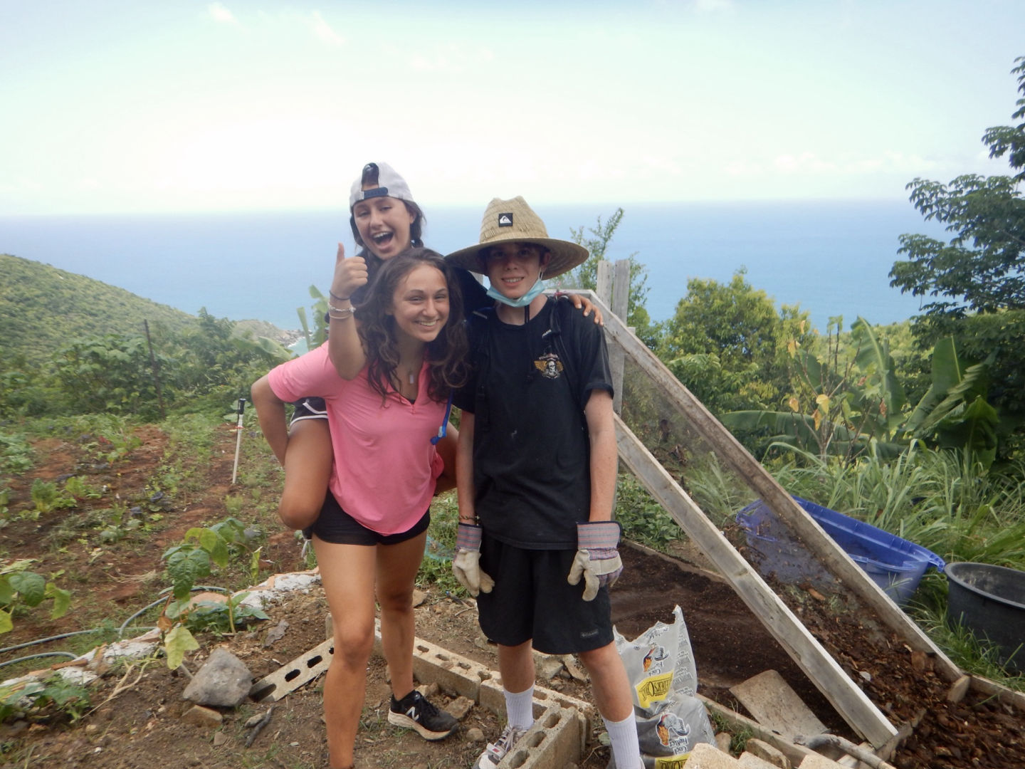 Today started early with a 6:30 wake-up. After a quick breakfast of cereal, we loaded the dinghy to work at a farm run by Aragorn, whose art studio we visited yesterday. Once in Trellis, we boarded an open-air taxi. To get to the farm, we took a series of winding mountain roads, and everyone enjoyed the spectacular scenery along the way. 20 minutes later, we arrived at Good Moon farm, which practices sustainable and organic practices to bring traditional farming back to communities in the BVI. Aragorn greeted us warmly with an interesting history of farming in the BVI. Shortly after, we separated into four groups to begin work. One group was in charge of peeling garlic to ferment in honey and be sold in Aragorn’s store. Another group sifted through compost and de-salinated sargasm (seaweed that washes ashore on the BVI) to make soil needed for the farm. Finally, the last two groups weeded around various parts of the farm. All of the groups rotated through jobs and made for a fulfilling yet tiring morning. I believe that everyone would agree that we had a fantastic time learning and helping out at Good Moon. The taxi took us back to the docks, and once we reached Dallas Blonde, we were surprised with unpleasant news. Dara, Em, and Boxy requested that we clean every inch of the boat. While this was a grueling task, everyone was happy with the end results. Tonight we anchored amongst the rest of the fleet and sang a sea shanty written by Rafa and Jake whilst the pirate flag was hoisted. The rest of the night was spent relaxing and eating chili, waiting in anticipation of the “fun day” tomorrow. Sending endless love to everyone at home