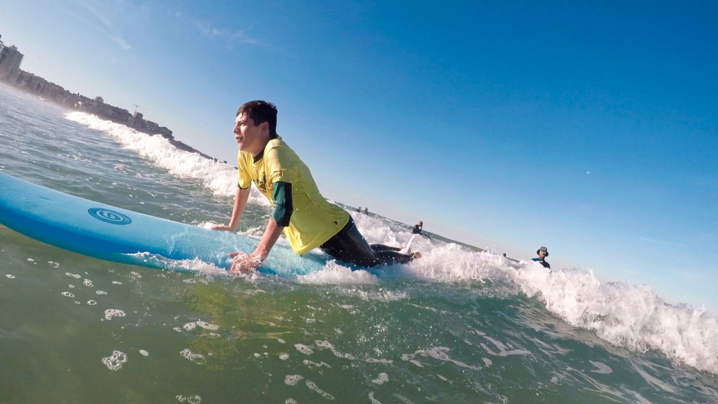 Today was one of those days that an educator lives for: getting to share a passion -surfing, in this instance – with the group felt like a moment that stretched into an entire afternoon. Pushing ourselves to jump into the chilly water took some convincing, but the simple fun of gliding across the ocean and standing on top of a wave was enough to elicit hoots and hollers throughout the group. It’s in these moments that the importance of keeping an open mind and pushing oneself to try something new comes clear, as that push often leads to experiences greater than anything previously imagined. The decision to forego our reservations about surfing in the chilly water proved fruitful almost immediately, as the scattered uncertainties I had heard floating among the group before we paddled our way into the lineup were soon replaced with laughter and excitement for the next wave.