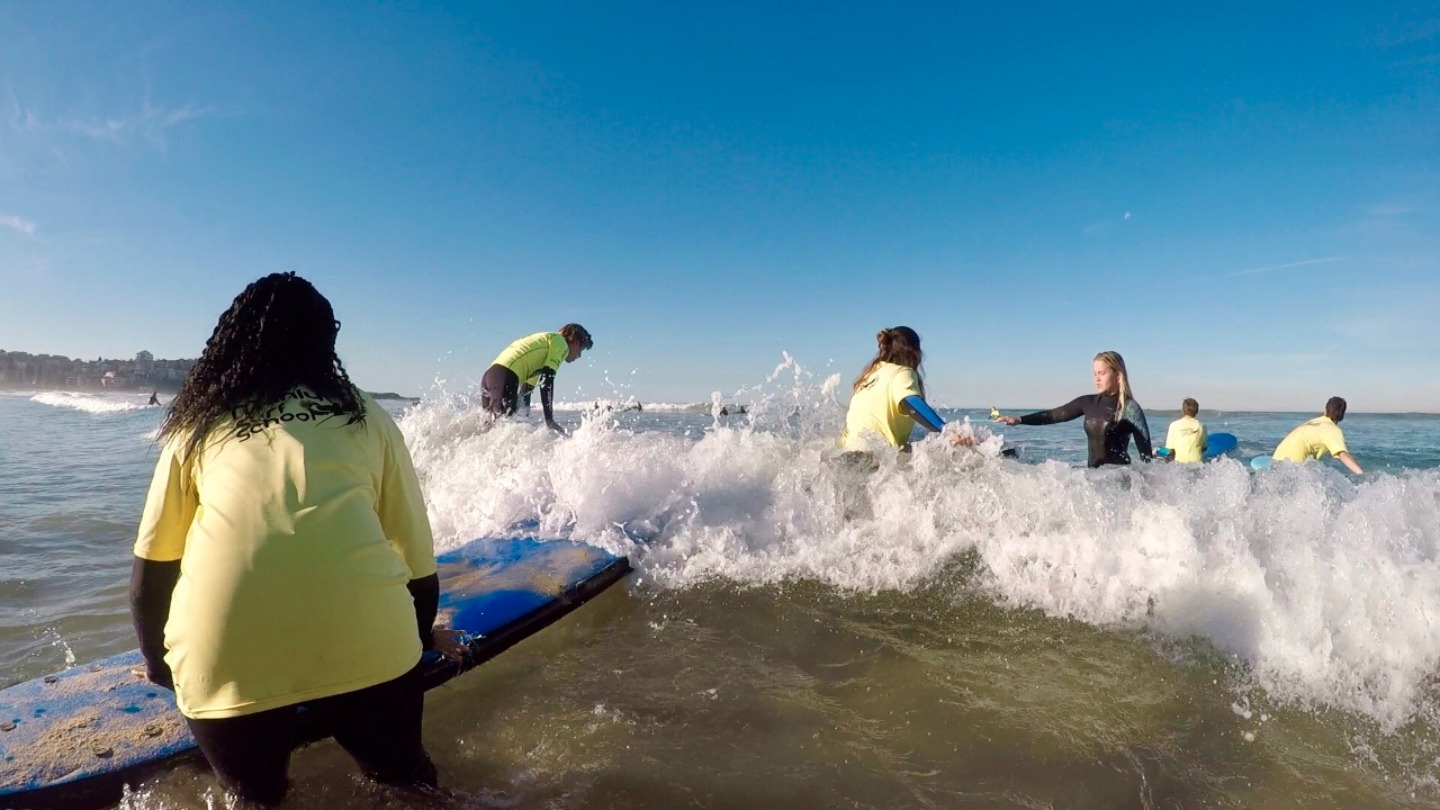 Surfing in Sydney today was the key that opened the door to our first great experience together as a group. For had we not gone surfing today we would have certainly missed witnessing the golden rays of wintry, afternoon sunlight filtering through the trees and across the beach before illuminating the growing wave peaks as they approached. Had we not gone surfing today we would have certainly not been a small part of the local community who gathers here each day to appreciate the ocean and the environment. And had we not gone surfing today, that small thought – “I can’t go surfing, I don’t know how…The water is cold, and I won’t be any good!” – Would have been our lasting memory of this afternoon. But instead, we concluded our first full day together in the water, proving to ourselves that – no matter how small the push – pushing ourselves to try something new can lead to great discoveries within us.