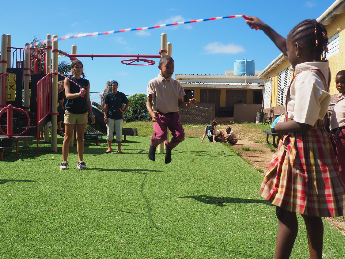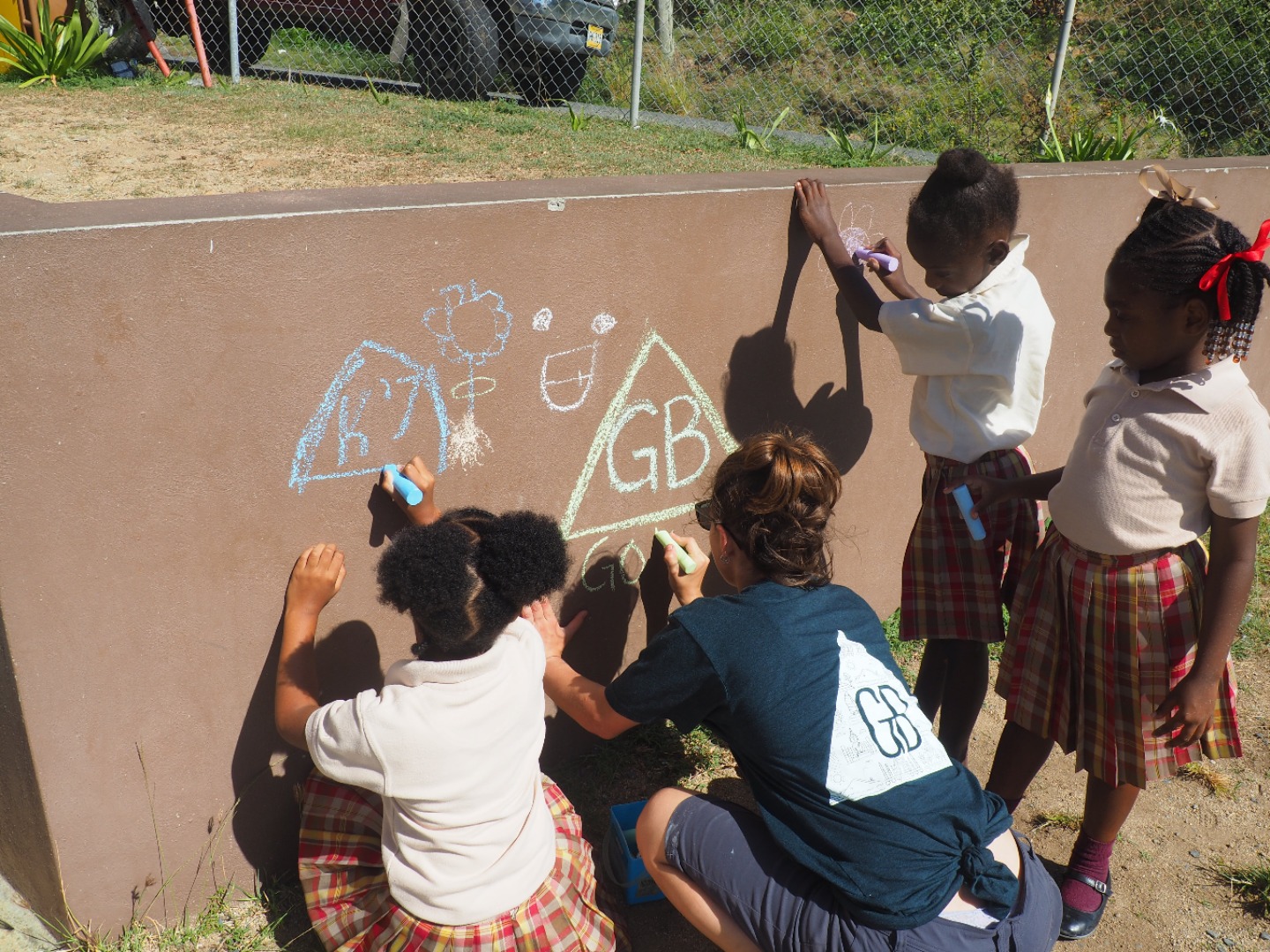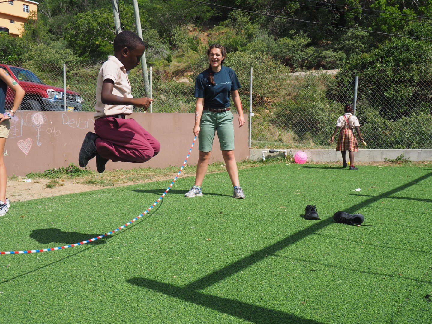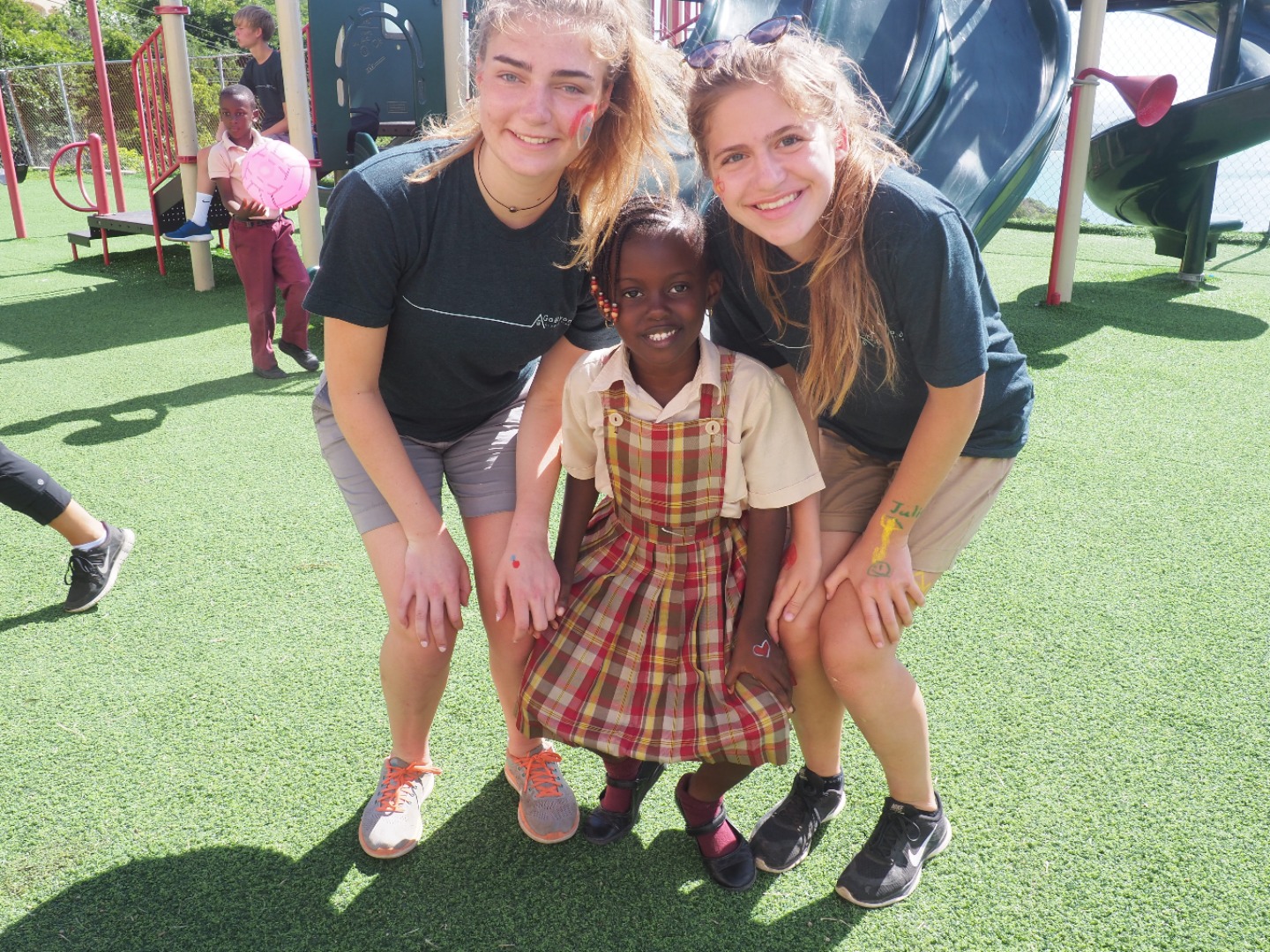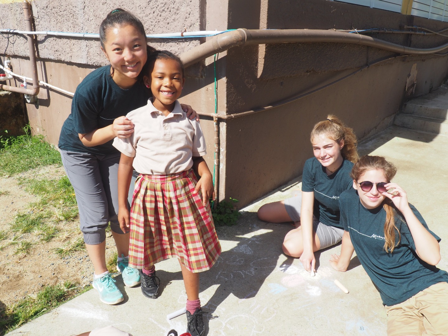 Today, we went to Robinson O’Neil Primary School and help the 6th Graders with their annual community service project, which was helping the school, transform a messy and pretty cluttered back area into a welcoming, educational, and safe space where the students can thrive. The school had previously collected donated and used tires that were already painted a bit in the colors red and yellow. We were told that these tires would later become the base of reading space, a wishing well, a snake, and minion planters. We gathered up partners or groups to paint with so the actual sixth graders could have jobs, be included and say that they did this, not just GoBeyond. My group swished around a bit, but it was usually/always a girl named Caitlyn, Rudell, and Jamal. The reading nook had a table and a few chairs that alternated having two tires stacked and painted red or yellow. The table was like a flowery diamond with the corners being two tires stacked painted just like the chairs. The snake was made out of four tires painted with yellow diamonds getting smaller as one gets closer to the tail; we dug a linear hole to stick the snake tires in and the bury them halfway. We made minions from yellow painted tires that we dried and stacked and painted on the overalls and face on them. The reading nook was all red and yellow while the snake was all green with some yellow, so there was a ton of color variation throughout. I started my painting jobs with painting a stack of two tires that were going to be a red chair. It got a bit crowded, so half my group split to start another chair. Some of my peers and shipmates also played with first and third graders during their “recess.” They also got super messy because of how involved they were with face paint. I didn’t spend much of any time playing. After the big day at school, we went to the big GoBeyond and Action Quest BBQ, as usual, I was tired.