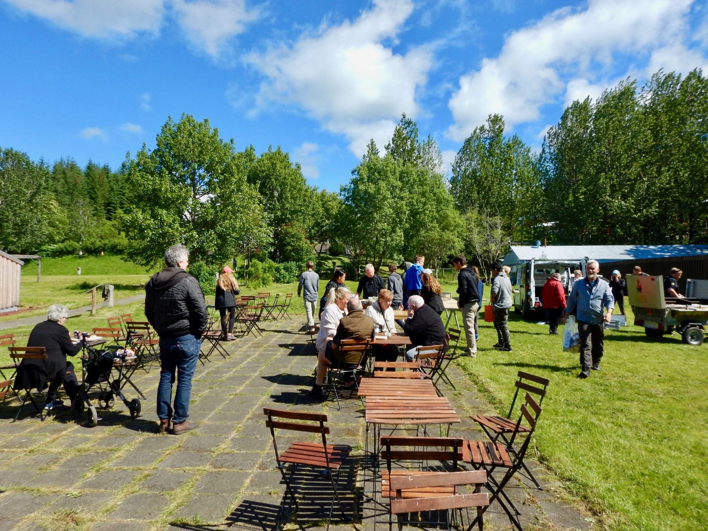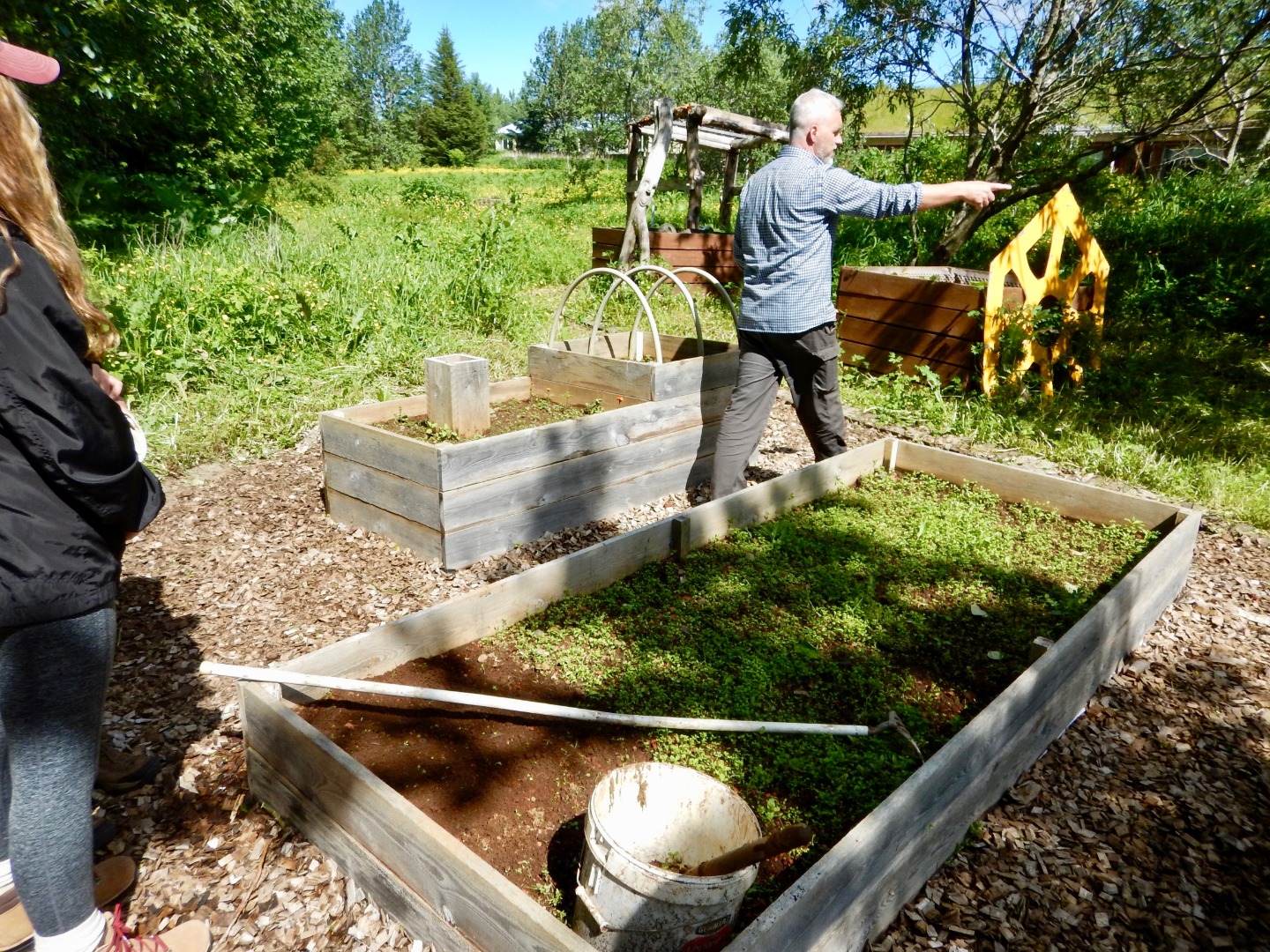 Today was spent in the eco-village of Solheimar, where we arrived yesterday. When we woke up at 7:20, and then got ready for the day. We walked down to the cafeteria and had breakfast which included different cereals, toast, and fruits. After breakfast, we were given a tour of Solheimar. We visited several different workshops such as the candle workshop, the wood workshop, and the ceramics workshop. Walking around Solheimar was very interesting because of the number of trees in the area. During our tour, we stopped by the theater to watch a power point presentation of the founder of Solheimar. The presentation described how she started the program, as well as the several hardships she encountered in trying to preserve it. After the presentation and a few other tours, we made our way back down to the cafeteria for lunch. Today we had a barbeque to celebrate the 88th anniversary of Solheimar, which was also on their founder’s birthday. It felt good to sit down after walking around for most of the day. After lunch, we helped clean up by moving tables, chairs, and cleaning the barbeque area. When we were finished, we were taken to the Troll Garden to help clean up by getting rid of all of the weeds in the area. We worked until about 4:45 when we went back to the cafeteria to wash our hands and to talk about what we would be doing next. The plan was to have free time until about 6:30, in which we would then go back to our living area to prepare for dinner. Most of us then went out and explored Solheimar for the duration of the free time. After our free time, we got ready for dinner at our cabins, which was lasagna, with rice, salad, and vegetarian patties. We each helped out in cleaning up, and when we were finished, we then played two games of Papers. Papers is where everyone writes a sentence on a piece of paper and then passes it to the person on your left. They then have to draw a picture about what you wrote. When you pass it again, the next person has to write a sentence about the picture without knowing what the original sentence was. The process repeats until you are back with your original piece of paper. It resulted in lots of laughs. After papers, we slowly got ready for bed.