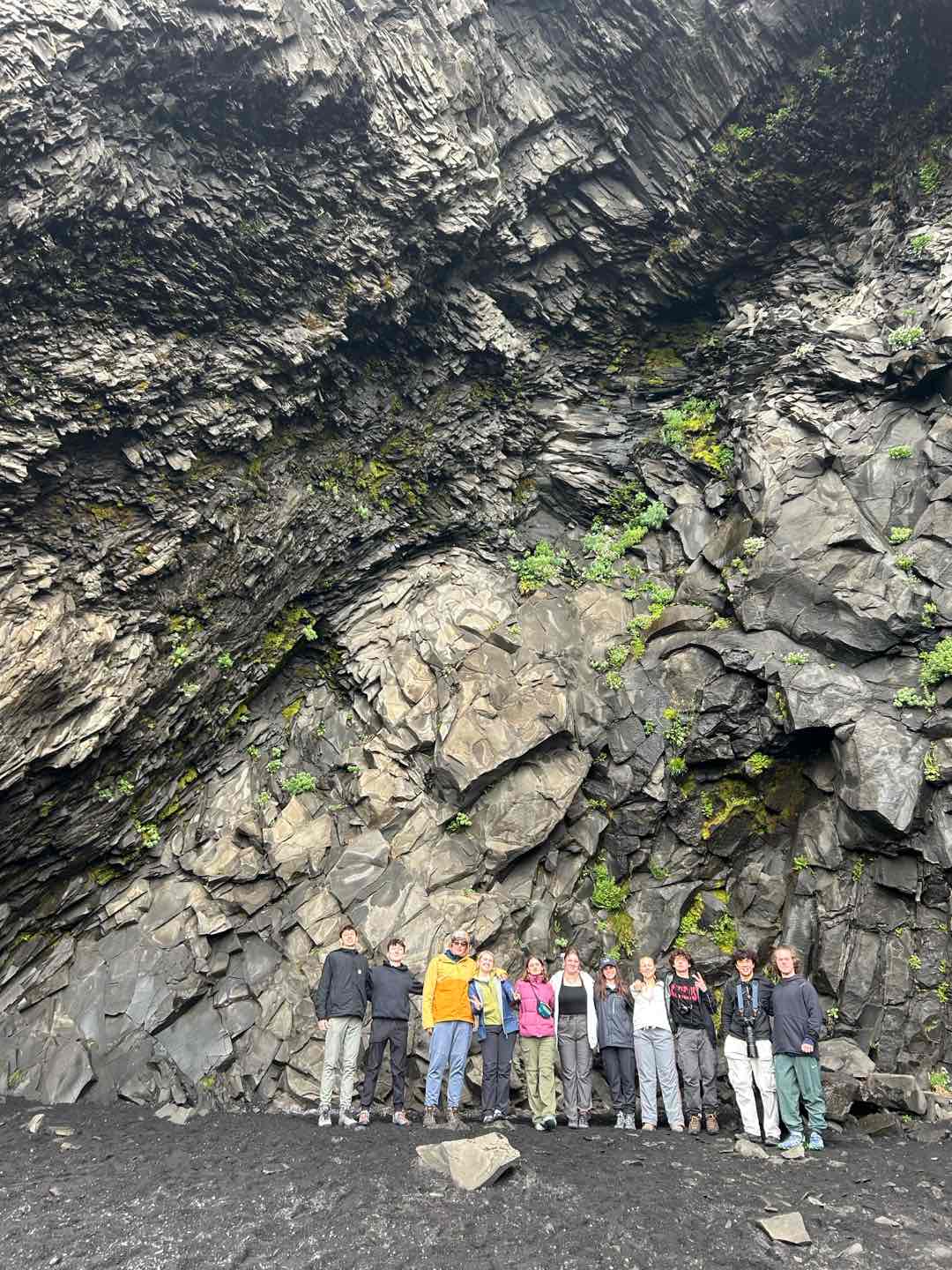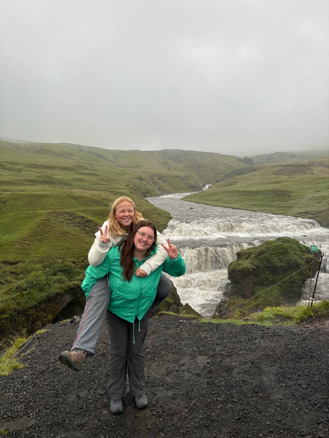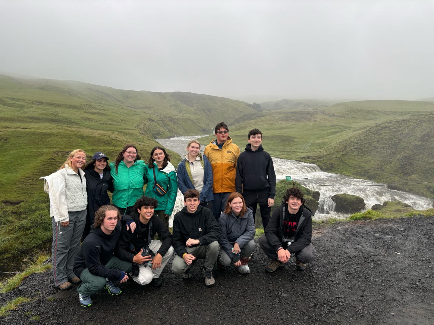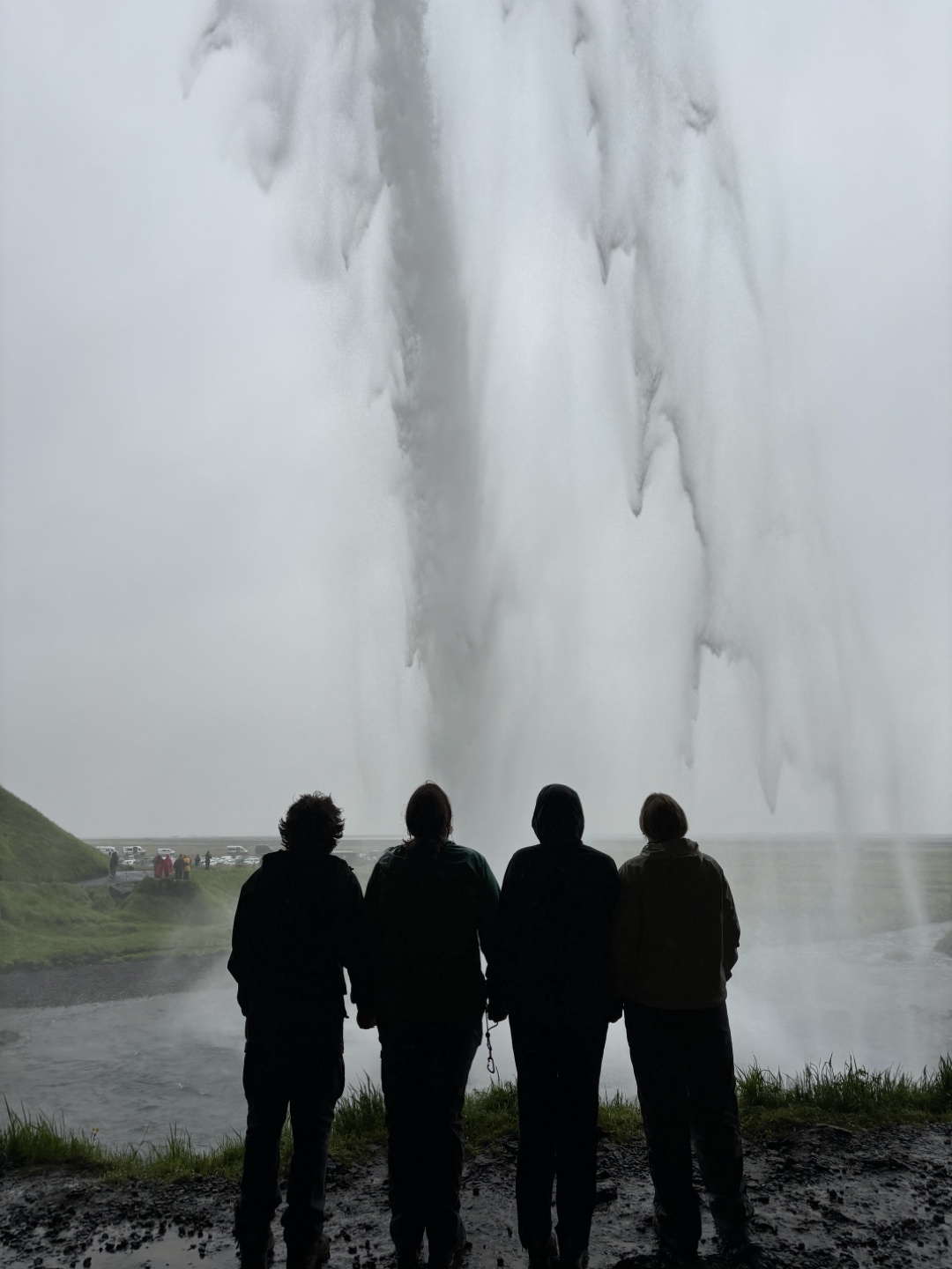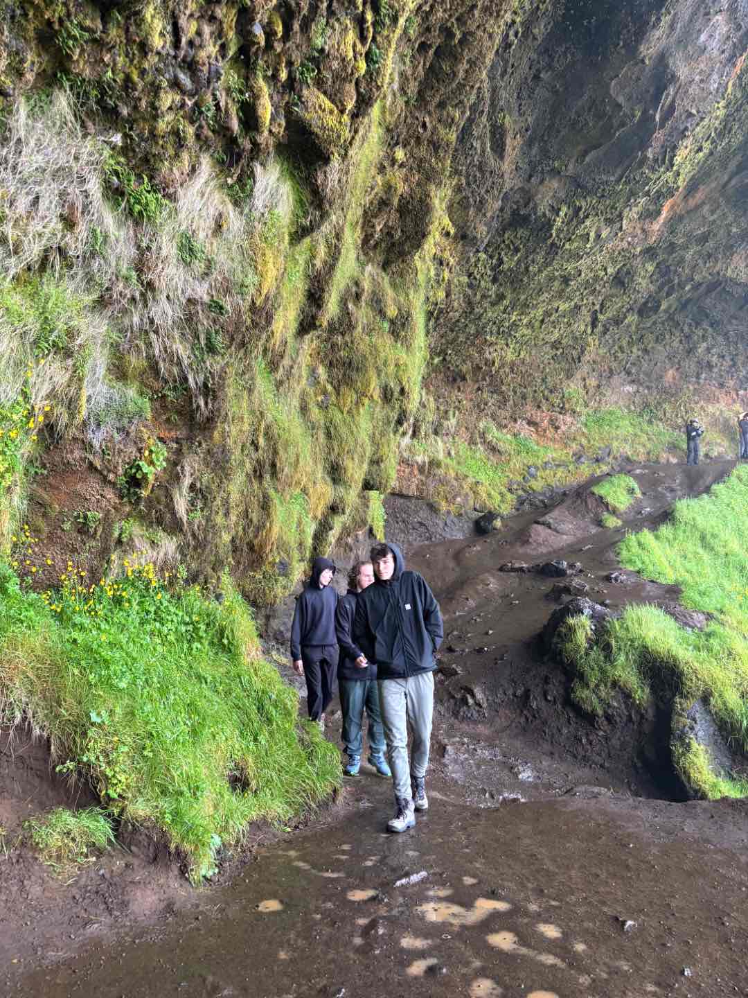 Today, I woke up at 6:45 to get ready for our travel day. After I got ready, I soon realized with my friend, Luke, that no one else was awake and everyone else had slept in on accident. So we woke up the facilitators and had 30 minutes to get everyone ready with their luggage in the van to leave the hostel. Once everyone was ready in the van, we headed south for about an hour and a half. I sat next to Luke and Grisha in the back of the bus which was the same way we sat yesterday when we were snorkeling. We stopped at a gas station, and I got a few souvenirs, which were very expensive, as everything is imported here. We then drove to Skogafoss, which is a very big waterfall. Grisha, Luke and I were basically entertainment for some of the other students as we made stupid jokes and laughed at silly things. When we got to the falls, we hiked up to the top so we could get an eagle’s eye view. We then traveled to a black sand beach, Reynisfjara, which has big mountains that come straight out of the ocean. We were able to see some puffins at the beach, and the waves were extremely rough and dangerous.