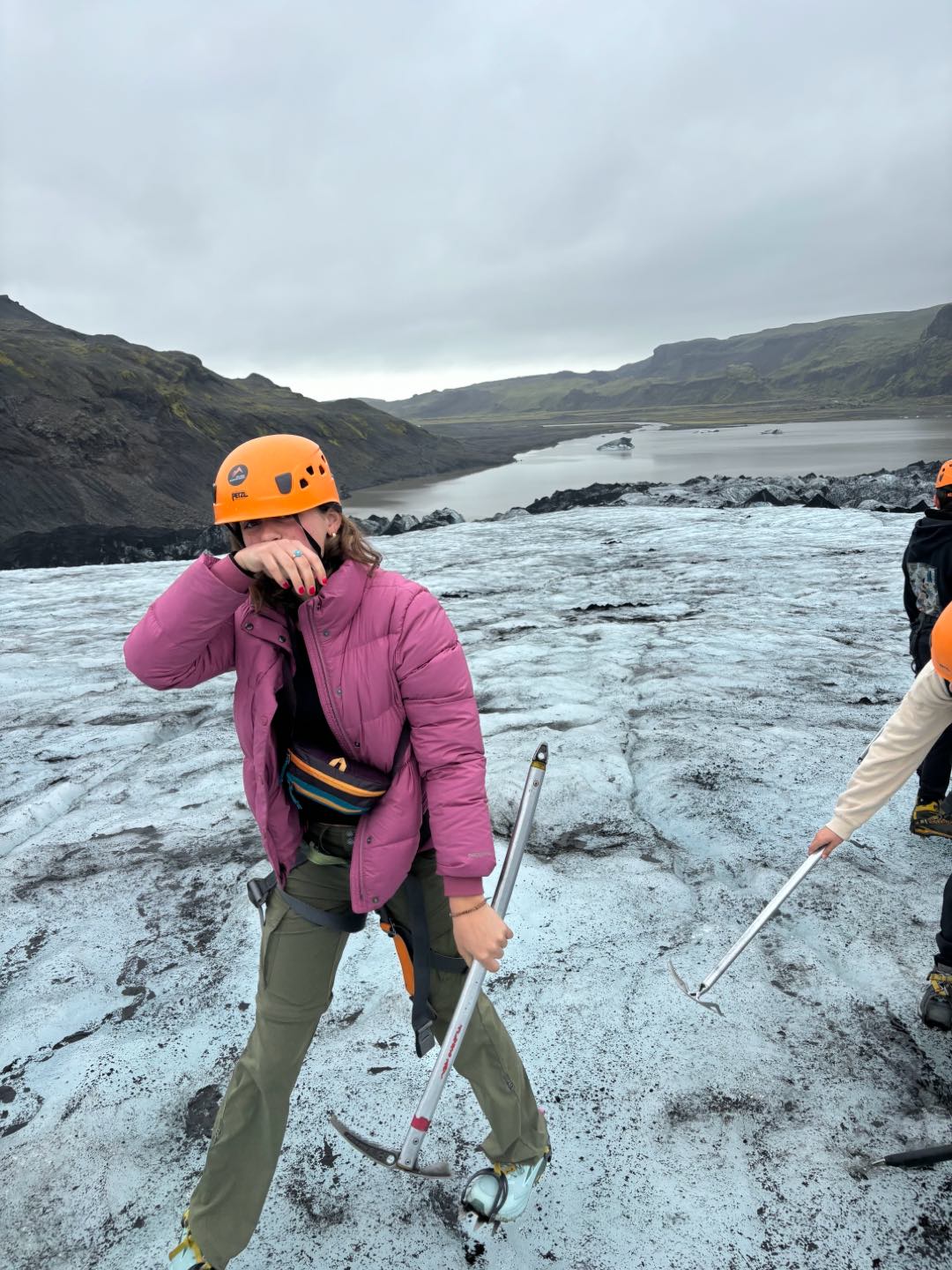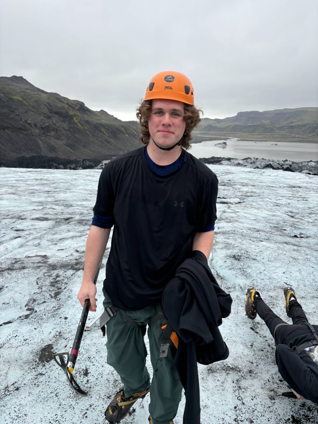 Then we had a hotdog gas station lunch, which was pretty good. The gas stations here in Iceland are better than in America, so it wasn’t really crappy food. And most people’s favorite part of the day: The glacier, Solheimajokull. Initially, we got fitted for crampons and harnesses, as well as an ice ax. We ascended onto the first little bit of a glacier, which was a really cool experience. We were even able to look inside of a moulin which is pretty much a big hole in the glacier. We grabbed food for the next couple of days at the grocery store and then traveled for about an hour to the guest house, where we would be doing service for the next few days. We had an hour of phone time, which was pretty epic. Then we had dinner. Happy dinner we discussed our day and played ‘squeeze’. We’re playing chess now until we’re kicked out of bed. Talk soon, Kyle