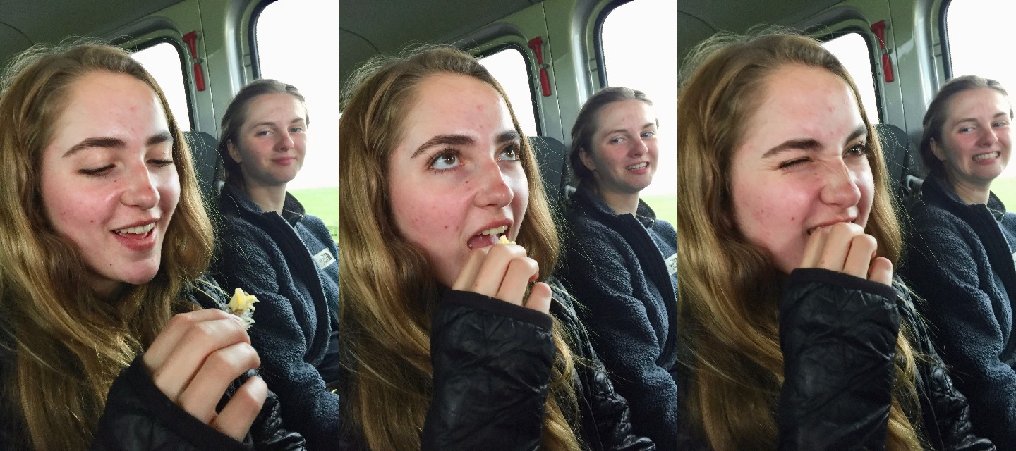 As we started driving, we stopped at some waterfalls, as usual. All of us got amazing pictures, but we knew we could not waste all of our energy there, so we got back on the bus. Once we got back on the road, everyone fell asleep on the bus, and it was very relaxing. On the other hand, I was almost smacked in the face with a bag because we went over a giant pothole. Luckily Josh was right next to me and somehow stopped the bag before it hit my face.