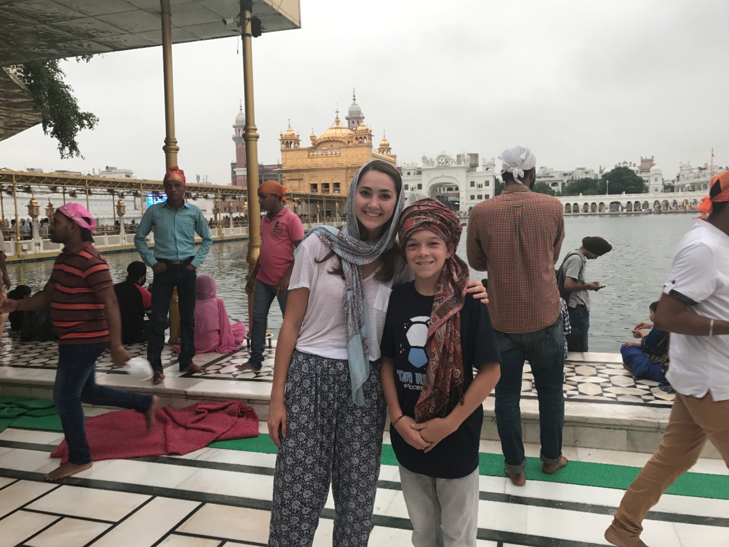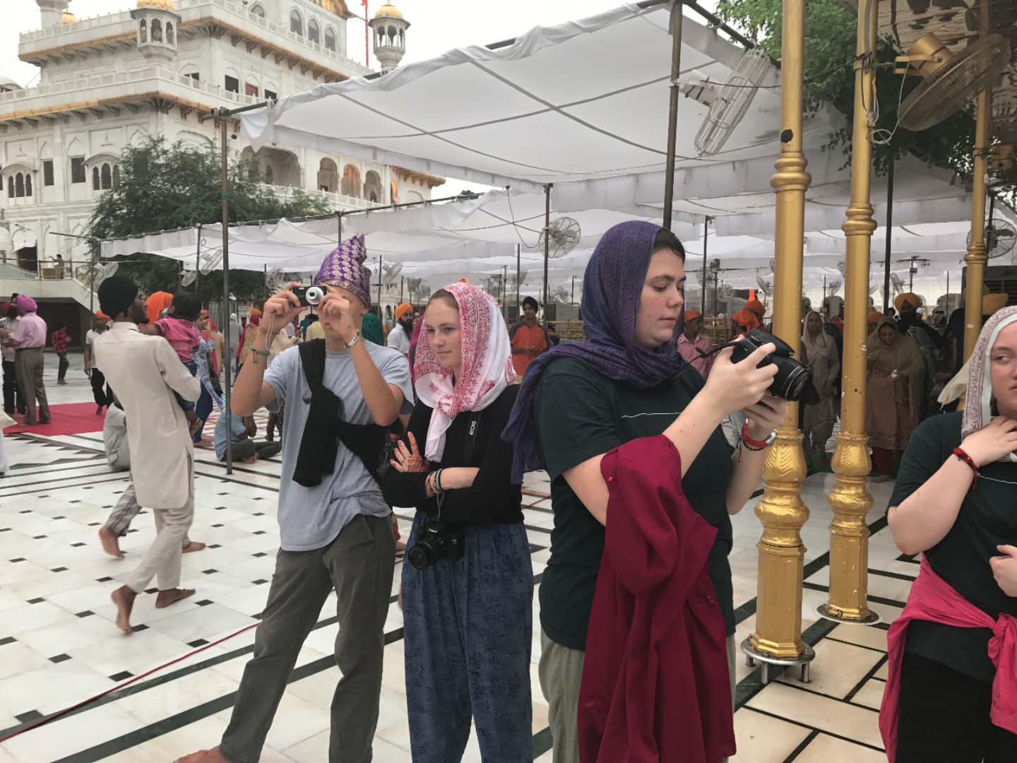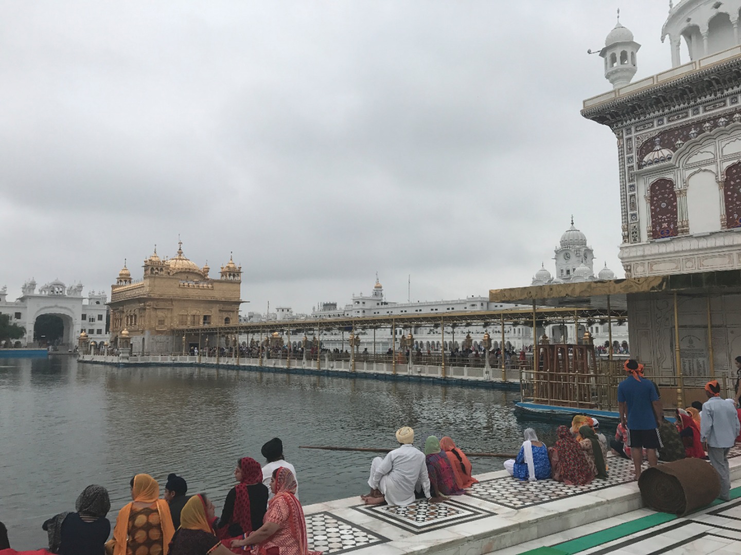 We began our day with a long car ride to Amritsar. It lasted probably four and a half hours, mostly through rural areas. It was nice to look out the windows because it was a completely different landscape from that of Dharamsala. Most of us spent the time either sleeping or listening to music. We arrived at the Golden Tulip Hotel, ate a late lunch and then got ready for the Golden Temple, a Sikh temple in the city. We went during the evening, and it was cloudy, so it was cooler outside and less crowded. When we arrived, we all waded through pools of water to clean off our feet and then headed to the temple. All of us were amazed at the outside of the temple, and I think we were all unprepared for the beautiful inside.