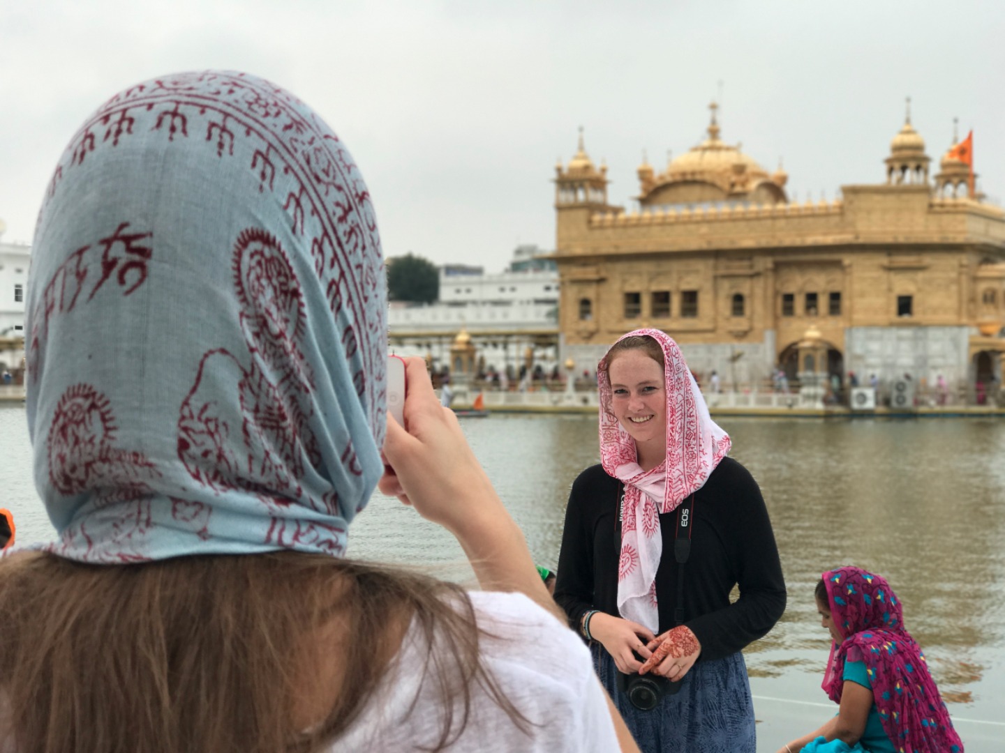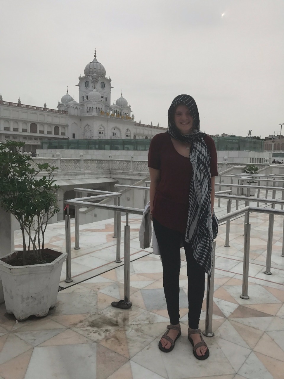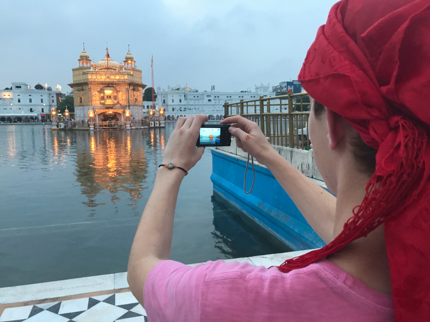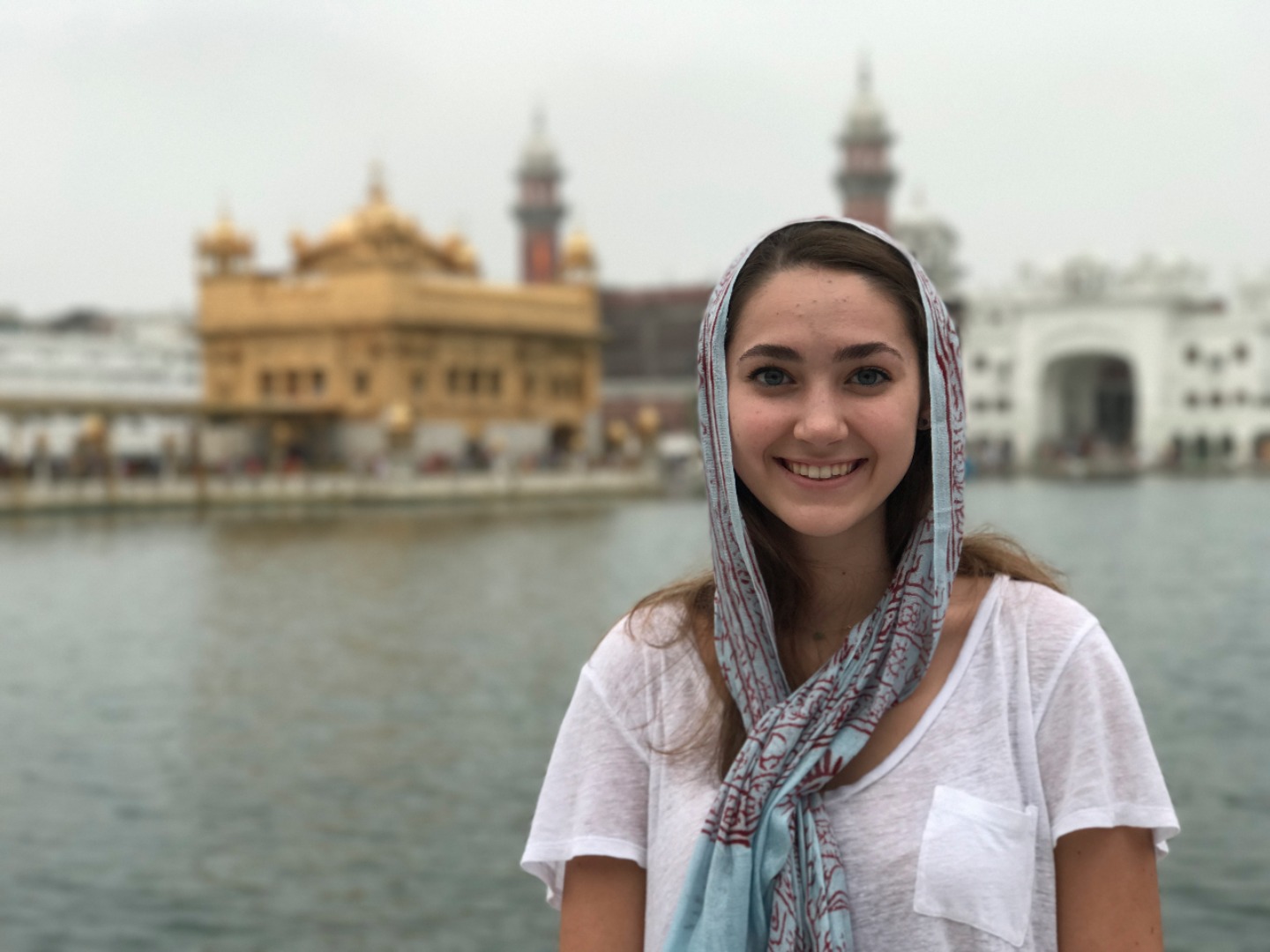 We began our day with a long car ride to Amritsar. It lasted probably four and a half hours, mostly through rural areas. It was nice to look out the windows because it was a completely different landscape from that of Dharamsala. Most of us spent the time either sleeping or listening to music. We arrived at the Golden Tulip Hotel, ate a late lunch and then got ready for the Golden Temple, a Sikh temple in the city. We went during the evening, and it was cloudy, so it was cooler outside and less crowded. When we arrived, we all waded through pools of water to clean off our feet and then headed to the temple. All of us were amazed at the outside of the temple, and I think we were all unprepared for the beautiful inside.