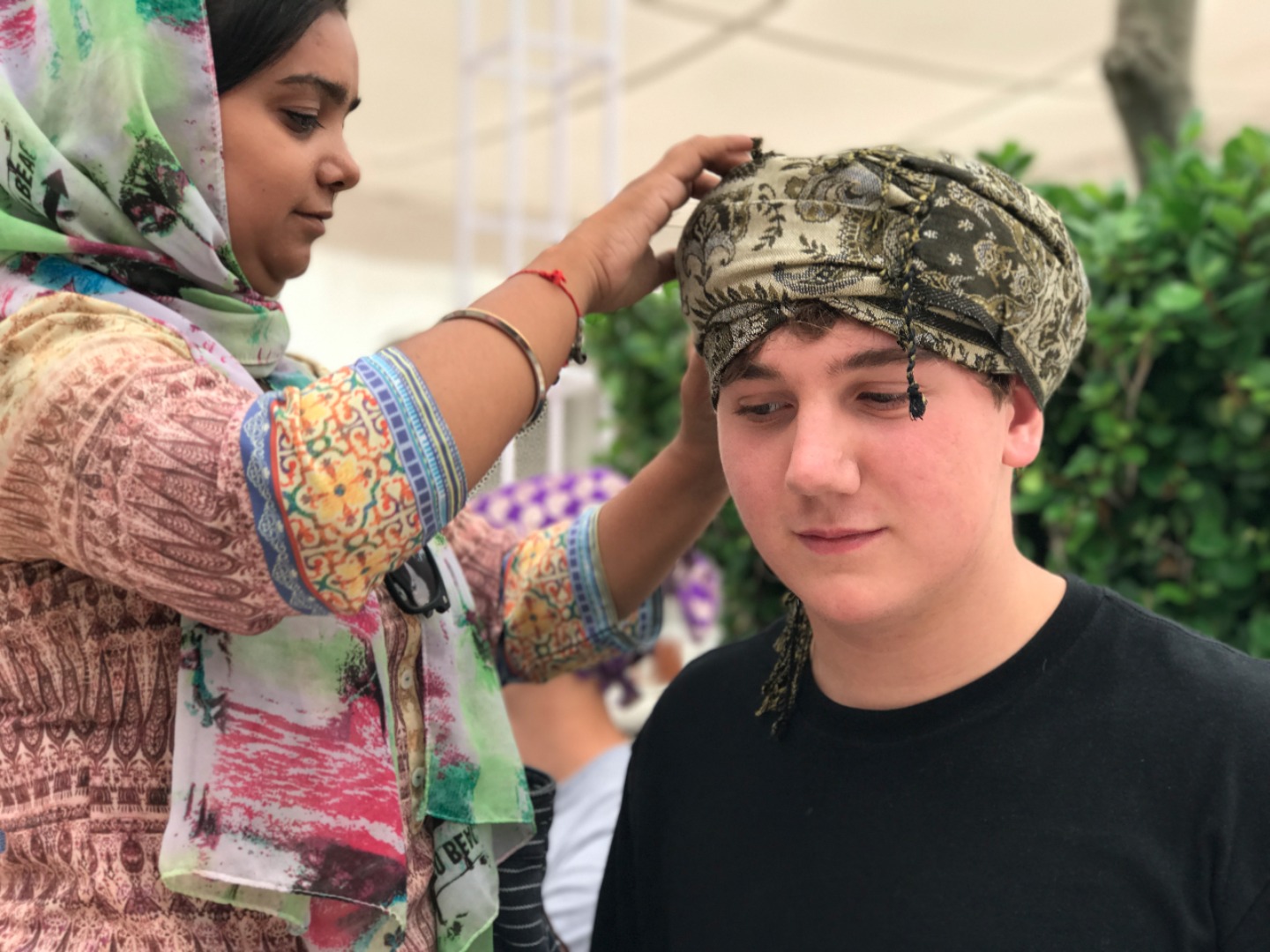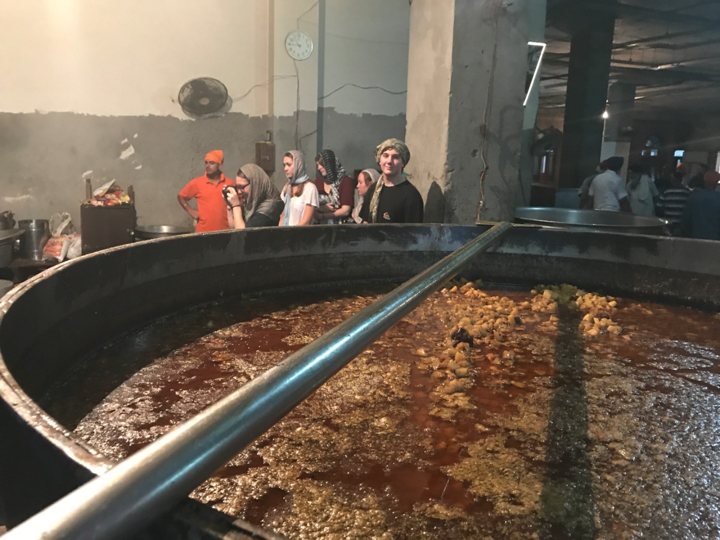 The temple is located in the middle of a holy lake and completely covered in gold. There were many people kneeling and praying all around us. All of the buildings around the actual temple are white and truly stunning. There is chanting music playing everywhere, adding to the very specific atmosphere of it all. We got to walk into the temple and see people praying and where they keep the holy book. I cannot accurately tell you how beautiful the temple was, but a picture is worth a thousand words, so you should look at our pictures! After we went to the temple, we went to the kitchen where they feed the needy and anyone who visits the Temple. We were told that they feed 100,000 people there on a busy weekend day. After seeing the enormous pots, they offered us tea. I think that being able to say that you were fed at the Golden Temple is pretty cool.