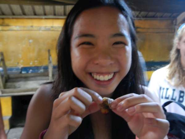 Today was our last morning in the Amazon. Sadly we had to leave the place where nature, animals, and humans coexist. We had to be on our boat at 8 am which brought us back to the mainland. We had time before our flight, so we visited Coca’s local market. While we were there the bravest of us decided to try grugs, a local dish. Only three courageous people, Natalie, Liz and myself ate them alive while others opted to eat them cooked. After this traumatizing experience, we took our flight back to Quito. Once we arrived, we had lunch and strolled to an internet cafe where some of us were able to connect with our families. (Thanks mom and dad for not answering). After a brief stop at a supermarket, we had empanadas and returned to the hostel. Some of us went rock climbing while others chose to stay back to pack for the Andes and relax. Tonight we are having pizza for dinner to finish this amazing day before heading off to the Andes.