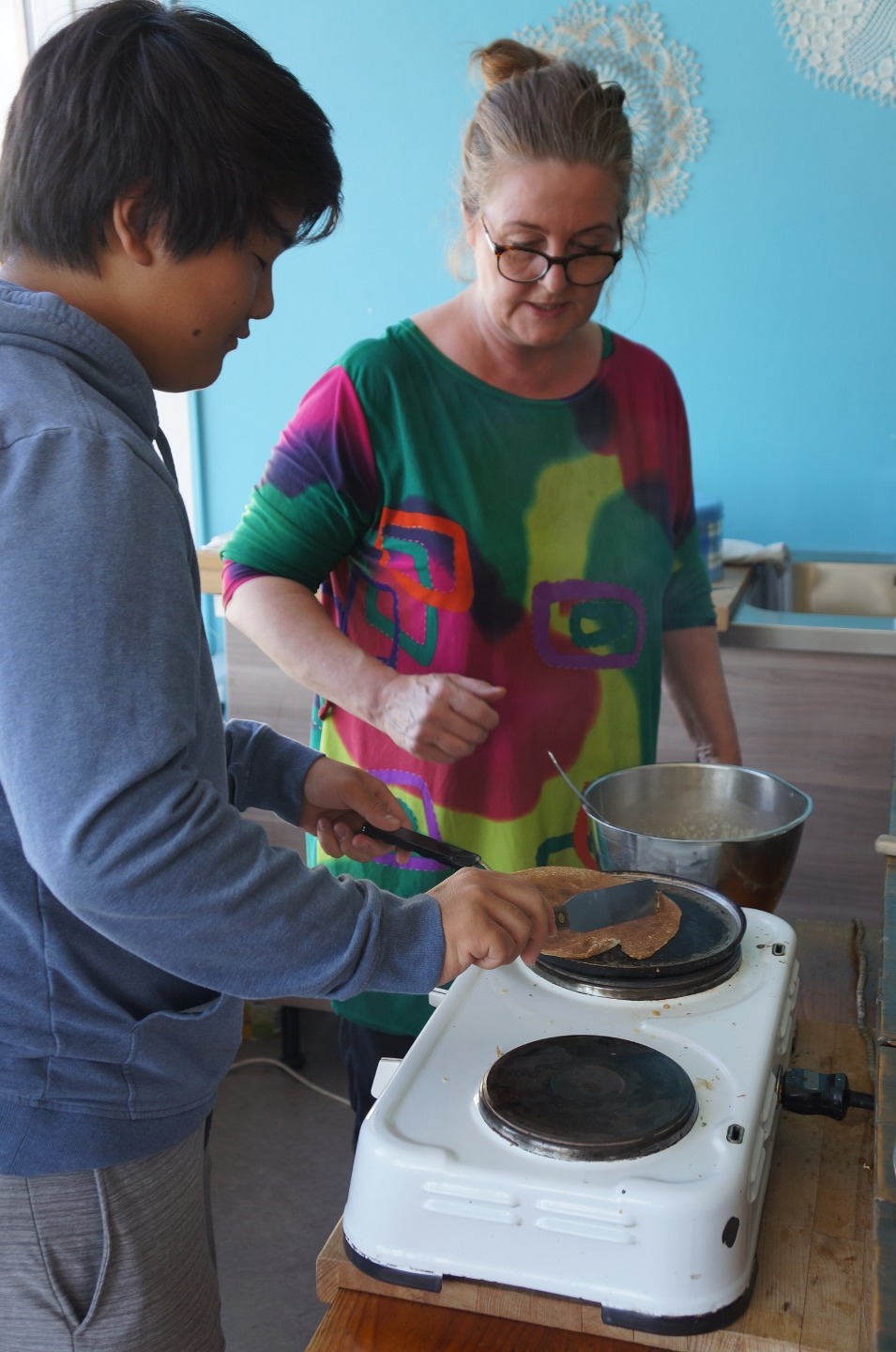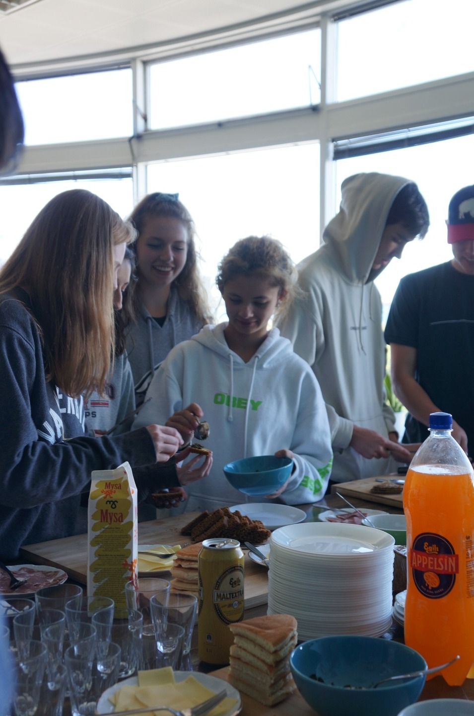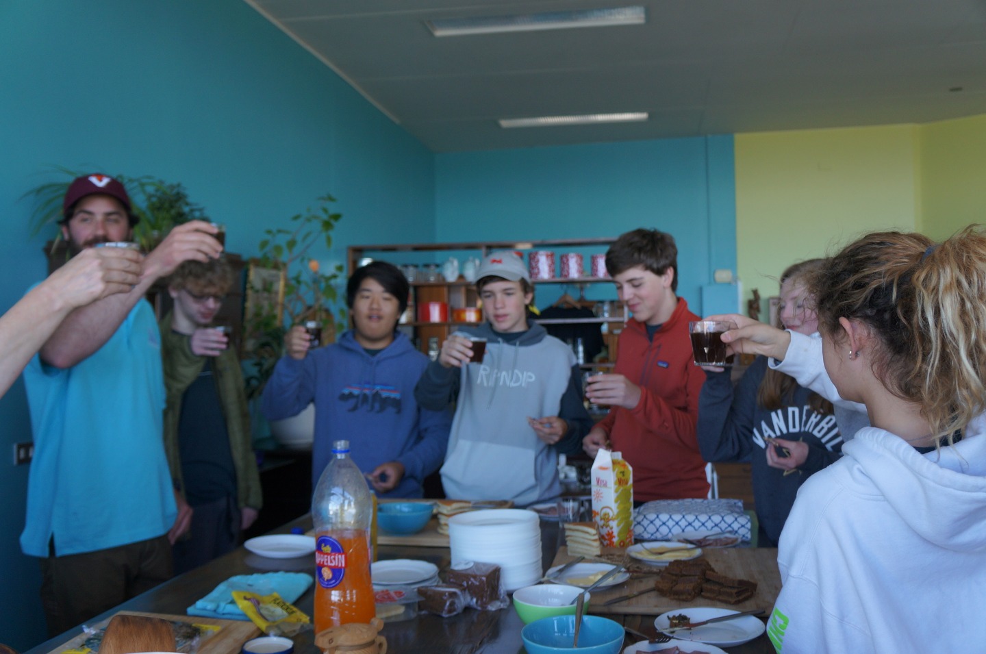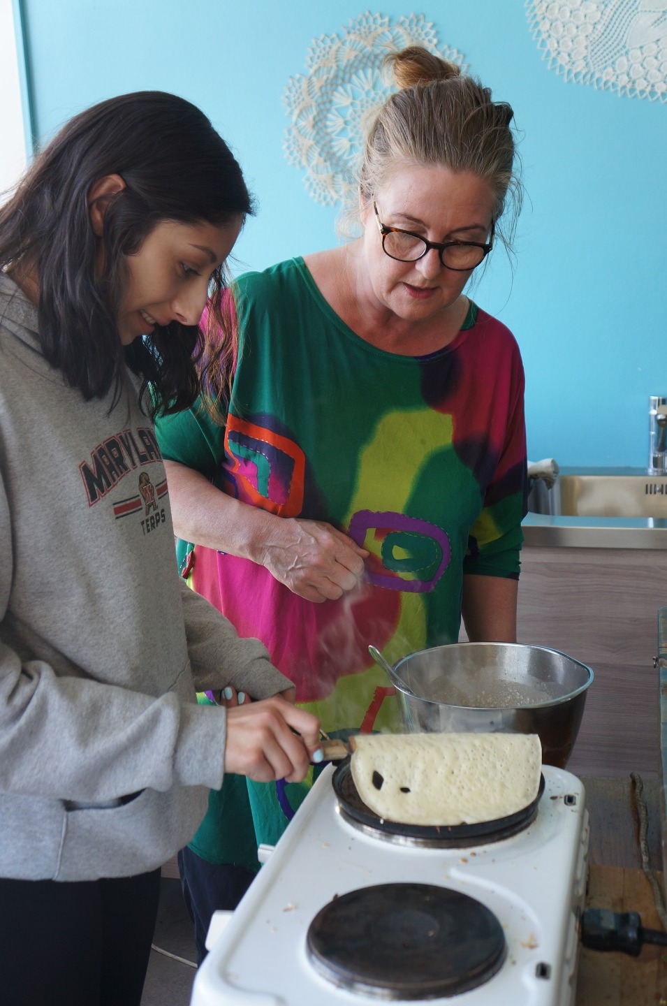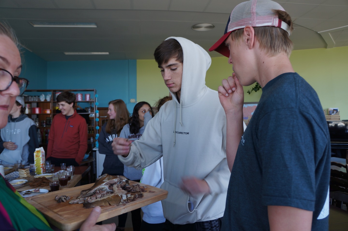 GoBeyond Iceland 2019 is off to a fantastic start! After collecting everyone from the airport and rendezvousing at our hostel in downtown Reykjavik, the adventure commenced. Those of us who arrived on the earlier flight embarked on a walking tour of the city with the one and only, Gigja Svavarsdottir. Among the many noteworthy sites was a monument celebrating the establishment of women’s voting rights in 1915. The group also visited Menntaskólinn, one of the first schools in Reykjavik, erected in 1846, and boasting not one but two Nobel laureates. Later on, Gigja told the story of the non-violent protests that took place in the ’70s which prevented urban developers from demolishing some of the oldest buildings in Reykjavik. These buildings have been transformed into restaurants and the tourist information center. Once the walking tour wrapped up, we all met at the Tin Can Factory for an Icelandic language and cooking class. While sipping on herbal teas from Gigja’s harvest, we learned that Icelandic is derived from Old Norse and is most closely related to Faroese, the language spoken in the Faroe Islands. Egil, our language and history guru, explained that all Icelanders are named after their mother or father, so their last name has the suffix -dottir for females (meaning ‘daughter of’) or -sson for males (‘son of’). Egil also enlightened us to the fact that our days of the week in English are named after Old Norse Gods: Tuesday = Tyr’s day – god of war , Wednesday = Odin’s day – god of wisdom, Thursday = Thor’s Day – god of thunder, Friday = Freyja (Odin’s wife) – goddess of fertility. We then snacked on traditional Icelandic fare which included lots of buttered up Rugbraud (brown bread steamed for 12 hours in geysir water!) with pickled herring and toasted angelica leaves, and a few classic Christmas time snacks. The brave souls among us sampled all different parts of a sheep’s head, including eyeballs!!! These are considered a true delicacy. Next, we tasted homemade Skyr yogurt drizzled with all sorts of syrups made from birch bark, mosses, and crowberries, to name a few. These syrups were made by a local woman who, feeling the effects of ageism during the financial collapse of 2008, drastically altered her career path and now employs elderly individuals to harvest herbs and berries to make the syrups. Later Gigja taught us how to make ponnukokur, traditional Icelandic pancakes. We learned that the eldest child inherits the family pancake pan, which is a great point of pride. We each tried our hand at “listening to the pancakes speak” and then “tickling” them into place. There are some professional pancake ticklers amongst us, and others, like myself, who were… ahem… not particularly skilled in the field of Icelandic pancakery. The pancakes, filled with rhubarb jam and a hefty dollop of whipped cream were delicious. Upon completing our cooking class and language lesson, Egil and Gigja granted us Icelandic names and diplomas. We returned to the hostel with full bellies and some choice phrases in Icelandic to practice during the rest of the journey. Bae for now! Patrekur Súsönnusson and Katla Jöhannasdottir (Patrick and Keeley)