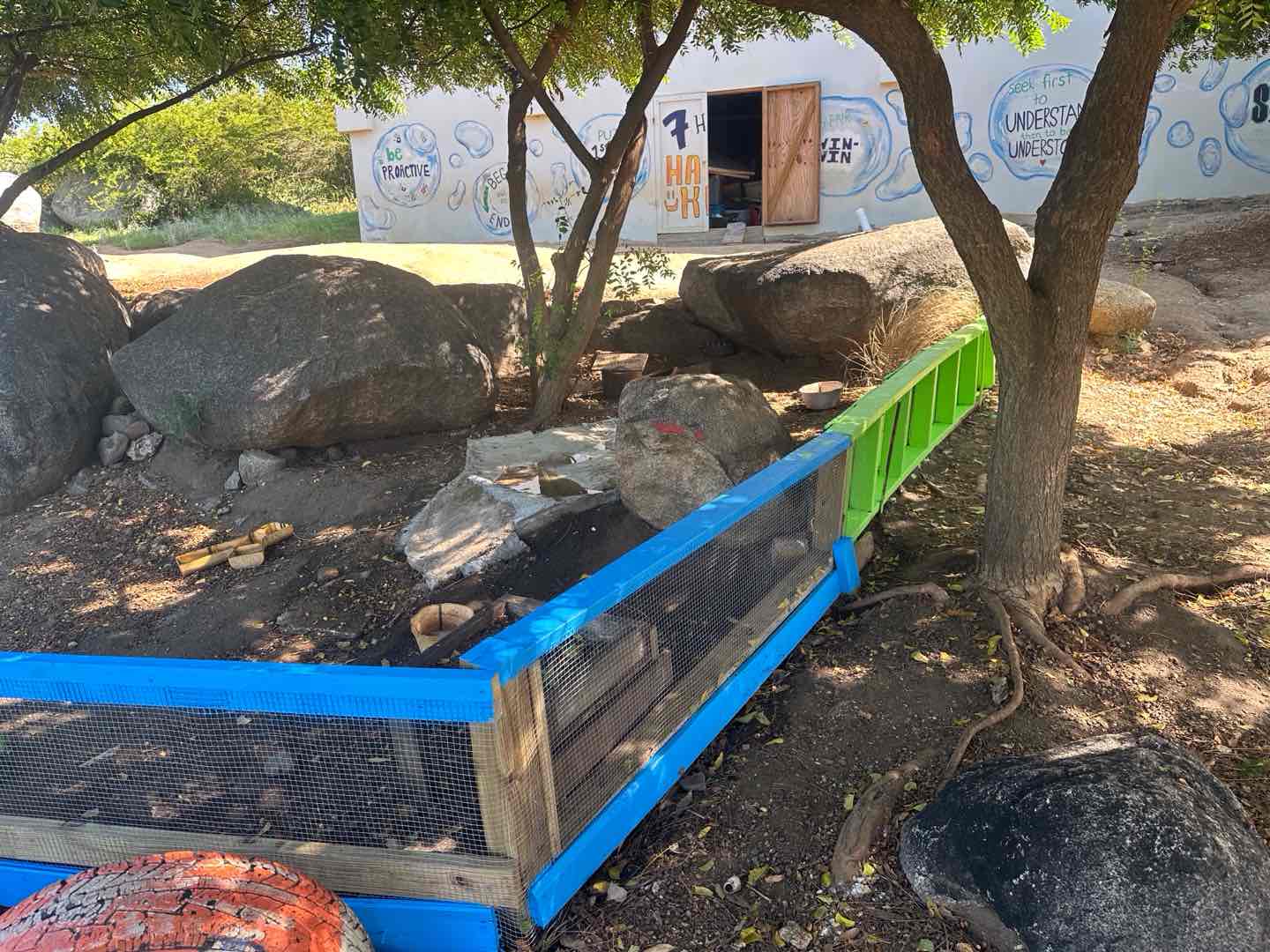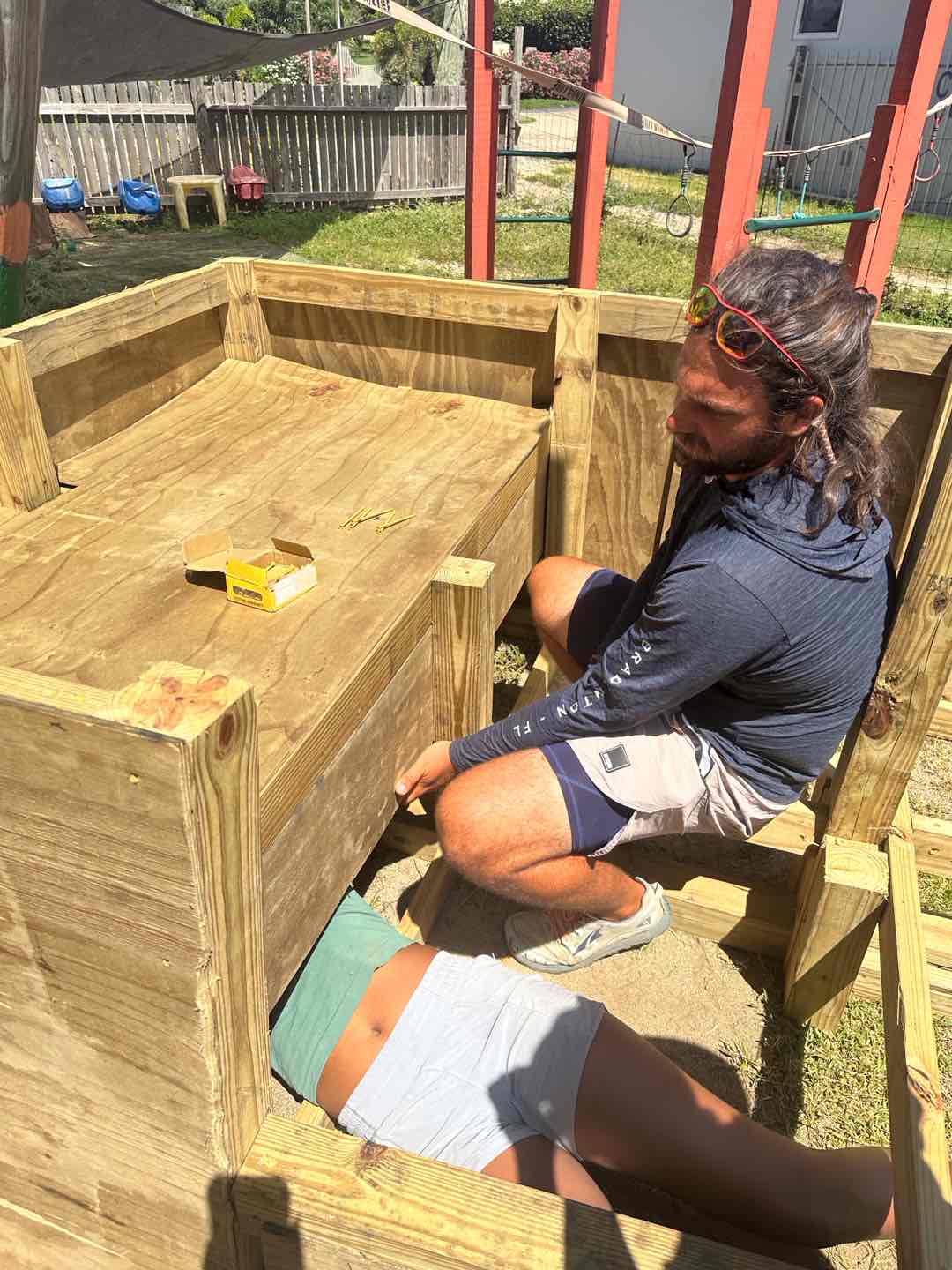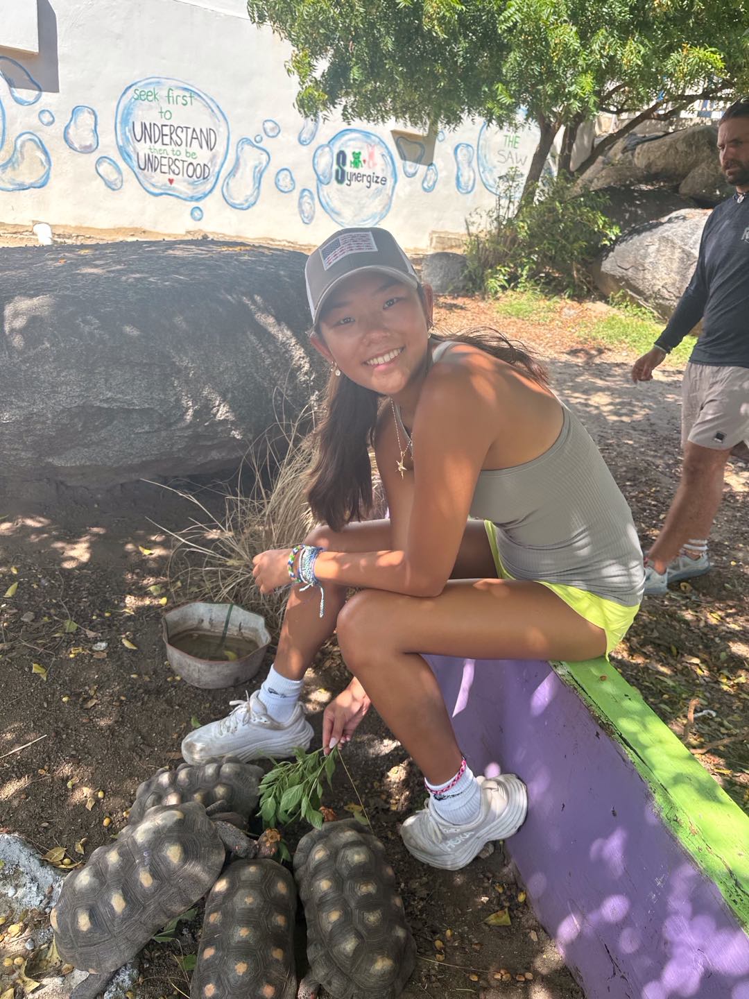 Hey guys! Maya here taking over as skipper for the day. Today marks our first full week on board this floating pile of metal, and let me tell you, we’ve learned tons, faced some fears, made friends, and sweat more than I ever thought imaginable. We started off today with a late wake-up at 7:15 (so late). For breakfast, we ate scrambled eggs and the best cinnamon muffins I’ve ever had, courtesy of Bella. We made our way to Cibony School for our last day working with Julie, with hopes of finishing up both the tortoise enclosure and the boat-shaped play structure. The group working on the tortoise enclosure (Coco, Lia, Amelia, Bella, Siena, and Heloise) did a great job finishing the pond, garden, and fence and even had time to paint it! The sailboat group, on the other hand (Annabelle, Ella, Riley, and I), was not as productive and didn’t exactly finish the boat… We did however get much better at using a drill (or an impact as Riley insistently calls it), and did the best we could to give the kids a new space to play. After a full day of work, some of us (Lia, Bella, Amelia, and Ella) took a quick dip in the ocean before it was time to set sail. Since this was our last day volunteering at Cibony School, it was time to leave Spanish Town and go over to Mountain Point, where we were spending the night. We had dinner while sailing, which was supposed to be made by Riley and Bella, but Riley was busy fixing the boat, so Annabelle stepped in to help Bella with dinner. It was Mexican night tonight, and it was definitely one of my favorite meals. I must not be alone on this because Aiden from a boat called Under Pressure also joined us for dinner tonight! As the sun was setting, we took our daily ocean shower. At the start of this eventful week, I wasn’t a big fan of showering in the ocean, but now it’s just another fun time with everyone on the boat. After this, we finished the third Pirates of the Caribbean movie and started Mamma Mia. That’s it for today!