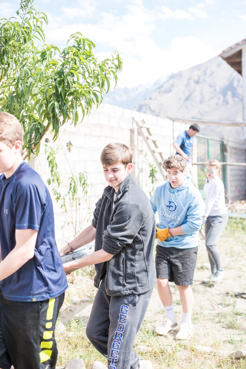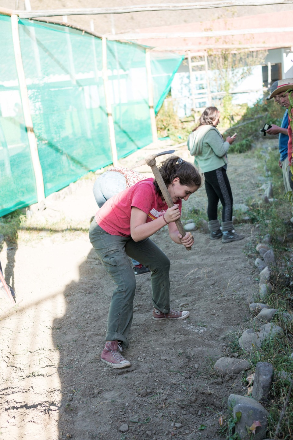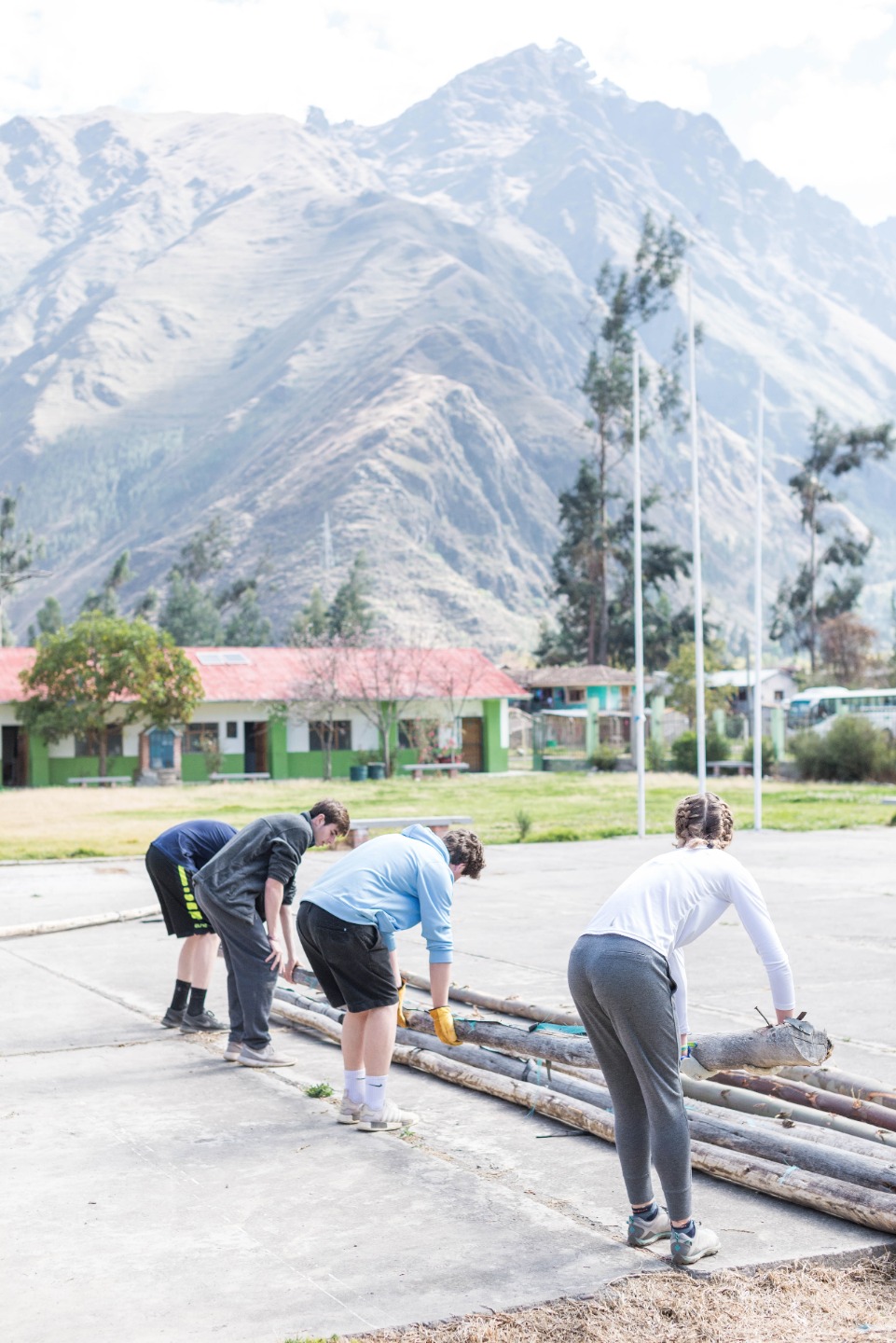 Keeping track of the people, who had already gone to the bus, was difficult but I was pleased to see everyone help by making sure we were all ready to leave. As always, it took us half an hour more than planned to leave the hotel and another long 30 minutes to get to the small school but, even though time wasn’t on our side, my eyes shone brightly when I saw four young boys running with enthusiasm towards us. I almost felt I have already been there. When we hopped out of the bus, we walked directly to the grass area, where we listened to an introductory speech from the director welcoming us to their small community. Afterward, I, as team leader, divided ourselves into small groups to help in the different tasks that they had assigned to us; Both Sam, Antonio and I worked on making holes in the ground, whilst Steph, Harry, Sofia, and Steven helped William to bring down the logs from the “roof”. Hard work deserved a break so after finishing our first tasks; the kids came directly from the art workshop to the football pitch where we would play a small soccer game before going back to work. It wasn’t long after that our guide came with what I thought was the worst, but at the same time funniest, part of all: “we need all of you to help carry trees.” At first, I couldn’t understand what he was trying to say; I thought they would be small trees which we would have to replant – that was not the job. Once we all were there, two men came, and within 15 minutes four trees were laying on the ground, waiting for five strong people to carry them – I’m not strong, but I for sure developed some more muscle after holding the massive trunks. Exhausted, all of us headed to the art room to drink some water and luckily, that was it, all work is done, right? We were all wrong, after having a delicious squash soup, stuffed chicken, and caramel crepe, we drove back to the school to work on the greenhouse. Full of energy, we were all ready to help, but our help didn’t last for very long; almost immediately after arriving the little boys sprinted towards the pitch willing to play one last game before the end of the day and of course temptation to play ruled over hard worked. The intense soccer game lasted for almost an hour, but sadly, we had to leave.