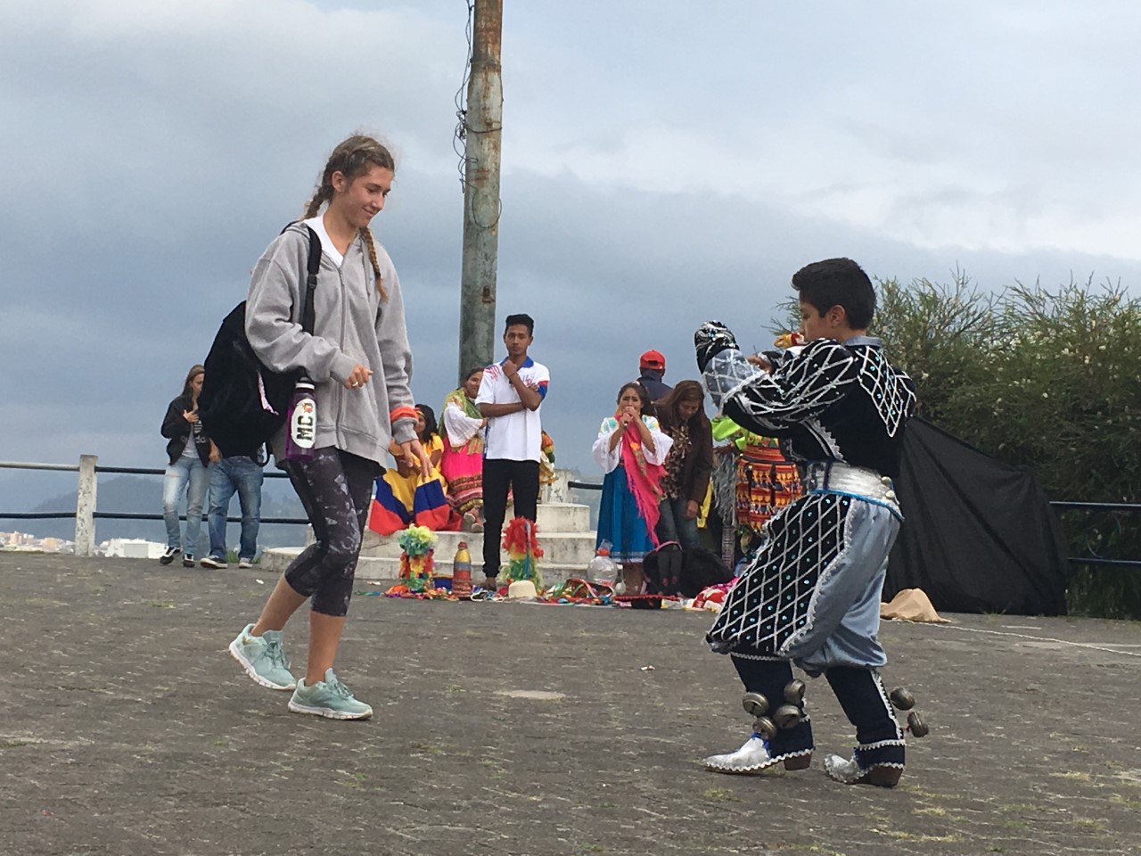 This morning I woke to a chilly outside. A group and I went on a short run outside the gates of the hostel. Then we went to a park and began to learn everybody’s names. (Twenty-five names to be exact.) Before that, we took a beautiful and steep ride to the park. After getting to know everyone, we started a tour. During the tour, we entered a beautiful church. The church was covered in gold from ceiling to floor. It was breathtaking. We also went to the top of the city of Quito. At the top was a statue of Mary and many little shops. Here Anna and I bought some pretty unique llama ponchos- they are life changing! This was the first day, and I can’t wait to see what the rest of this trip holds in store for us.