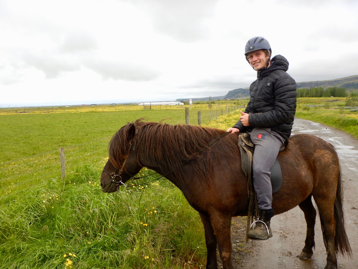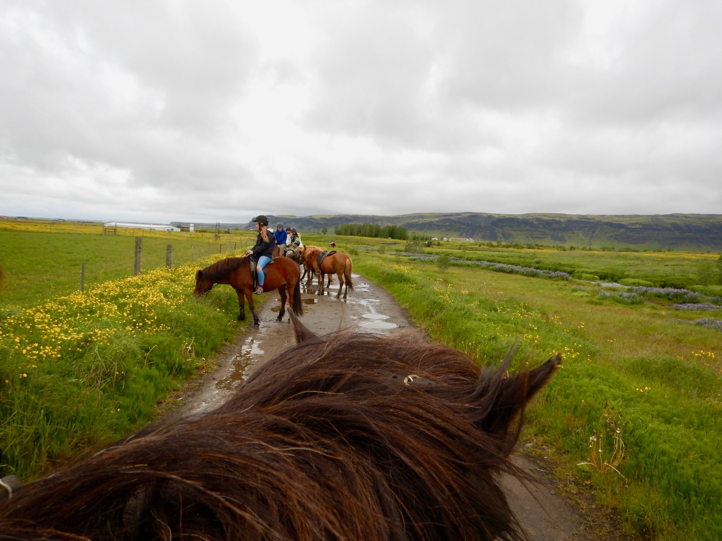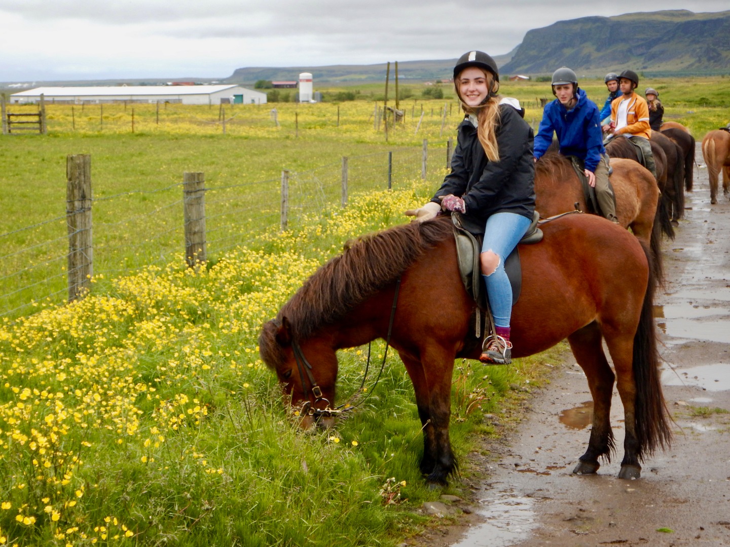 We rode down a muddy trail through a stretch of lush farmland, past a creek, and through swollen mud-puddles that caked dirt onto the horses’ shins. We tried to get the horses to break into a tölt, which is a smooth trot-like gait only Icelandic horses can run; mostly, though, the horses did what they pleased, stopping to eat buttercups and take leisurely bathroom breaks in the middle of the trail. By the time we arrived back at the stables, I was sore.