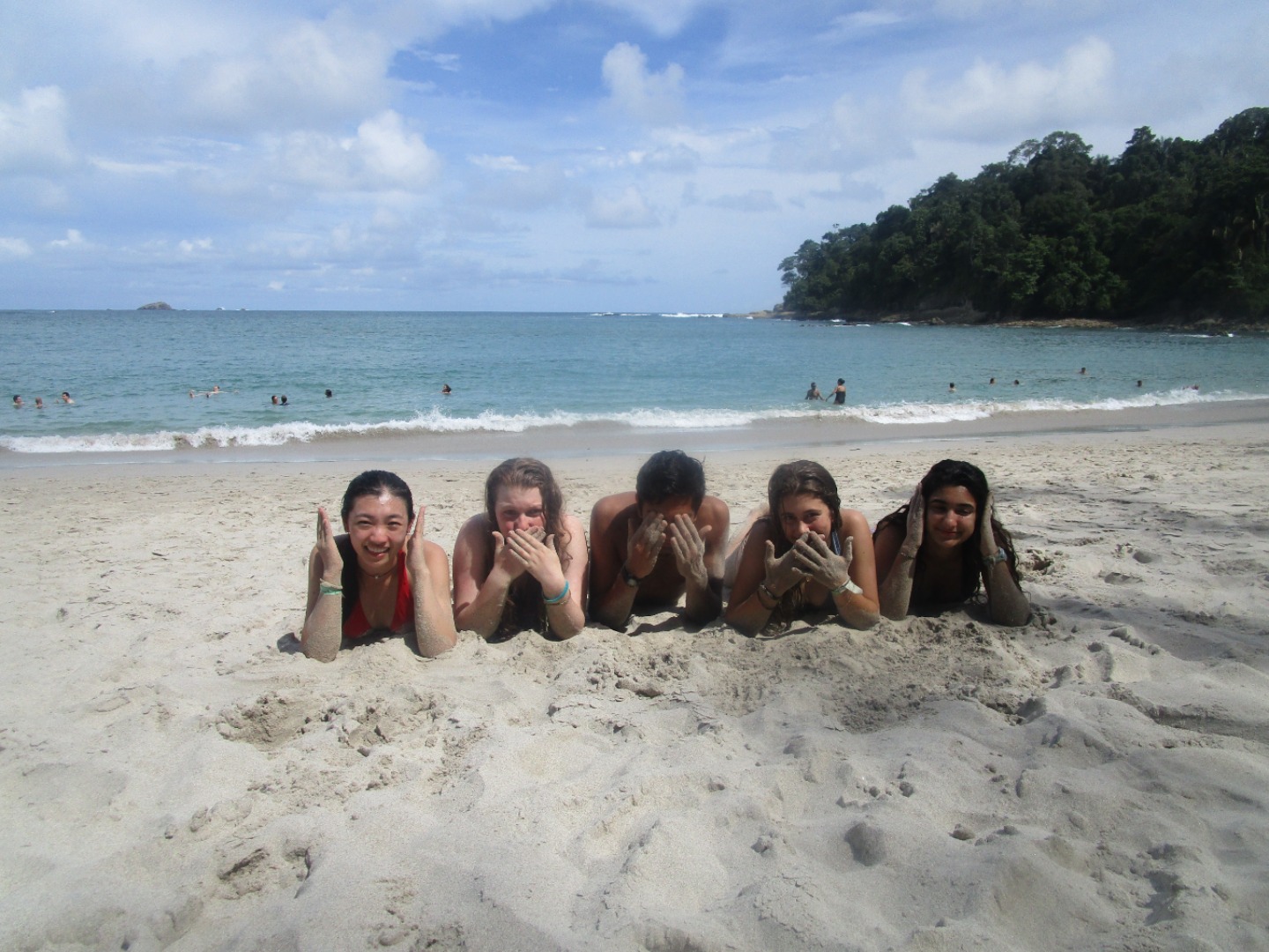 This morning we were able to sleep-in! We woke up at 8:30 and went to breakfast. After breakfast, we got on the bus and headed towards the national park. When we arrived met our guide and headed on the path. Thanks to the telescope provided by the guide we were able to get a close up of some cool animals including sloths, crabs, spiders, frogs, birds, and many more. After melting in the hot sun on our tour, we were ready to head to the beach. As soon as we got to the beach, we noticed how clear and blue the water was. When we hopped in, we were surprised at how peaceful and warm it was and stayed in the water for hours. After chilling and eating sandwiches for lunch, we went back in the water until we were kicked out because of the early beach closing of 4 pm. We headed back to the hotel and chilled until dinner. For a special treat, we went to a “fancy’ restaurant that gave us free bread! After a filling dinner, we went back to the hotel to sleep through our food comas.