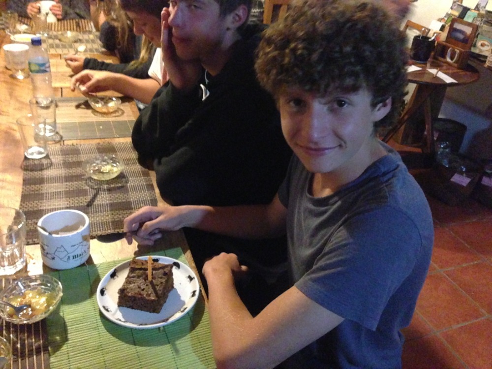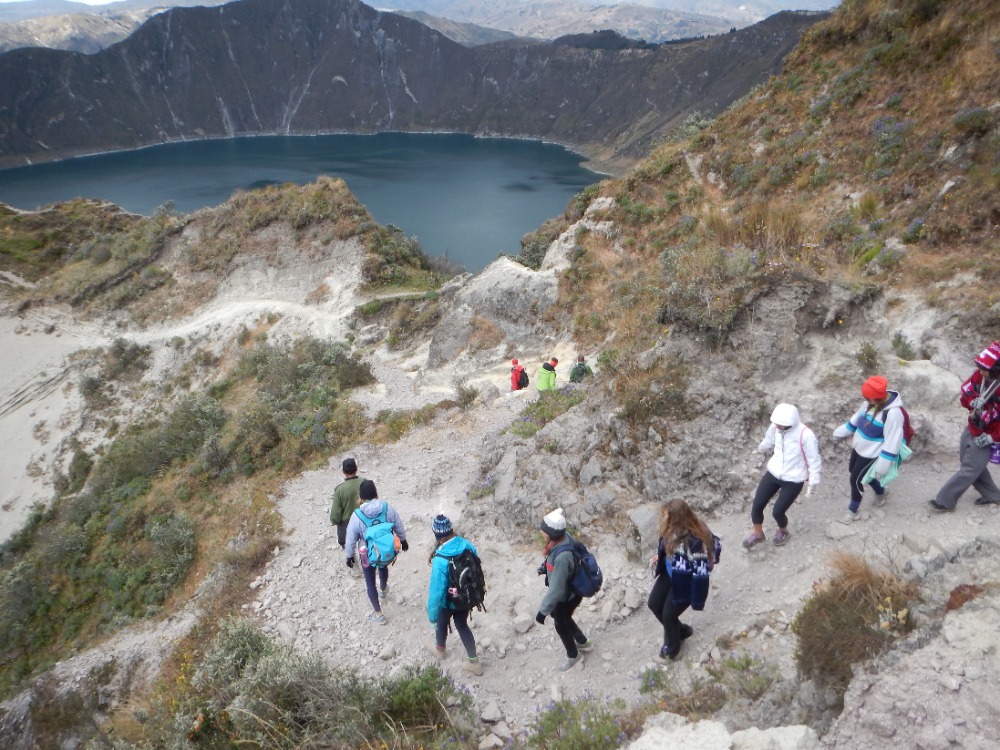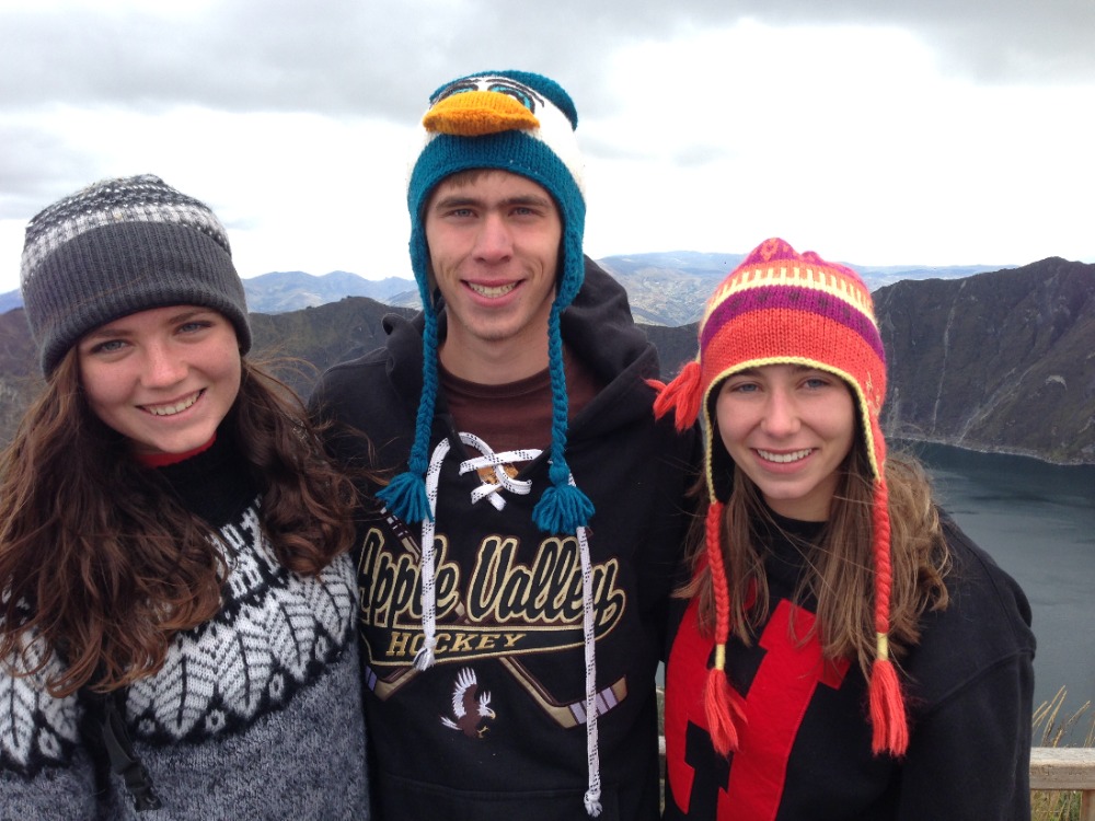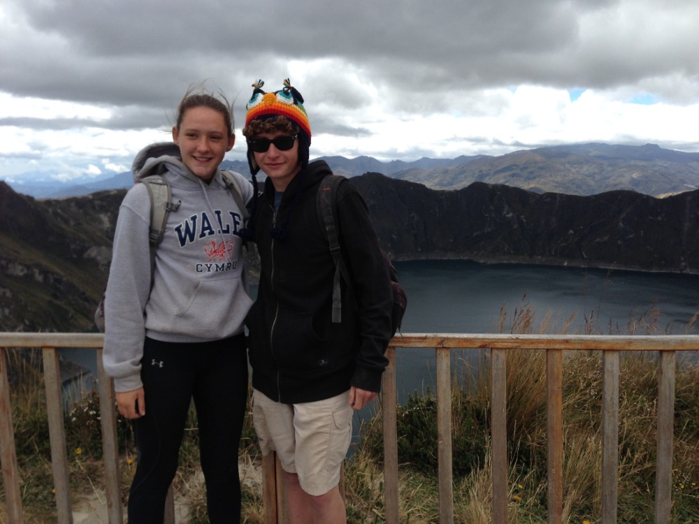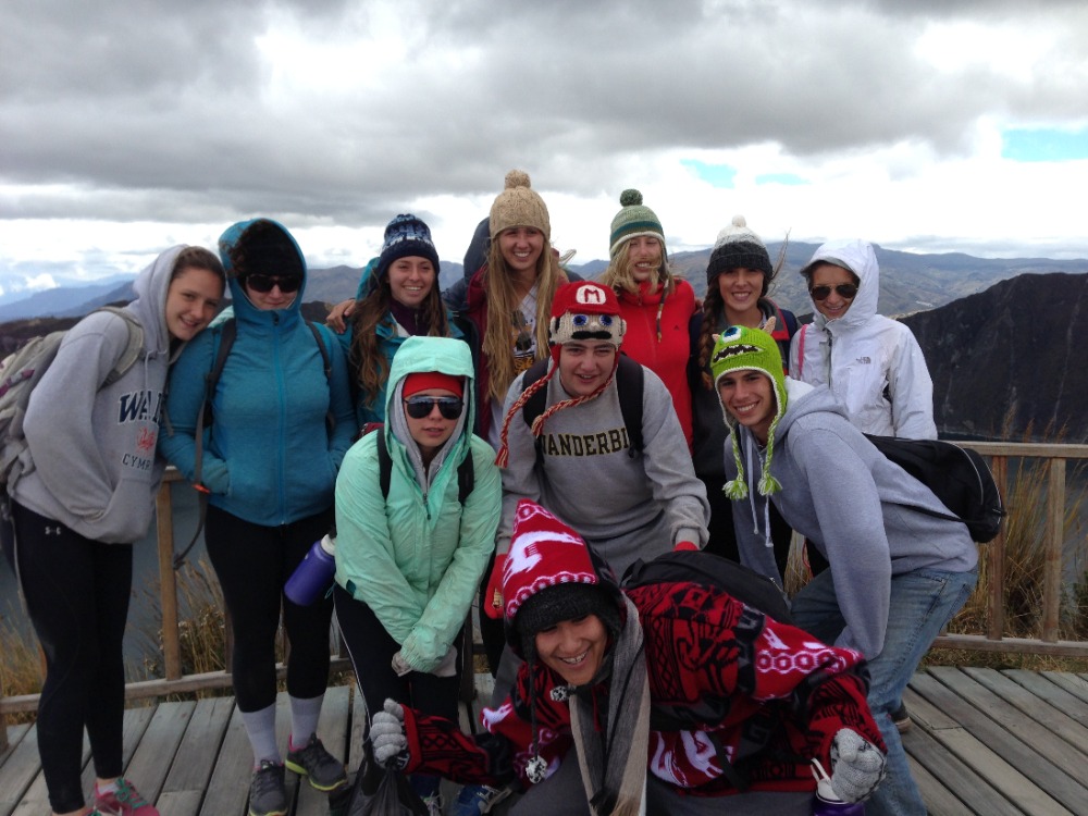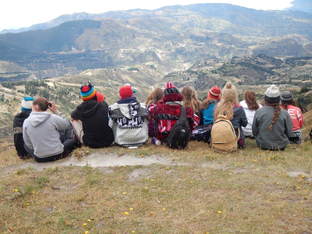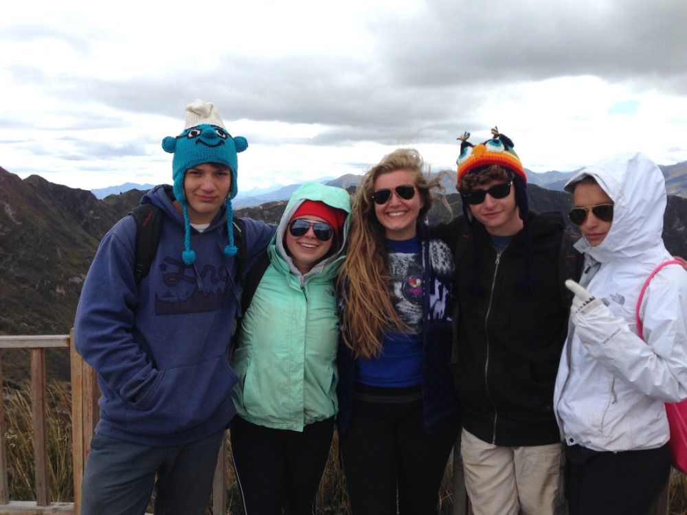 After a delicious breakfast, the 20 of us piled into the back of three open-air trucks. After a dusty ride, we arrived at Quilotoa Crater and went to the market. All of the guys bought hats with cartoon characters on them to combat the wind, while others purchased sweaters, scarves, and blankets for themselves and friends at home. After shopping, we then began our trek around the beautiful crater and down the mountainside, enjoying the amazing views. Spotting our goal, a blue awning covering a local basketball court where we would have lunch, we hiked for three miles on dusty, sandy and narrow trails to our halfway point, the town of Guayama. Resting and eating in the ever-changing weather, we prepared for the second half of our trek, and some of us even snagged a quick nap. After lunch, continuing on our hike, we descended into the valley and crossed a small stream with a log bridge. The last mile and a half of our hike was purely uphill, with many water breaks. Even on the last leg of the trek, the views were still gorgeous. As we continued our ascent towards the lodge, the clouds descended upon the mountains. Arriving at the lodge, all were excited to eat and shower. Though it was a tiring day, it was very fun and memorable.