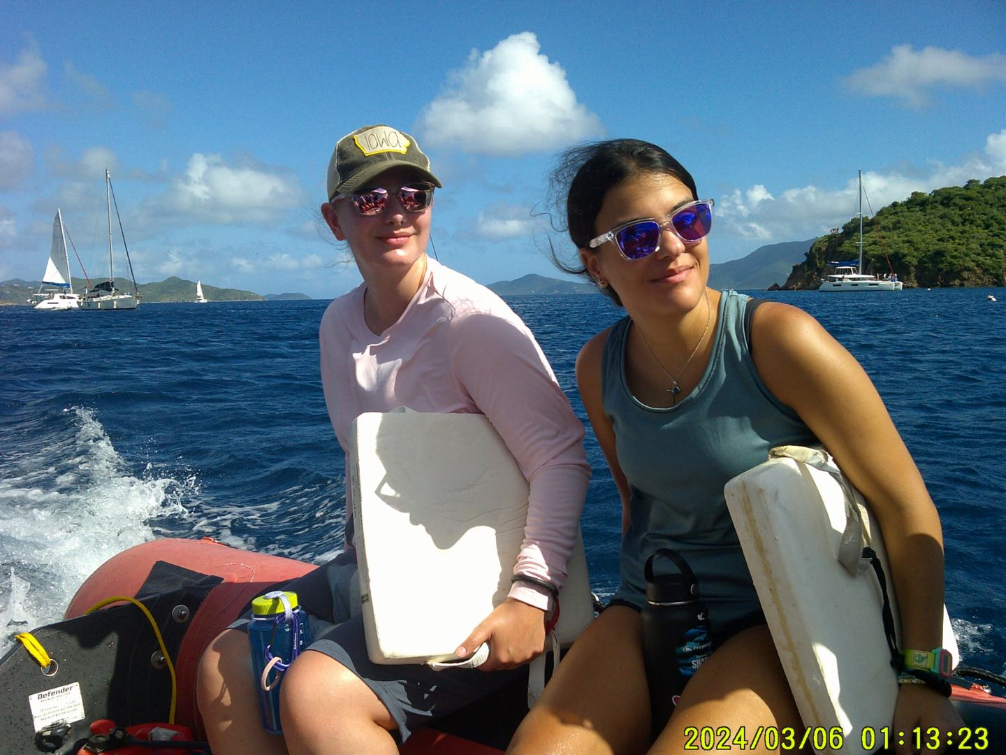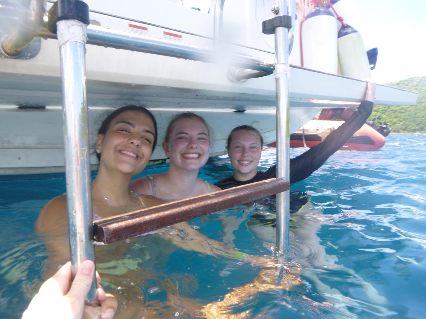 This morning, Hayes was up at five to go for a scouting hike with Riley to look at the trail. After they came back, we all ate a breakfast of muffins and eggs that Augusta and Gigi made as chefs of the day. A little later, we took a dingy ride to take a hike up Spy Glass, one of the hills on Norman Island. Although it was rather humid and weedy, the view up there was breathtaking. After the hike, we took a little swim to cool down, which was very refreshing. Following that, we picked up our mooring ball from a place called The Bight and sailed for four hours to Savannah Bay in the hot sun, which was okay because I slept for an extra hour but not ok for Addison because she got very sunburned. By the end of the sail, we bathed in the ocean when dinner was already underway; we had Alfredo pasta and cut-up hotdogs. That was the best meal we had so far on this trip, but it was probably the hardest one for Violet, Grace, and Addie to clean up. Once the boat was all cleaned up, we settled in for a chill evening playing spoons and categories.