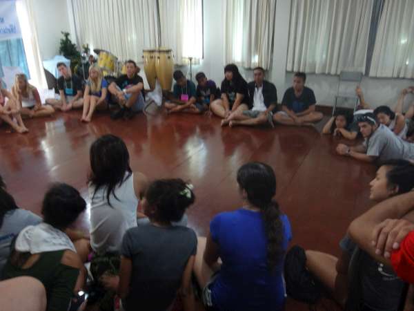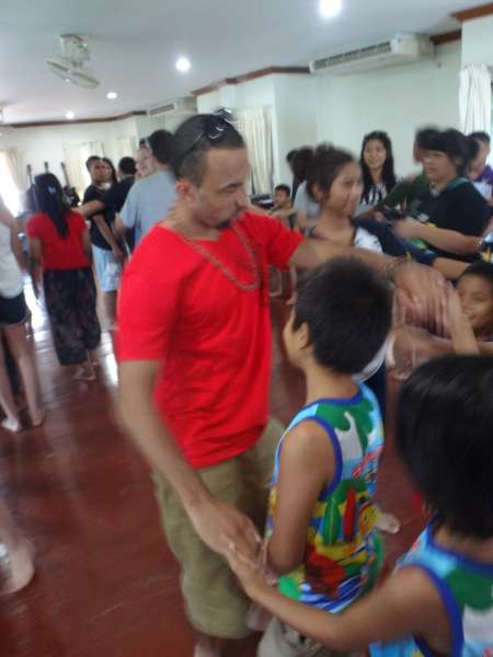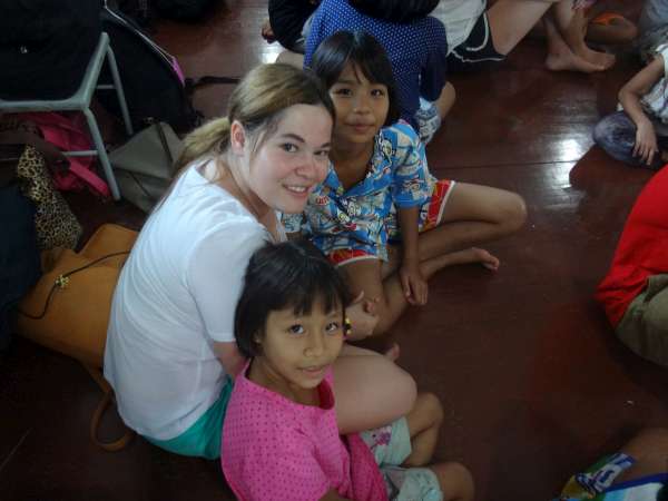 Exchanging hellos and names with the children, we went back upstairs to play the game of bees and hives. Bees and hives was a very interesting game where some people were bees and others hives and there was a lot of switching before we figured out that the point was not to get eliminated by being left out of a hive. It was very amusing and rewarding to play with the children. Once the game finished up, we judged the competition for the best handshake with our Thai buddies, and best buddy photo. We all left the orphanage and commenced our three-hour journey back to Bangkok. Arriving at the hotel around four in the afternoon, all of us Lifeworkers were pleased to see nice hotel rooms and have a quick break before dinner. The group decided that American food would be a comforting reward after our experience at the orphanage, so we went out for burgers. We left the restaurant stuffed and excited to see the market that lined the roads that led back to the hotel. Lots of gifts were bought and we came back to the hotel satisfied with the day and our purchases.