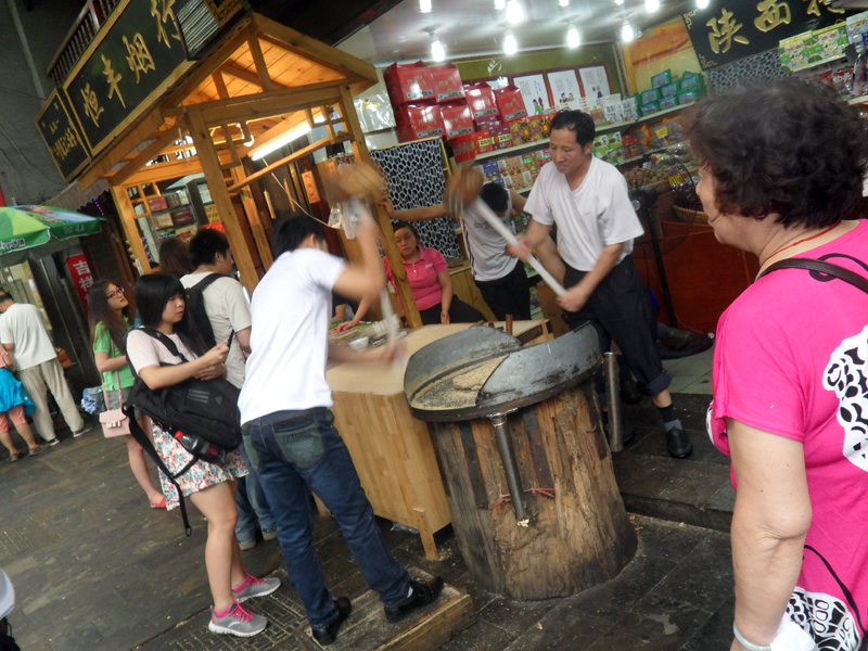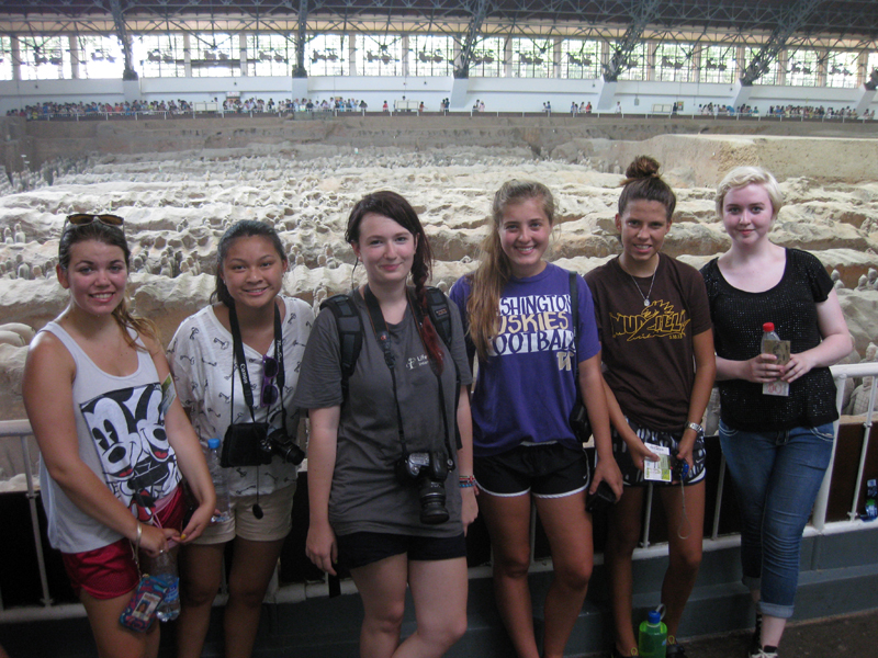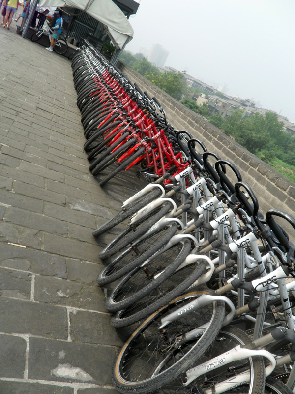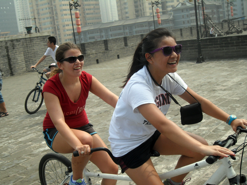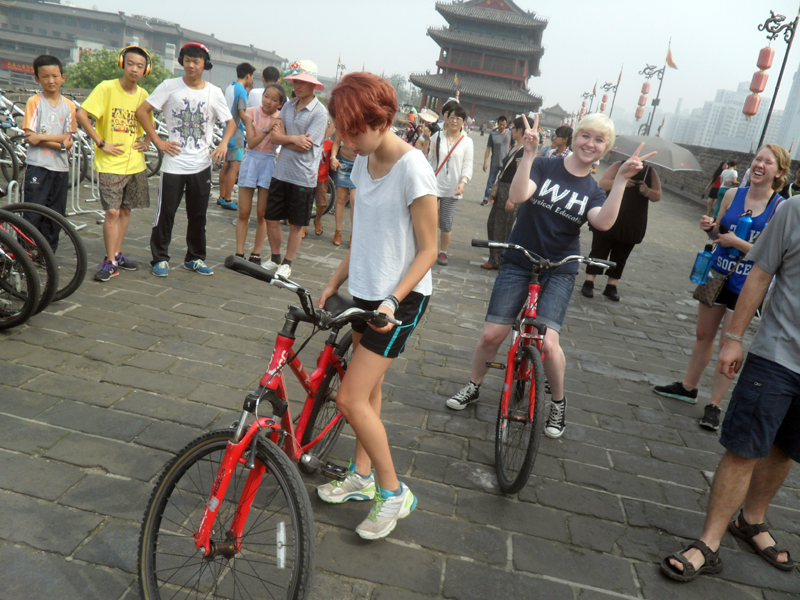 Last night we stayed over in the hotel in Xi’an. Early in the morning, Hannah, Lily, Scarlet and I woke up to make a pre-breakfast trip to Starbucks, something that we had very much been missing since arriving in China. We were back to the group by 8, in time to make the trip to the first excursion of the day, the outer wall of the city. We were given the option of a tandem or single-rider bike to complete the 9km route on the top of the wall. Having never ridden on a tandem bicycle before, Lily and I decided to make the journey together. We had trouble starting in sync, but once we were moving, we were able to make the trip without much trouble.