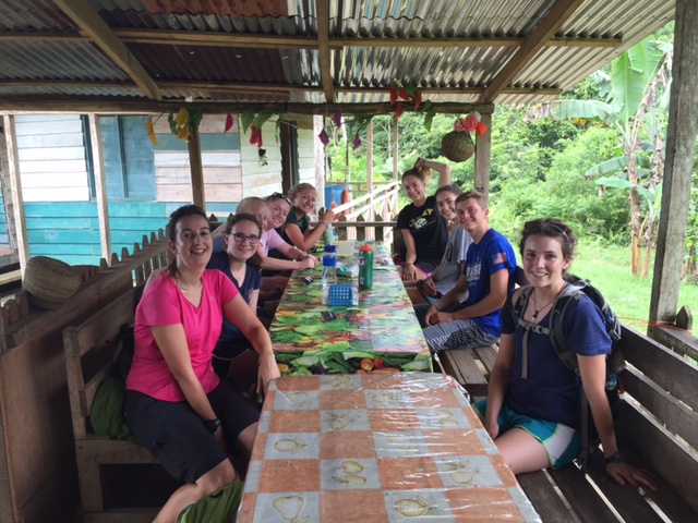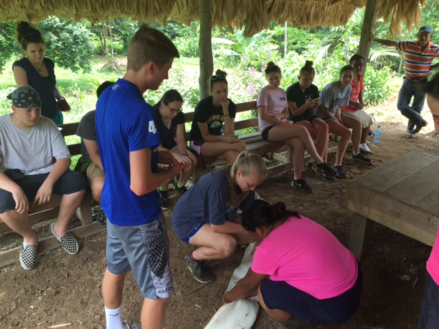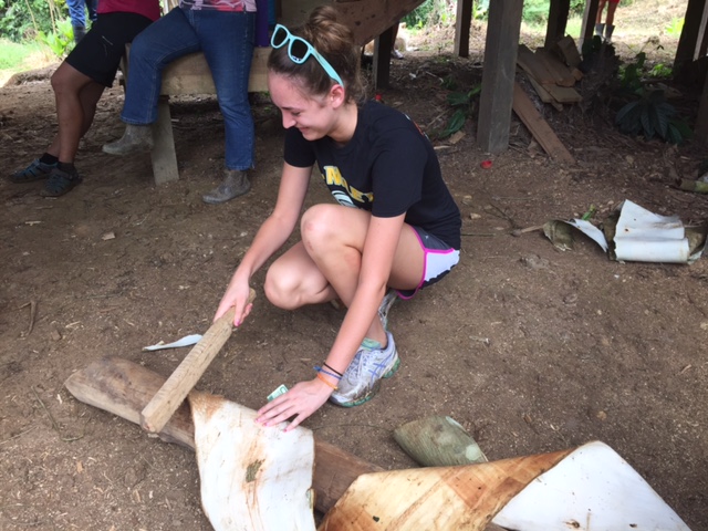Hola padres y amigos! We started the morning at 6 am with our host families and embarked on a journey to an indigenous tribe named Cabecar for lunch. While at Cabecar, we learned how to make clothes and paint from trees and leaves. To get back and forth from the tribe, we rode in a wagon connected to a tractor that went through a rapid river and up the rocky mountainside. We then got back on the bus and headed for the next indigenous tribe. We made a stop at a grocery store and got some snacks. We then arrived at BriBri, and learned about their culture and customs and slept in the traditional indigenous home which reminded us all of a tree house. To sum up the day, Alissa is our honorary mom; Taylor says Eve is wrong because she has almost finished the two books she brought; Alex got pooped on by a bat; Sebastian enjoyed a refreshing indigenous shower; Kenta told us all Japanese horror stories; and Hannah, Kathryn, Avery and I all annoyed our bus mates while singing some classic songs. Adios!