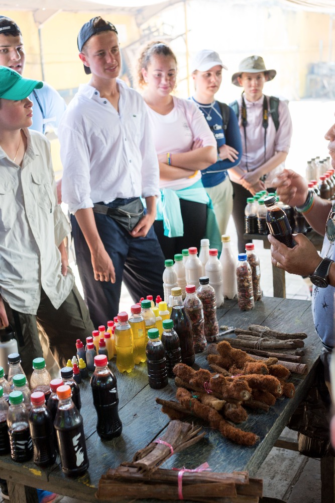 Afterward, we visited a local pharmacy and learned about unique and interesting kinds of medicine including dragon’s blood and Wayusa tea plant. Ecuadorians have been using these natural remedies for hundreds of years. Dragon’s blood is a brilliant, helpful medicine that heals your wounds and helps with nausea and Wayusa is a dried tea plant that promotes energy and calms the ethereal body. We had the opportunity to try Wasusa at Hector’s island, and it was delicious as it could ever be. Learning about these drugs made me wonder how it would be if they were sold in the U.S. to cure people who are having a difficult time with injuries or even to make them stronger!