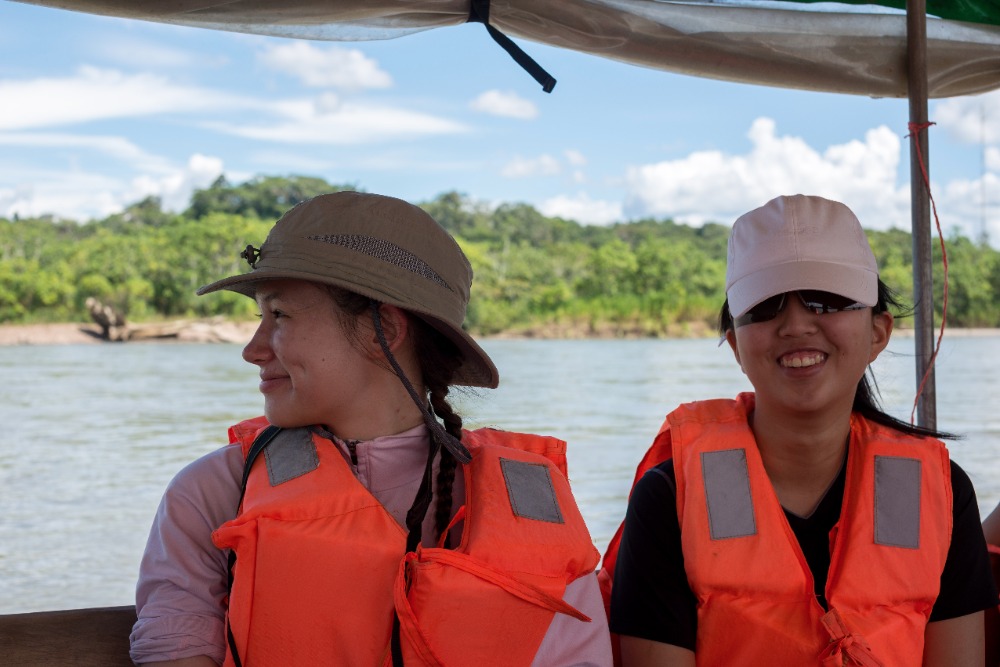 Finally, the first grand adventure of the Amazon had come, a visit to Hectors Monkey Island (also known as Sumak Allpa)! Hector was the best, giving us a precious opportunity to visit his island! Hector quickly pointed out Wooly monkeys swinging from the tops of the trees nearby. Wooly monkeys are adorable and hazelnut color. Walking through the Amazon rainforest was fascinating, especially because we were following Hector who has the best eyes for spotting animals, especially the monkeys and birds. One by one, our knee-high rain boots made footstep marks on the ground, symbolizing that we were here. After a few miles of walking into the verdurous, astounding natural forest, we spotted two more monkeys on long, thin branches. We stood in this spot for a while we observed even more monkeys. Shutters were clicking faster than lights, eyes were wide open, and our heads were cranked up to the sky. Looking up toward the canopy, we saw views filled with colorful, dynamic and stunning images of monkeys that will be treasured forever. The launch of our exploration of the Amazon had been amazing thus far. Having seen only one monkey so far, I hope I can see even more kinds of monkeys during this course of this trip. Our fabulous guides, Skylar and Devin, said they had seen seven and seventeen types of monkeys, respectively. A girl can dream!