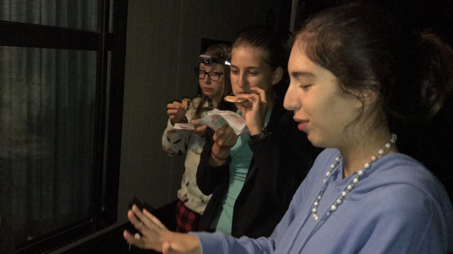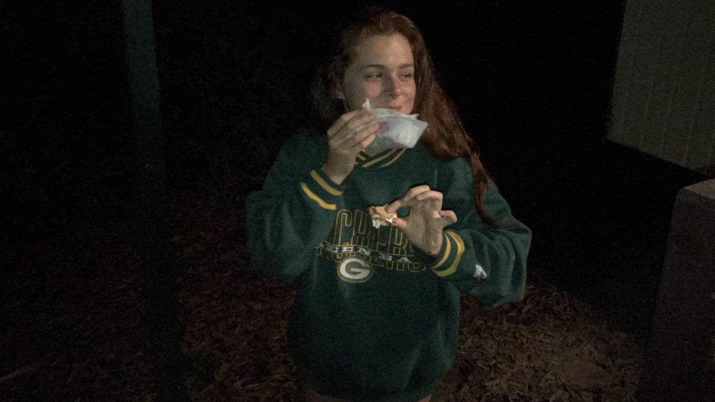 The highlight of the day was the hour-long storytelling session that followed the BBQ. This was when it started getting dark, and the scary stories began. Multiple stories were told that scared the bejeebers out of everyone. This leads to everyone screaming over and over and over again. We probably scared other people on the campground with our screams. Stories ranged from scary camping tales to horrifying babysitting stories. Tres told the scariest story of the night about a killer that someone saw through a window only the window was a mirror. Most of us were afraid to walk back to our cabins in the dark after hearing all of the scary stories, so we decided to end the night with some happy stories. The happy stories didn’t have as much of an effect on us as we wished it would have since most of us still ended up running back to our cabins screaming for no reason. I bet many of the people won’t be sleeping tonight or will be waking up from nightmares.