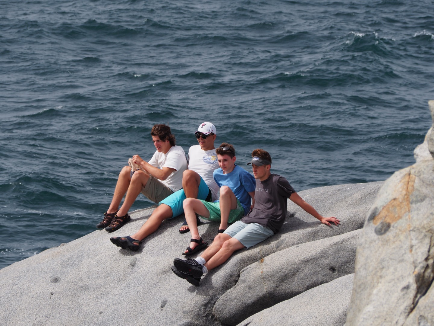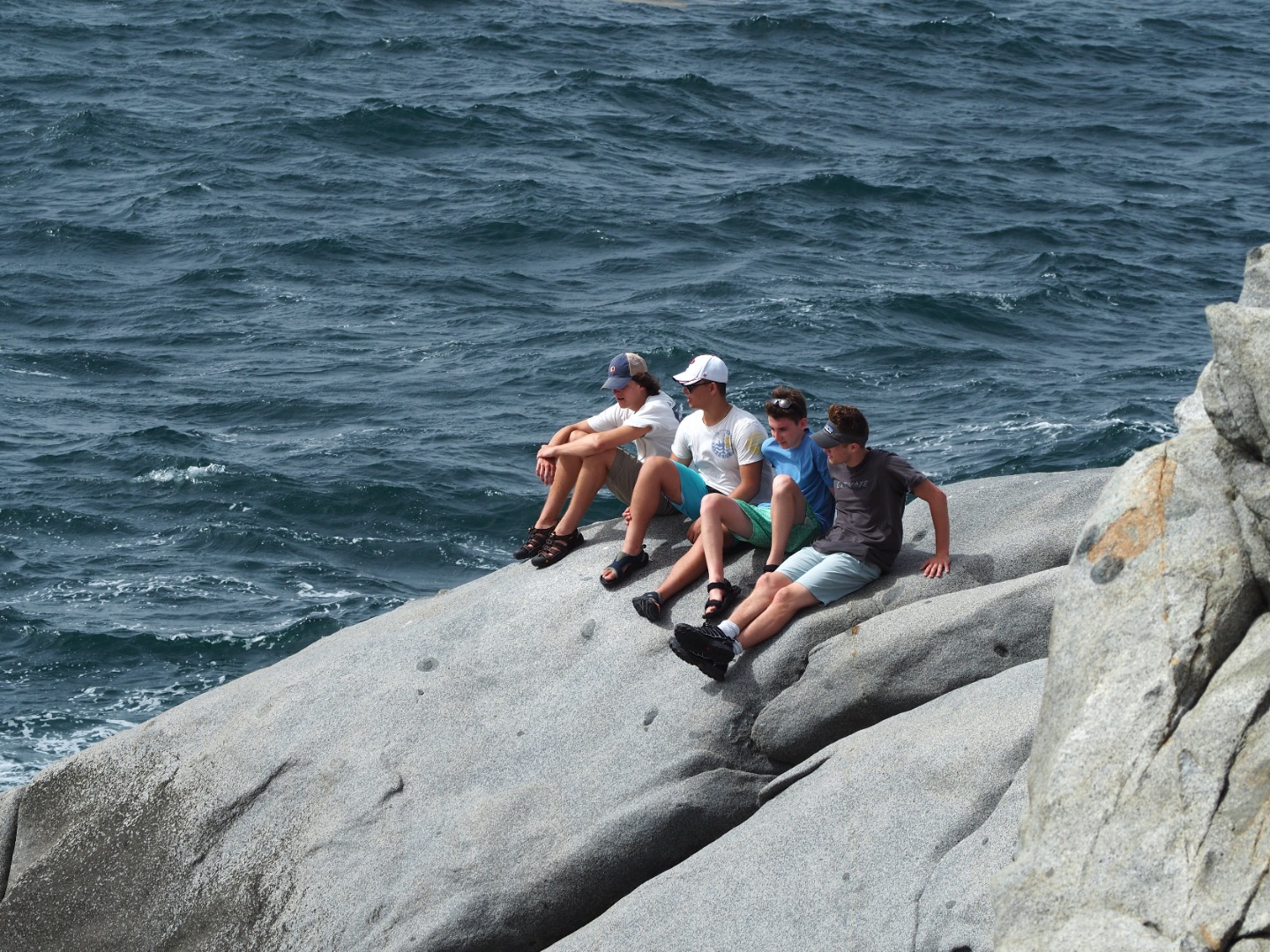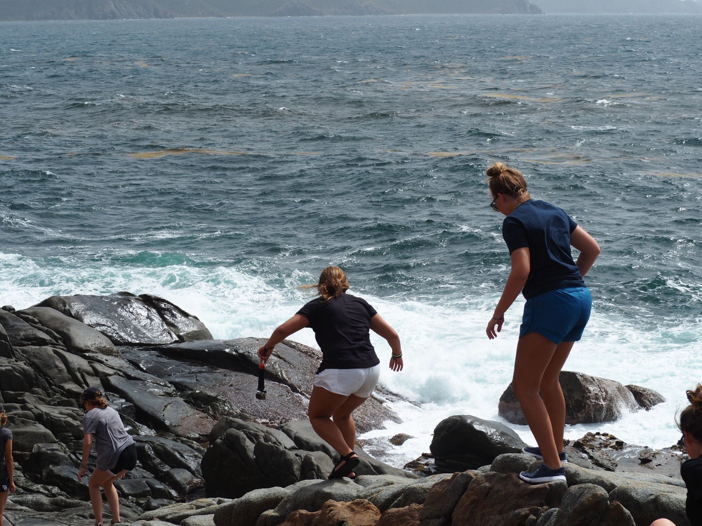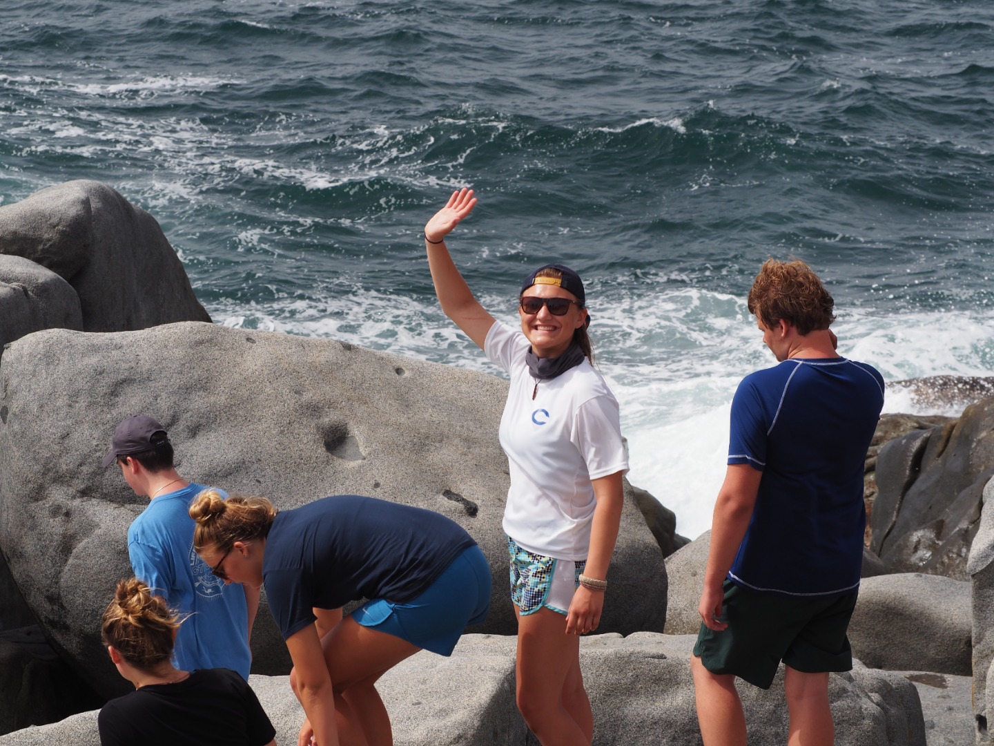So, today started quite interestingly. We began the morning with Gwen and Hannah so graciously trying to haul up the anchor, and captain, and dingy tender all at once while all of us still slept. But, unfortunately, the dock line holding the dingy to the boat got caught in the port side propeller. This, of course, delayed us as both Gwen and Hannah, as well as Will from Some Beez, had to unwrap the line from around the propeller by hand. To make it worse, Hannah was stung by a jellyfish while in the water helping. It was a terrible sting, and we all awoke very concerned, but she was a real trooper and went through the rest of the day coping with the continual pain from the venom of the Jelly. After concluding our very eventful morning with successfully removing all of the lines from the propeller, we headed back to Spanish Town. But, instead of working hard, we took a day off after the long day that preceded and ventured deeper into Virgin Gorda to the well known “Coppermine National Park.” This was an incredible spot, taking us up and down rigid rock structures alongside huge, crashing waves – terrifying yet spectacular. This tested my fear of heights. But it’s moments like these that make this program so incredibly rewarding, as I encouraged myself to complete what was an experience of a lifetime. At the end of this mind-blowing hike, we landed upon a beach where we did a quick cleanup, picking up plastic bottles, fishing net, bottle caps, and many other pieces of trash that threaten the safety of the marine ecosystem. We continued our clean up at another beach ways down the road. Here, you could truly see the damage caused by Hurricane Irma – jet skis and boat lines buried under the sand, unable to be retrieved by our bare hands. BZ took the opportunity to teach us more about different types of plastics, using examples that we had collected across the beach. The rest of the day was chill yet fun-filled as we had our first shore time, or free time, in Virgin Gorda where we got to buy lunch, and snacks, and even use our phones – we were all extremely excited because, being teenagers, we were just itching to reconnect with the technological world. The day concluded with a beautifully prepared Veggie Burger barbecue where Some Beez and our boat connected and had one big, social feast. The excitement over the programs adventures and the gradual strengthening of the Two Ghosts family is truly beginning to shine. We can not wait for the coming opportunities and adventures.