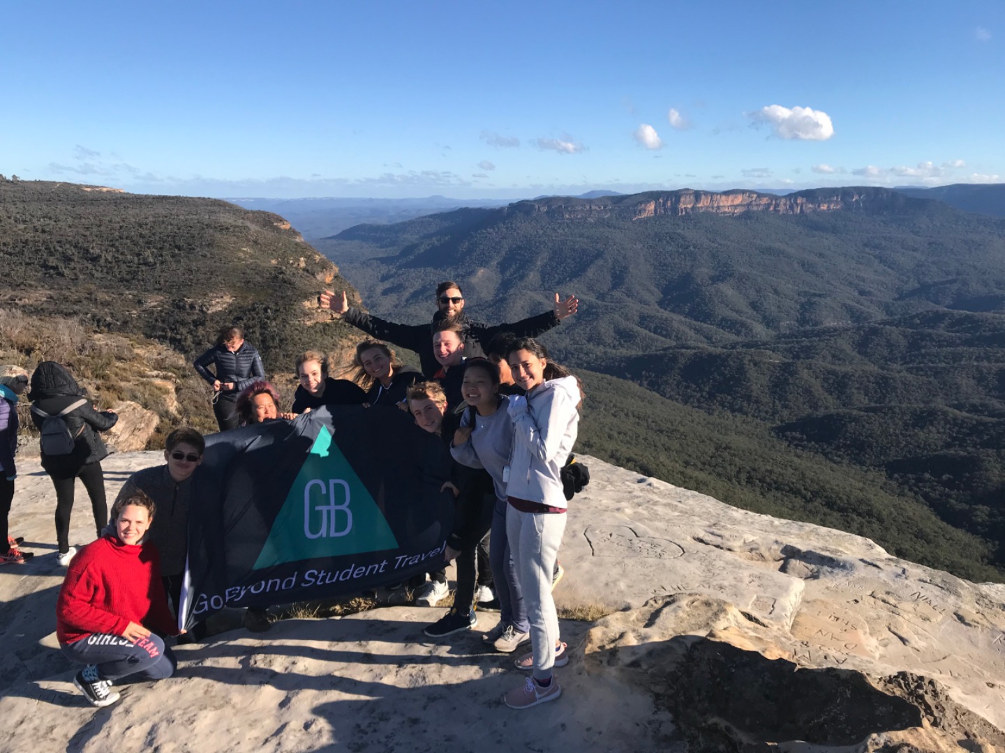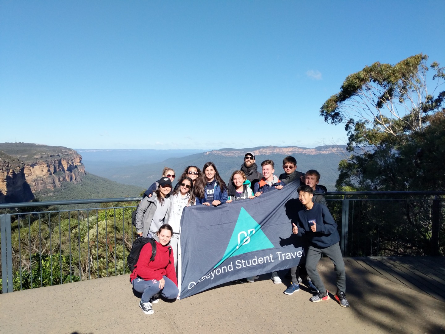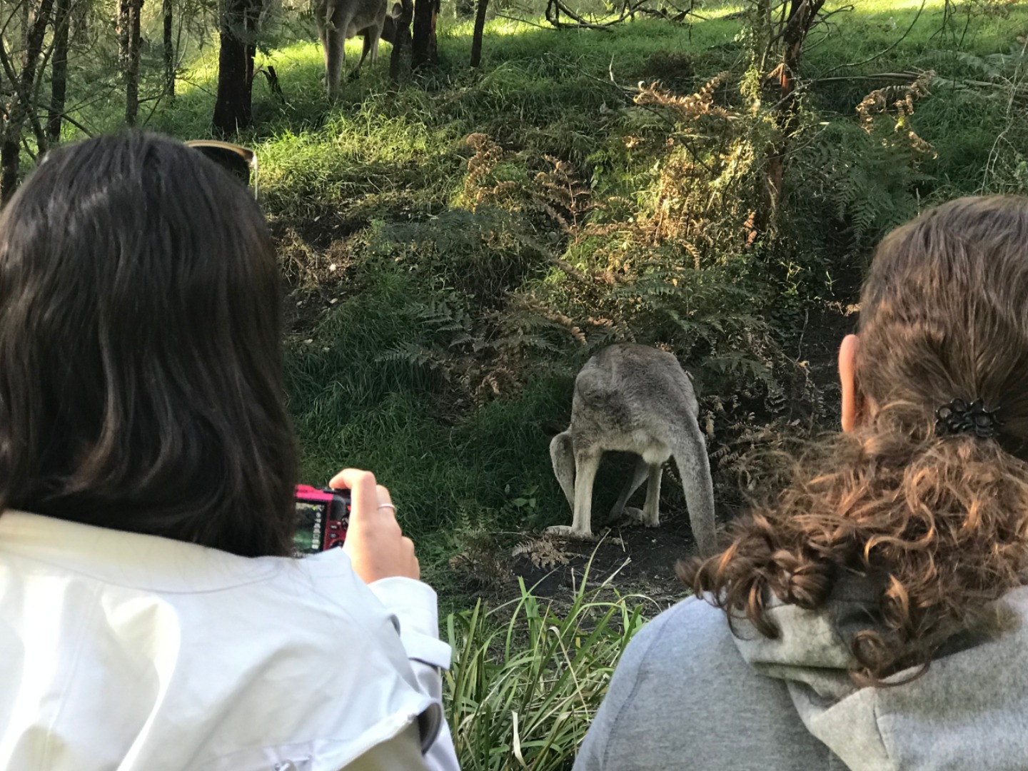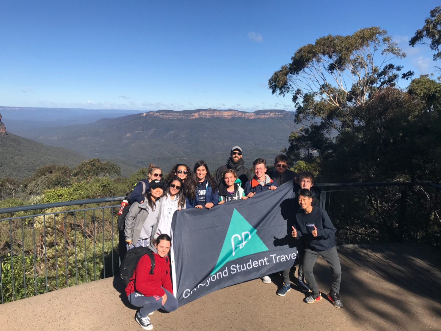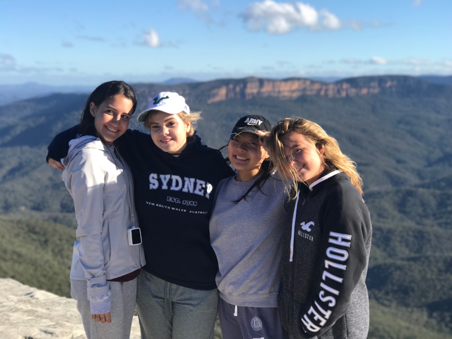 Our day started with a 7:30am pick up in a very Australian themed bus named Trudy. After riding for over an hour, we arrived in the Blue Mountain National Park. Our guide, Trent, spotted 2 kangaroos munching on some grass and we pulled over to take some photos before they bounced away. Before going on a hike, we went to get drinks and snacks at a local cafe. After the refilling, we embarked on our first hike through the Blue Mountains and across a waterfall. With lots of ladder-like stairs and muddy puddles ahead we could only hope for the best. In only a few short minutes we began to see that the hike was paying off. The water from the waterfall was showering the floor as we looked over the mountainous terrain. Even though some thought it was difficult, no one regretted the experience. Taking photos and viewing other geographical formations like the Three Sisters made us hungry so we set up in a park to eat lunch and had ourselves a proper Aussie barbecue. We tried kangaroo meat (which was delicious) and enjoyed the presence of five cockatiels and a pair of kookaburras during lunch. With full stomachs, we headed back towards our Bondi Beach hostel. On the way back we picked up Thai food and some fish and chips for dinner. Today was one that I will never forget as we got to enjoy new and exciting experiences.