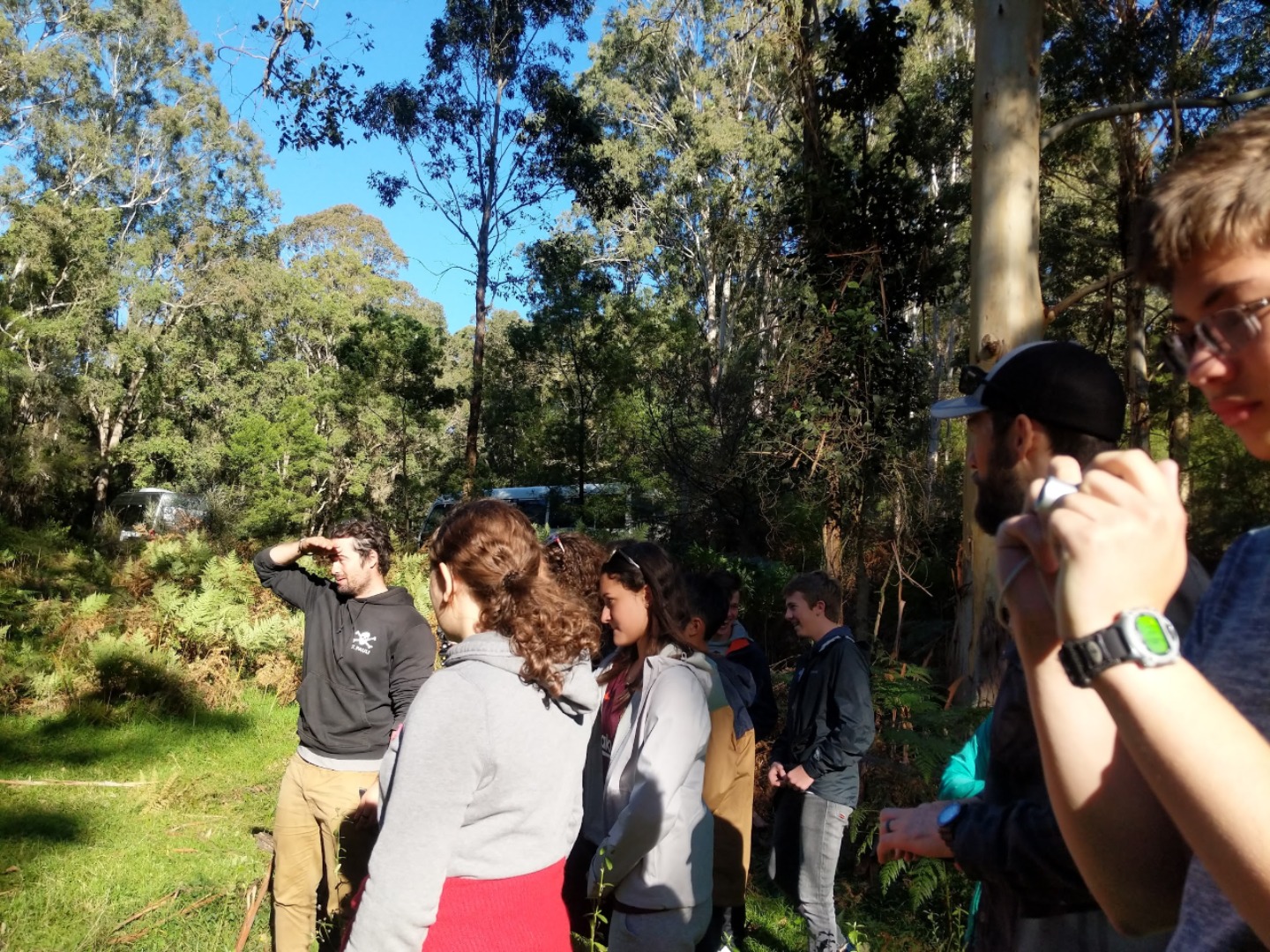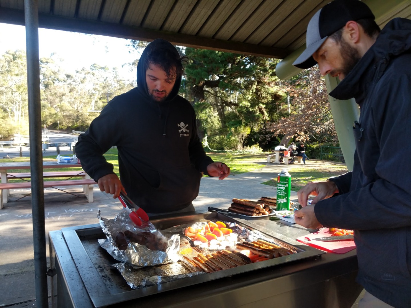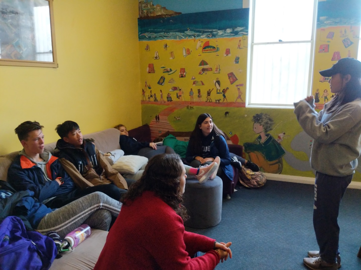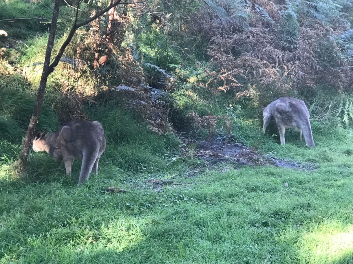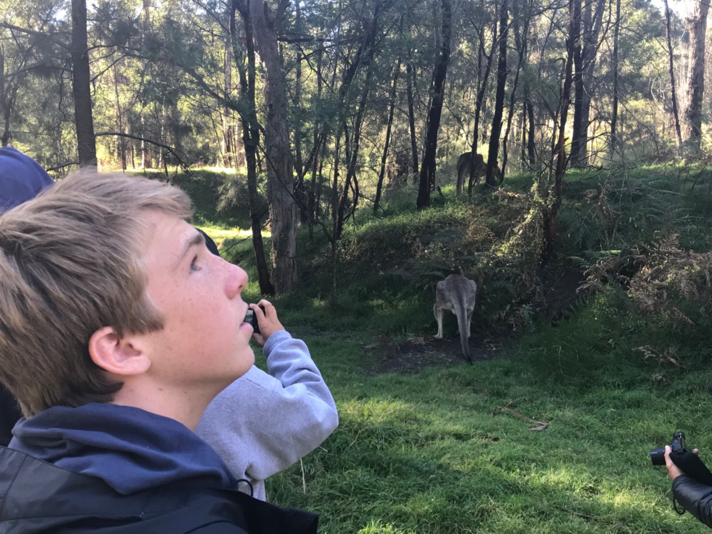 Our day started with a 7:30am pick up in a very Australian themed bus named Trudy. After riding for over an hour, we arrived in the Blue Mountain National Park. Our guide, Trent, spotted 2 kangaroos munching on some grass and we pulled over to take some photos before they bounced away. Before going on a hike, we went to get drinks and snacks at a local cafe. After the refilling, we embarked on our first hike through the Blue Mountains and across a waterfall. With lots of ladder-like stairs and muddy puddles ahead we could only hope for the best. In only a few short minutes we began to see that the hike was paying off. The water from the waterfall was showering the floor as we looked over the mountainous terrain. Even though some thought it was difficult, no one regretted the experience. Taking photos and viewing other geographical formations like the Three Sisters made us hungry so we set up in a park to eat lunch and had ourselves a proper Aussie barbecue. We tried kangaroo meat (which was delicious) and enjoyed the presence of five cockatiels and a pair of kookaburras during lunch. With full stomachs, we headed back towards our Bondi Beach hostel. On the way back we picked up Thai food and some fish and chips for dinner. Today was one that I will never forget as we got to enjoy new and exciting experiences.