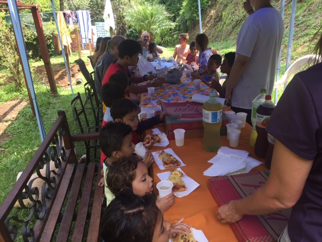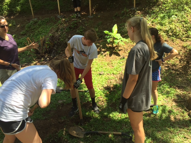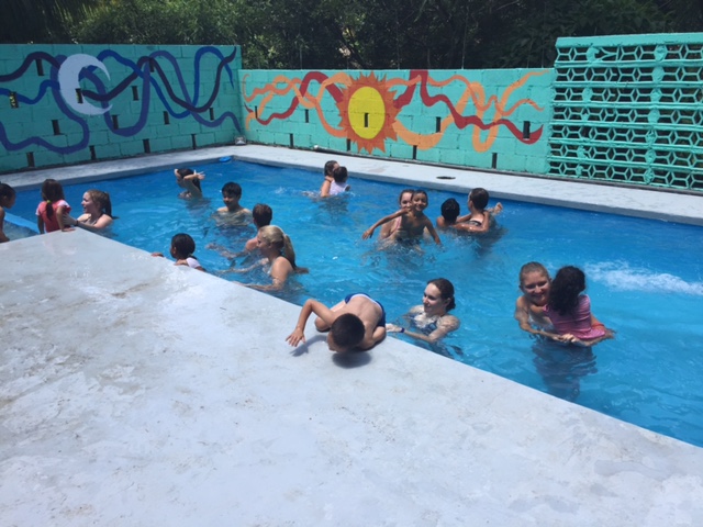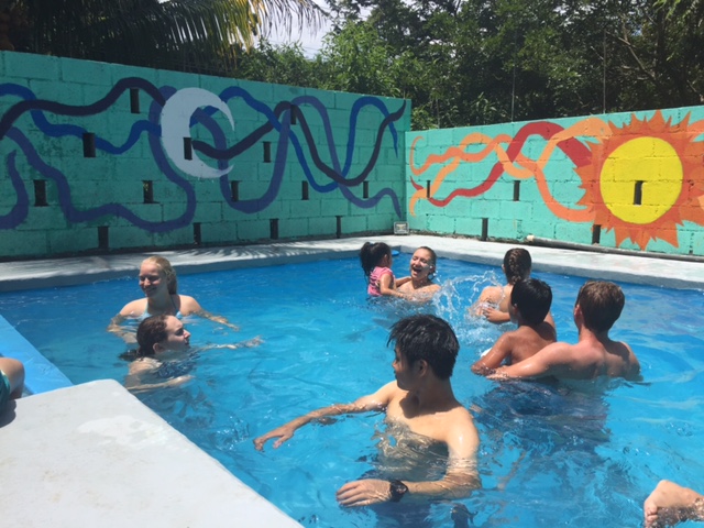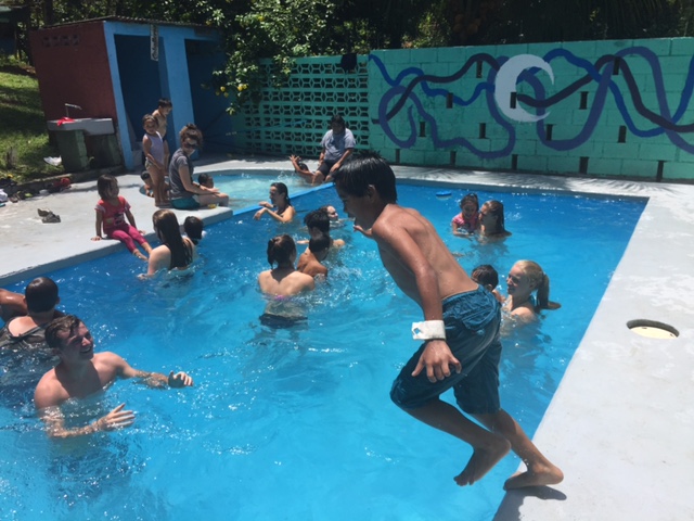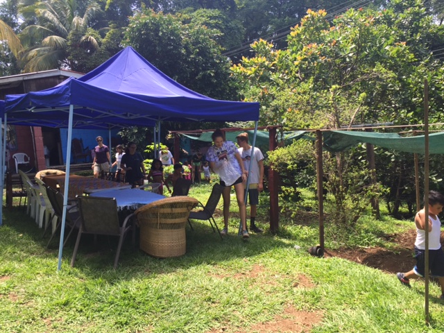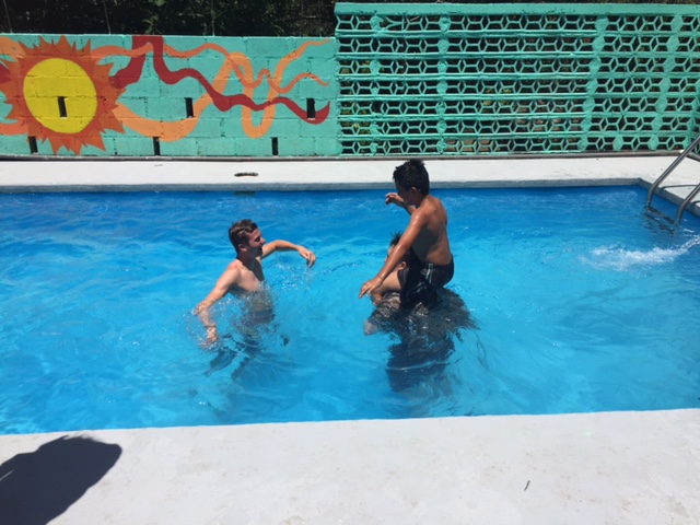 This morning we woke up at our host families’ homes and met at 8:30 to return to La Finca. Today some kids from La Carpio took a field trip to La Finca to have an experience outside of the city. We hiked with them, and they collected leaves and other things they found interesting. After that, we swam with the kids and had to keep them afloat since none of them could swim. Then we ate lunch and made art projects with them before they left. Then we built a fence along the path that leads to the top of the hill of La Finca. After we finished, we went back to our host families and got our phones before going to play a soccer game against our host families. Kenta was the MVP of the game, carrying us to our loss of 12-6.
