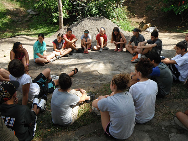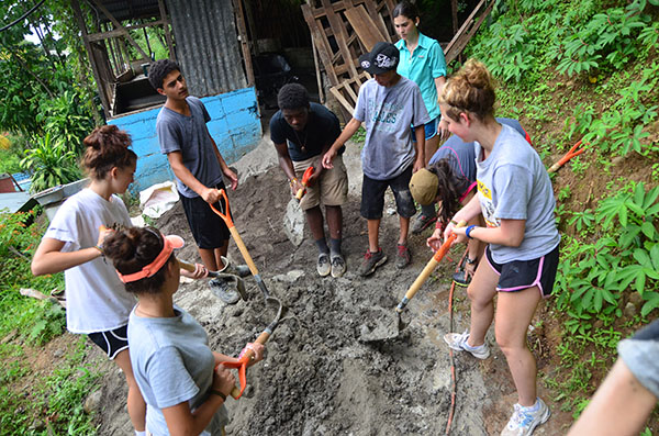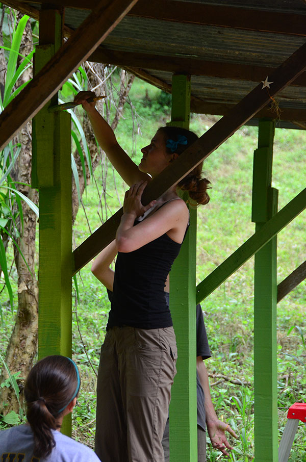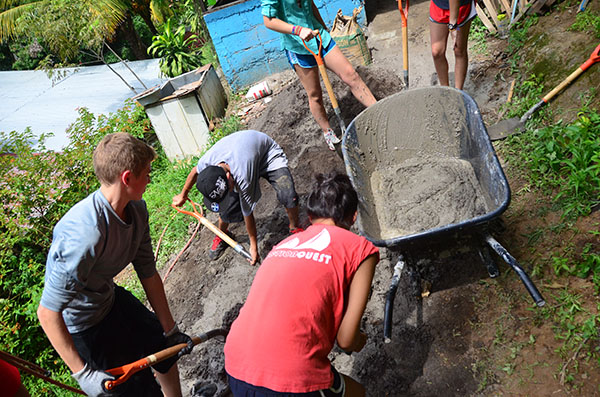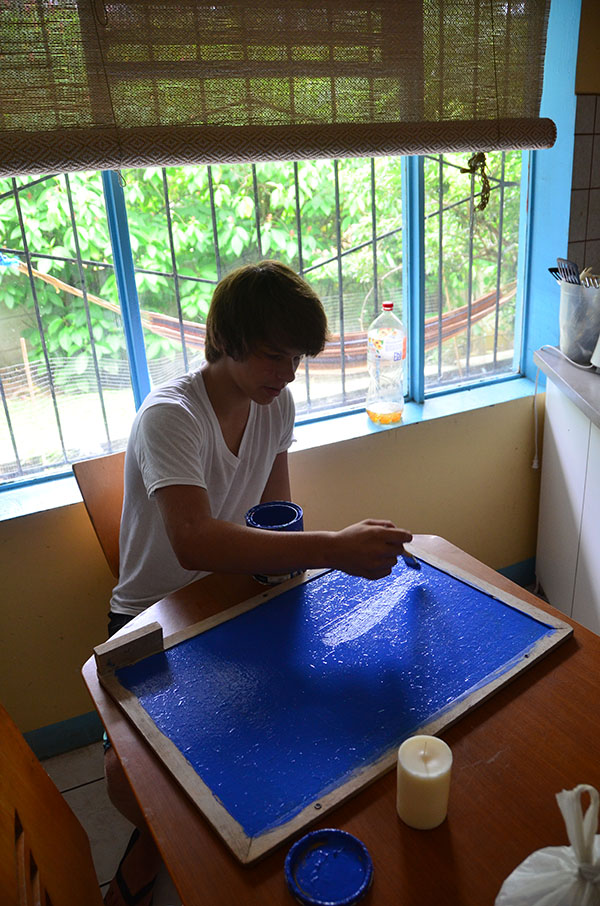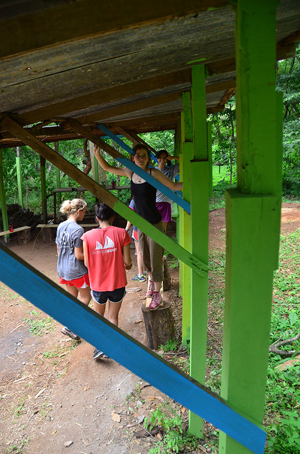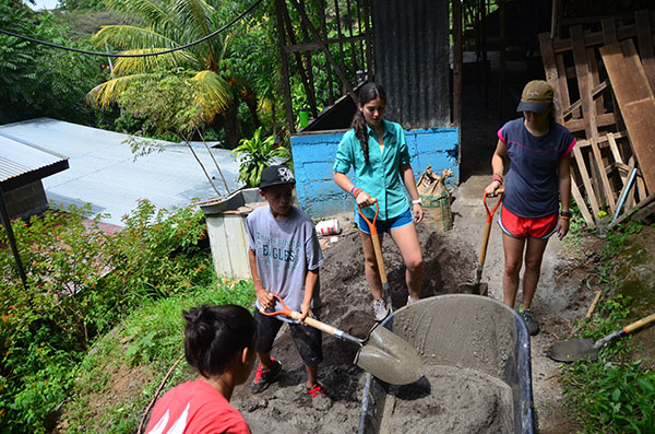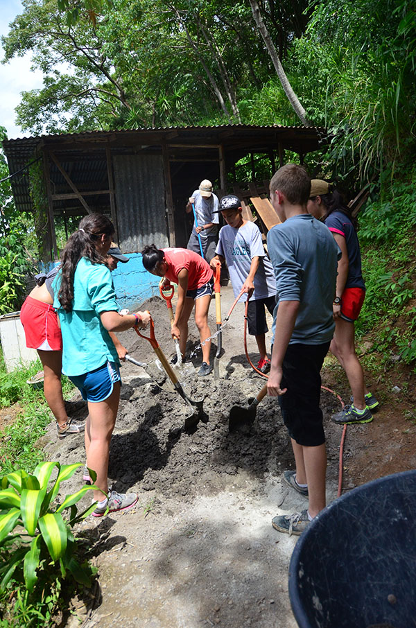 Today we went to La Finca and worked. We almost finished cementing the cabin floor. We also painted the pillars for the fire pit. Another thing we did was organizing donated clothes and cleaned up the playroom. Lunch was amazing with rotisserie chicken, tortillas, and French fries. After La Finca, we drove to Ana’s house where we could use phones to call friends and family. It was an emotional experience for everyone. Then we came home to the best dinner yet! Hamburgers, potato salad, and corn! Then we found out that we are going white water rafting at 6 am tomorrow, it will be fun!