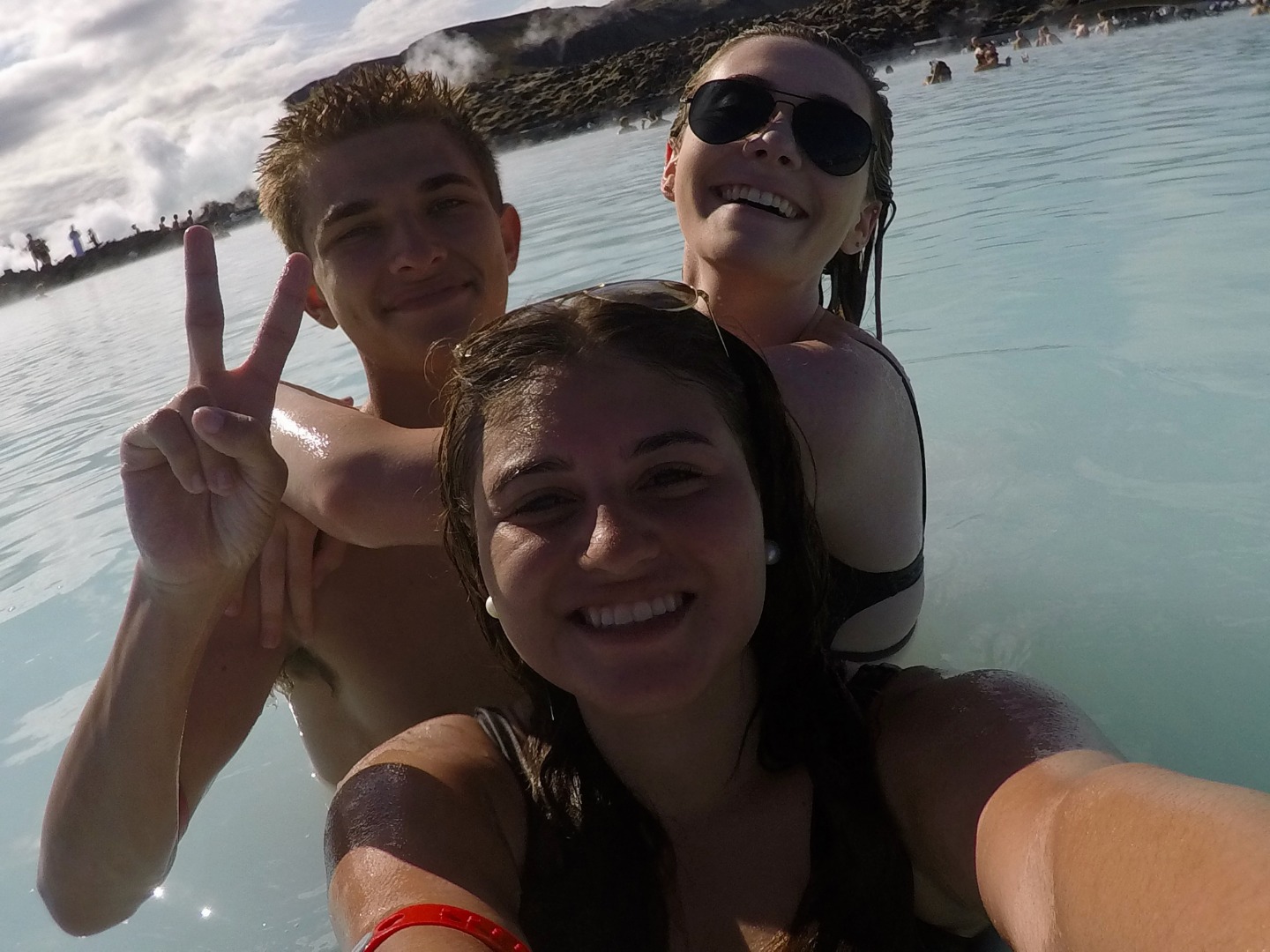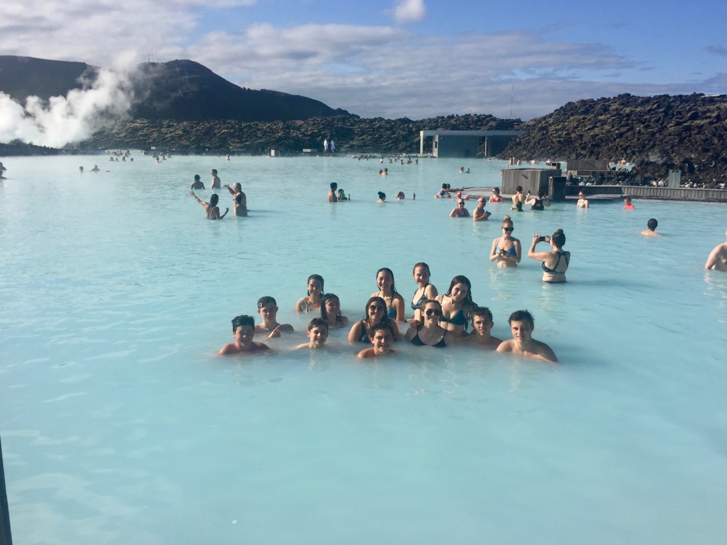 Day 14 started off with a bright, and early 7 A.M. wake up. At 7:30, we headed to the Blue Lagoon, quite possibly the coolest and biggest hot tub ever. The Blue Lagoon boasts many wonderful amenities that we got to enjoy; everyone loved the Skyr smoothies and the silica face masks. Exploring the massive lagoon provided everyone with either a slight sunburn or an accidental photo-bomb. While we were there, students explored the sauna and steam rooms, making a new friend with a German man from Canada. After getting out of the lagoon, even after a long rinse, everyone suffered from oddly stiff and crusty hair.