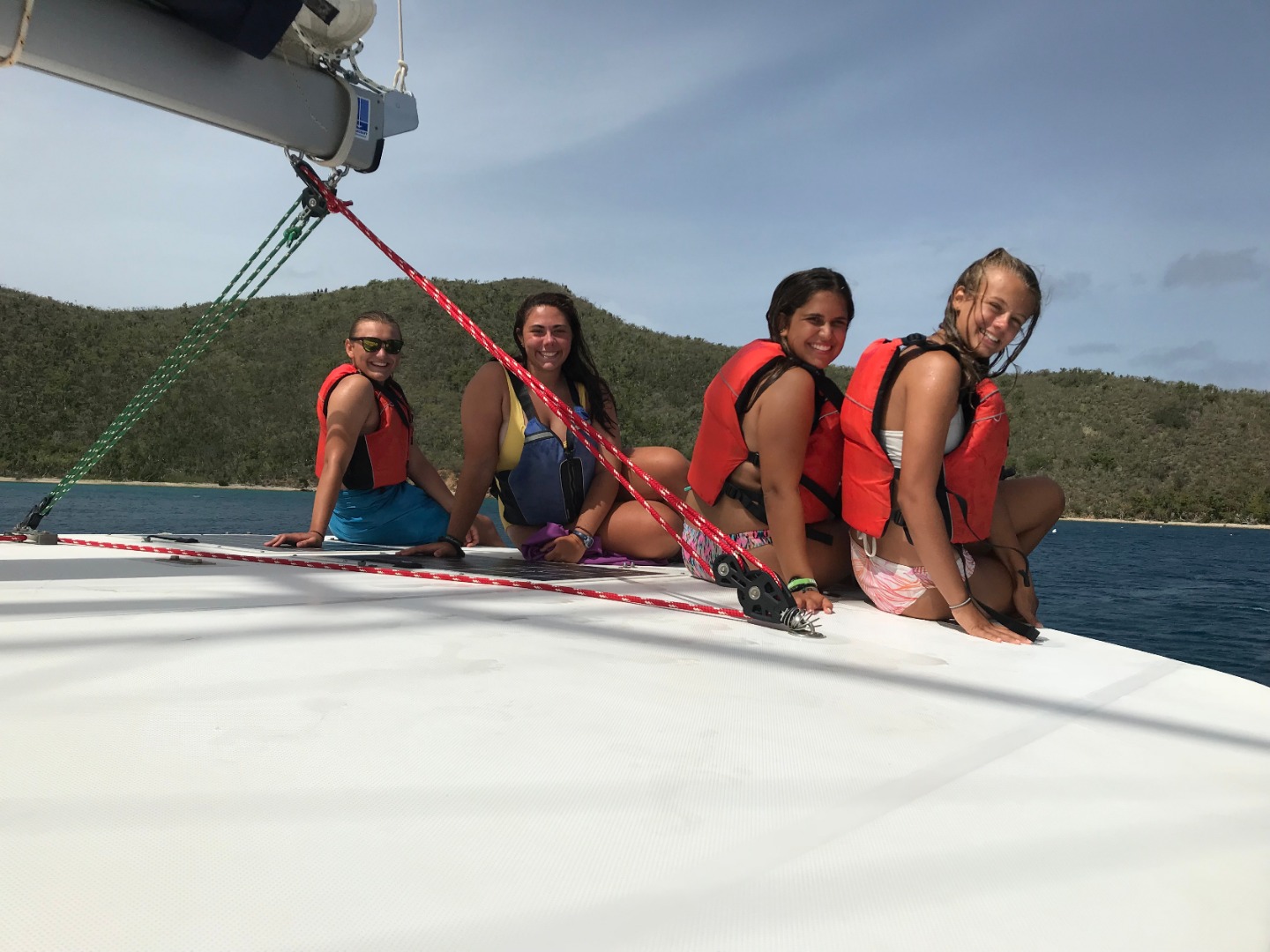 Today began with a super early wakeup to be on shore by 7 for a hike. We hiked around Spyglass and came together as a group at a helicopter pad. Normally we would hike to the top of Spyglass, but the trails haven’t been fully cleared since Hurricane Irma. At the helicopter pad, we received our handprints with our goals that we made at the beginning of the session and reflected on whether or not we achieved them. During the hike, we were told to find two rocks, a “pretty rock” and an “ugly rock.” The pretty rock was meant to represent something about ourselves that we learned during this trip that we want to take with us when we go home. The ugly rock represented something about us we want to change when we go home. Many people shared what both rocks meant to them and threw the ugly rock off the pad. We hiked back down to the boats and were allowed a quick last swim in the ocean. We then sailed back to the dock and had a few hours of shore time while the counselors finished cleaning the boat. After shore time, we took dock showers and got ready for our third and final barbecue. The barbecue was at Pussers, the restaurant next to the dock and we ate burgers, hot dogs, chips, chicken, and wings. The barbecue was pretty short, and we then headed to the dock for a final talk with Mike. He talked about all the different Action Quest programs, what our final plans are, and ended the night by reading “oh the places you’ll go.” After the dock talk, we cut up our GoBeyond flag into 11 pieces and signed everyone’s piece. We said goodbye to the rest of ActionQuest and are now getting ready to hang out until we fall asleep. We are all super sad to leave each other tomorrow, but everyone is excited to go home.