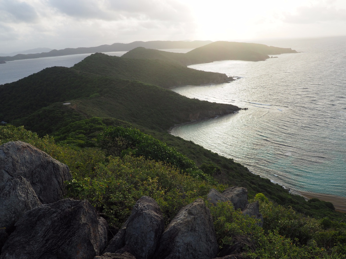 We had an early awakening this morning beginning with a hike at five in the morning up Spyglass Hill for the second and final time this trip. We had previously hiked up this trail on the second day of the program, and this was an amazing opportunity to reflect on our whole trip and reminisce about memories from the past three weeks. Along the way up the steep hill, we collected two rocks– one that we thought was pretty and one that we thought was ugly. Once we were looking over the view, we threw the ugly rock down with characteristics that we wanted to let go of or fix, and we kept the pretty rock to represent all of the good aspects of this trip. Then, we had a race day with ActionQuest, so I got to attend a meeting with all of the skippers. It was so exciting to race with sail side and put our skills to the test! Even though we came in dead last, the whole sail was so much fun and great ending event. We then spent the rest of the afternoon cleaning the entire boat and packing up everything, which was sad. We are currently getting ready for our final barbecue tonight and our last night together!