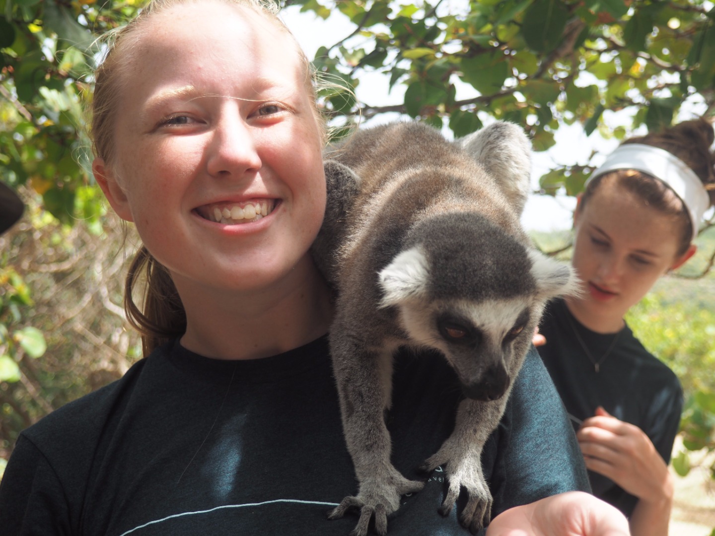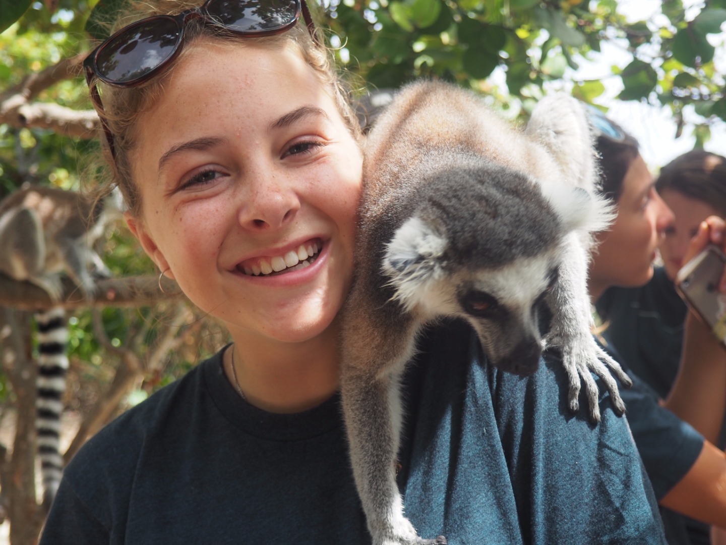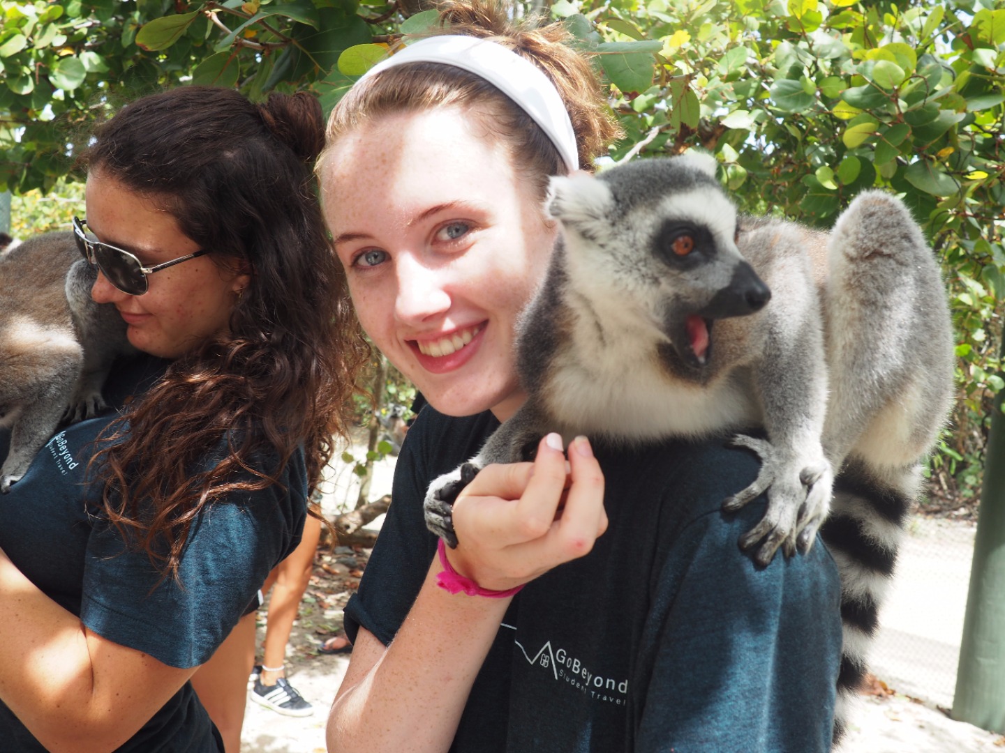 This morning we woke up flying through the air. We had strong winds, and the boat was bouncing up and down. We tried to eat breakfast, but more cereal ended up on the floor and in the ocean. The cheerios would fly out of the bag as you poured them. We were sailing to Necker Island, which is owned by Richard Branson. The island is one of the most amazing things I have ever seen. There is one dock that you can enter on, and it’s closed to the public. Once we go to the island, we were met by Vaman the head of the wildlife. We got a tour of the island and saw all the unique animals that live on the island. We saw lemurs that are almost extinct and who looked like little pandas. Then we walked to the beach that had golf clubs, and some boys tried to hit balls into the ocean. While some just missed the ball, Sean threw the golf club into the ocean. Sean then sprinted into the ocean to save the club. We were laughing so hard but were convinced Sean was going to be banned from the island. After the golfing accident, we got to do one of the coolest things I have ever done. The island is the home of lemurs, and we got to feed them. We went into the cage, and little lemur hands would hold ours. If we put the treat in between our lips, the lemurs would give us a little kiss. The ringtail lemurs would jump out of the trees onto our shoulders. I loved having a lemur named Wolf sitting on me. They had the cutest little hands, and it was so hard to say goodbye. The next amazing animal I got to hold was a baby turtle. The island had a turtle garden where they raised turtles. I held baby turtles, teenage turtles, and I pet a 600 lb. Tortoise. The main house was something out a magazine. It was perfect and the definition of paradise. It had a swing, wrap-around porch, a pool table and a Jacuzzi on the top floor with a view of the whole island. After Necker, we went on a sail to Marina Key. I sailed the boat, and it was a little scary at first, but I got the hang of it. We stopped to get water and docked the boat. Docking the boat was stressful but successful. As usual, dinner and the evening was a blast. We sang, cleaned and headed out for a program-wide activity.