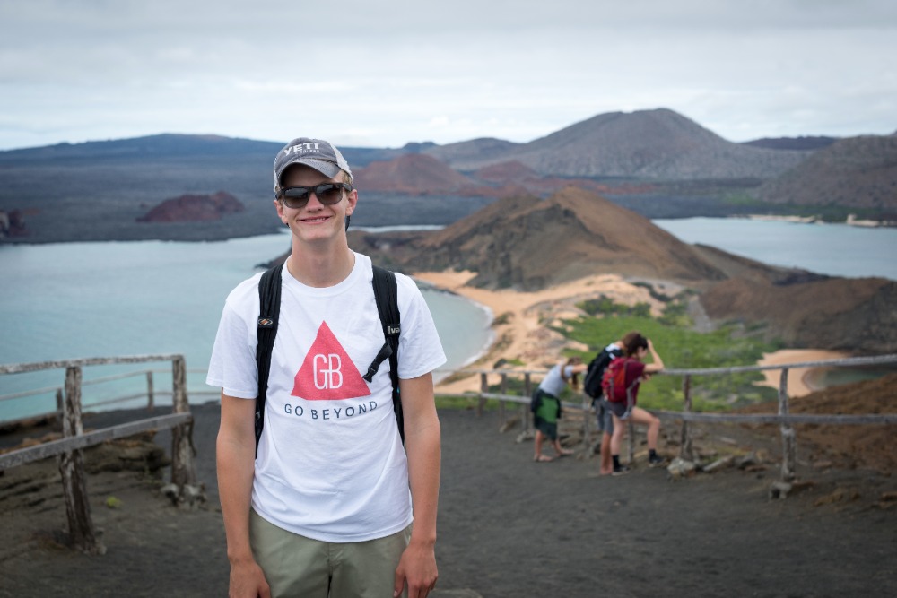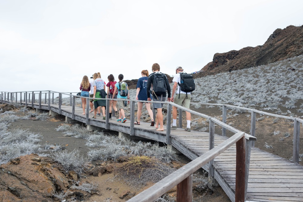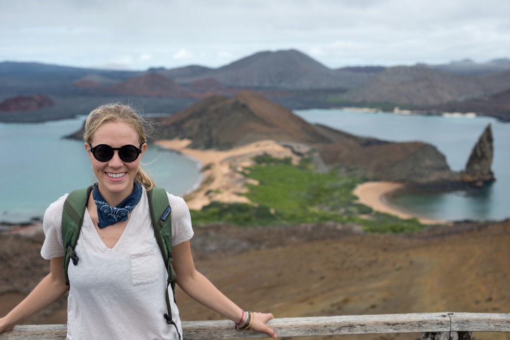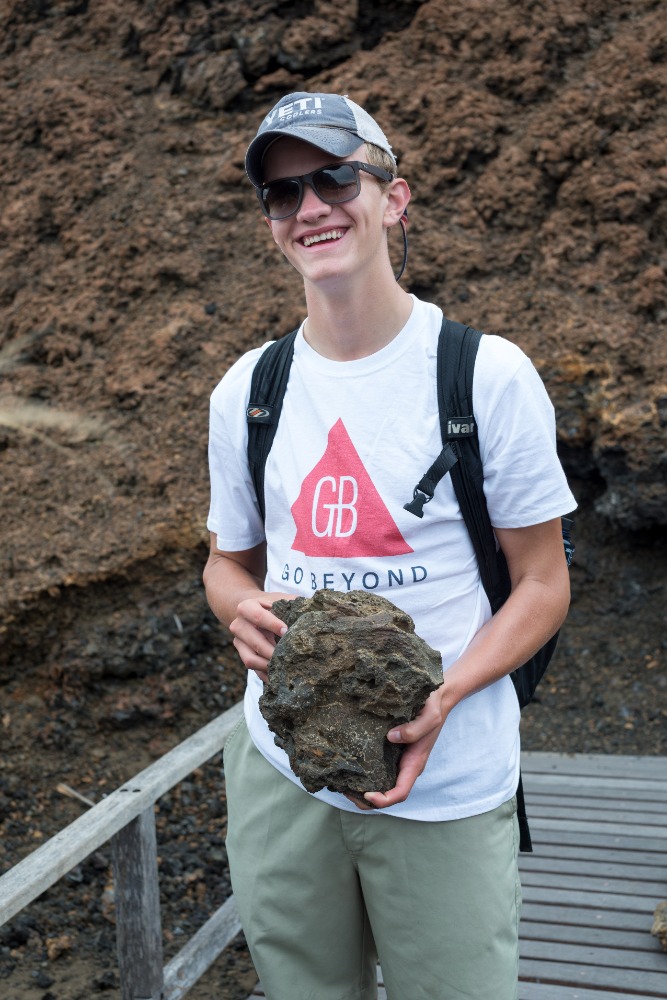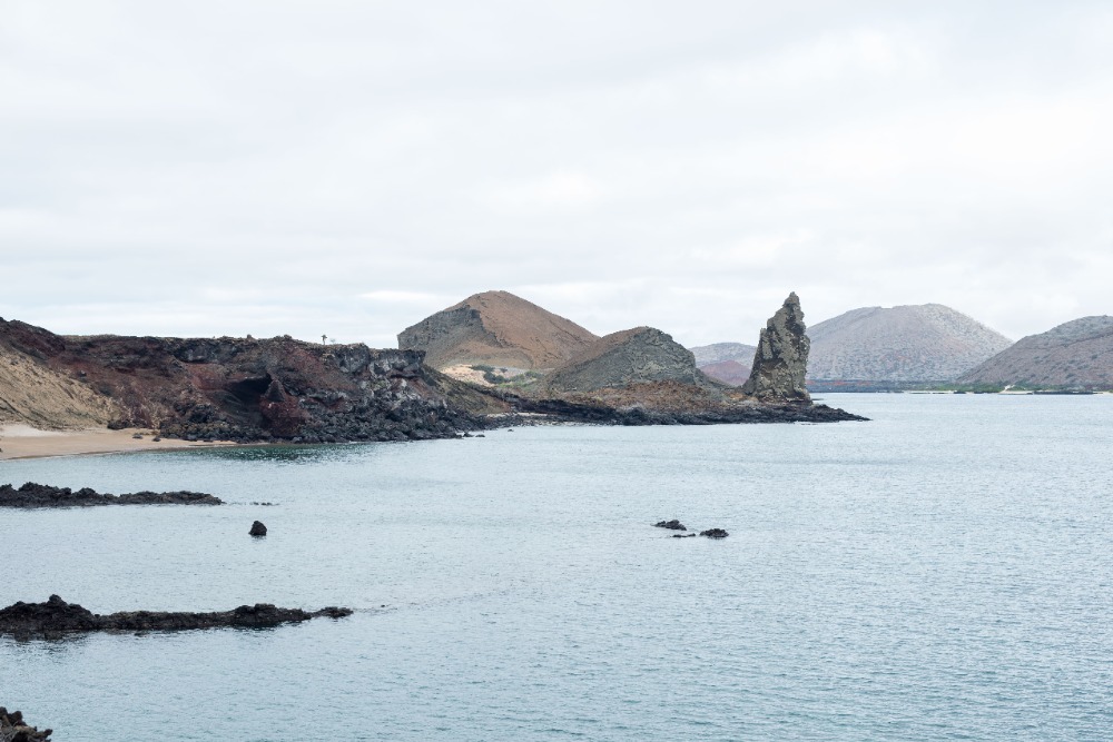 Once back on the boat, we grabbed our beach and snorkel gear and made a quick turnaround to head to the orange beach at the base of Pinnacle Rock. Some decided to stay on the soft sands and sunbathe, and the rest of us donned our spring suits, masks, and snorkels and went out to explore the waters. This time around, we saw even more incredible things while snorkeling. We drifted by huge corals and watched fish of all shapes, sizes, and colors weaving around intriguing lava rock sculptures. We saw parrotfish, wrasses, and puffers, but the highlight of our journey didn’t come until we rounded Pinnacle Rock and encountered a group of three tiny penguins sitting on the rocky shore. We hovered there, smiling and exclaiming about how cute our black and white friends were for a good five minutes before heading back to the beach to play with the others and our new floaty pretzel and doughnut.