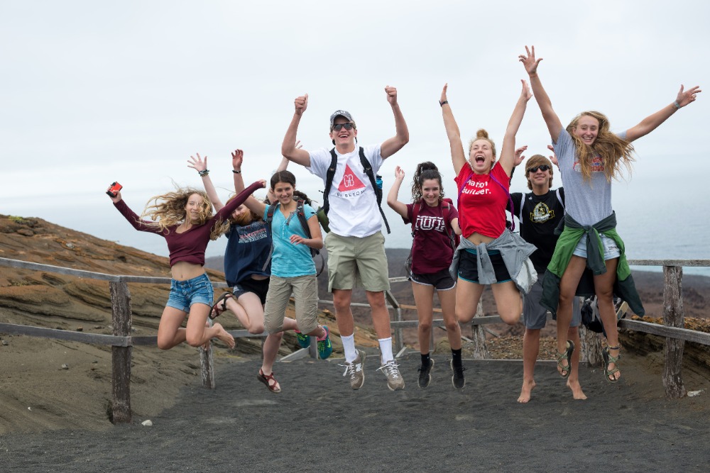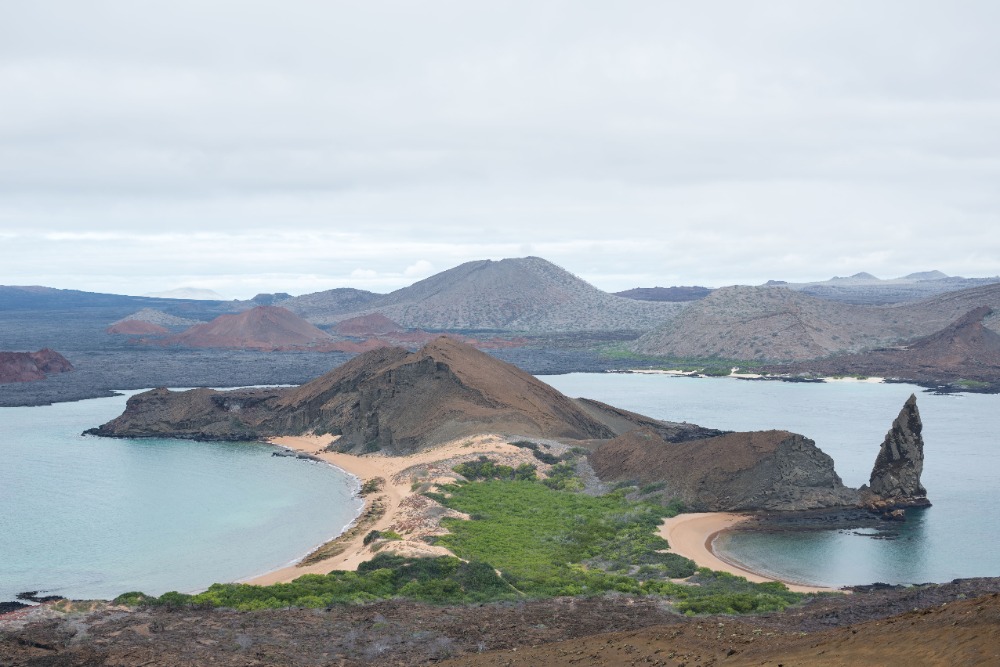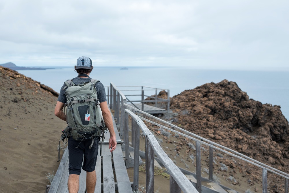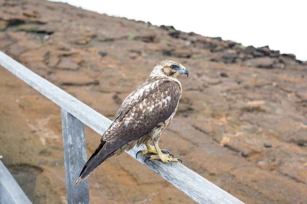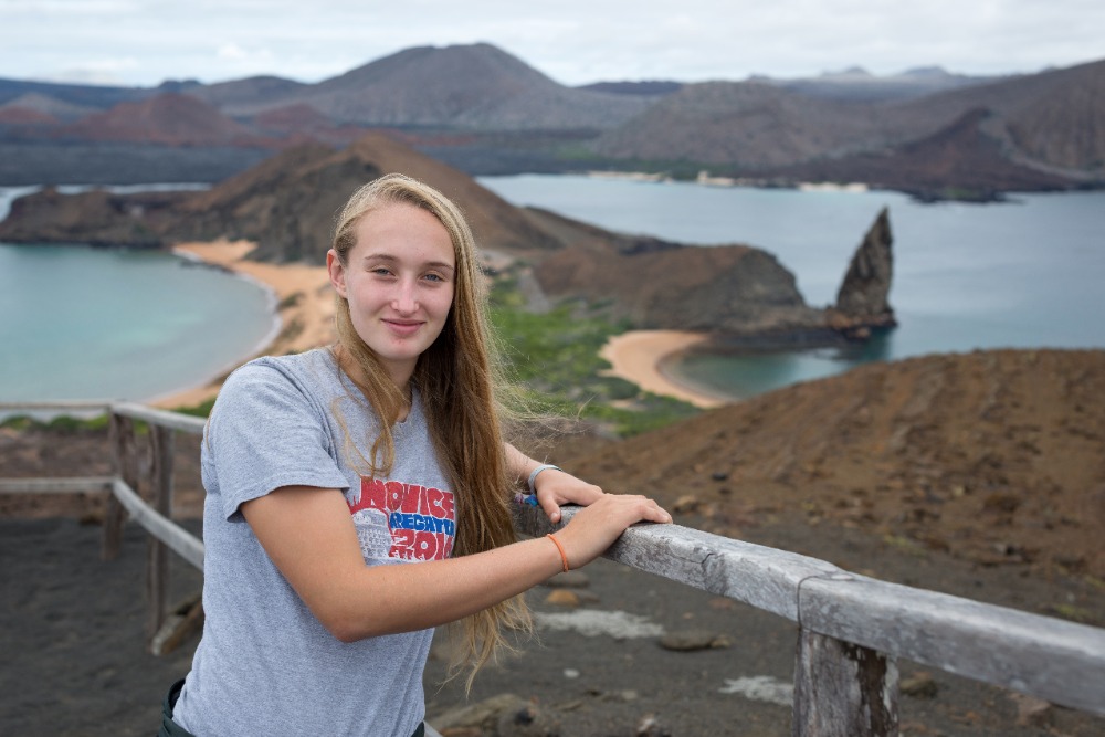 Once back on the boat, we grabbed our beach and snorkel gear and made a quick turnaround to head to the orange beach at the base of Pinnacle Rock. Some decided to stay on the soft sands and sunbathe, and the rest of us donned our spring suits, masks, and snorkels and went out to explore the waters. This time around, we saw even more incredible things while snorkeling. We drifted by huge corals and watched fish of all shapes, sizes, and colors weaving around intriguing lava rock sculptures. We saw parrotfish, wrasses, and puffers, but the highlight of our journey didn’t come until we rounded Pinnacle Rock and encountered a group of three tiny penguins sitting on the rocky shore. We hovered there, smiling and exclaiming about how cute our black and white friends were for a good five minutes before heading back to the beach to play with the others and our new floaty pretzel and doughnut.