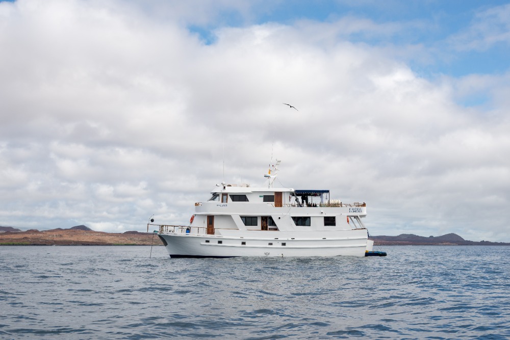 Our incredible day didn’t even end there. At dinner, we told our guide that wed seen dolphins while he was holed up in his cabin, and he threw a small fit, prompting the crew to crack up and then make us crack up during our daily briefing. Fabian couldn’t get us to stop laughing (some of us to the point of crying) for a good five minutes. Then, we had a great final dinner of spaghetti, Chop Suey (basically shrimp, pork and veggie stir-fry) and pound cake with brightly colored peach sauce. After dinner, the crew started yelling about sharks on the back deck, and we all ran out to see huge (6-7 feet long) Galapagos sharks swimming into and out of the darkness in the water behind our boat. Most people went inside, but a couple of us stayed out on the top deck’s deck chairs, watching the stars come out while Cap scanned the water endlessly with a Maglite in search of more sharks. The sliver of a moon had already set, and there were more stars than I have ever seen in my entire life, all of them unimaginably bright. The entire sky was filled with pinpoints of light, and the Milky Way arched overhead, luminous against the dark of space. The stars twinkled, and shooting stars streaked across the sky every couple of minutes. To be honest words just can’t do these experiences justice. They were indescribably magical. Now, this is the kind of day that you remember for the rest of your life.