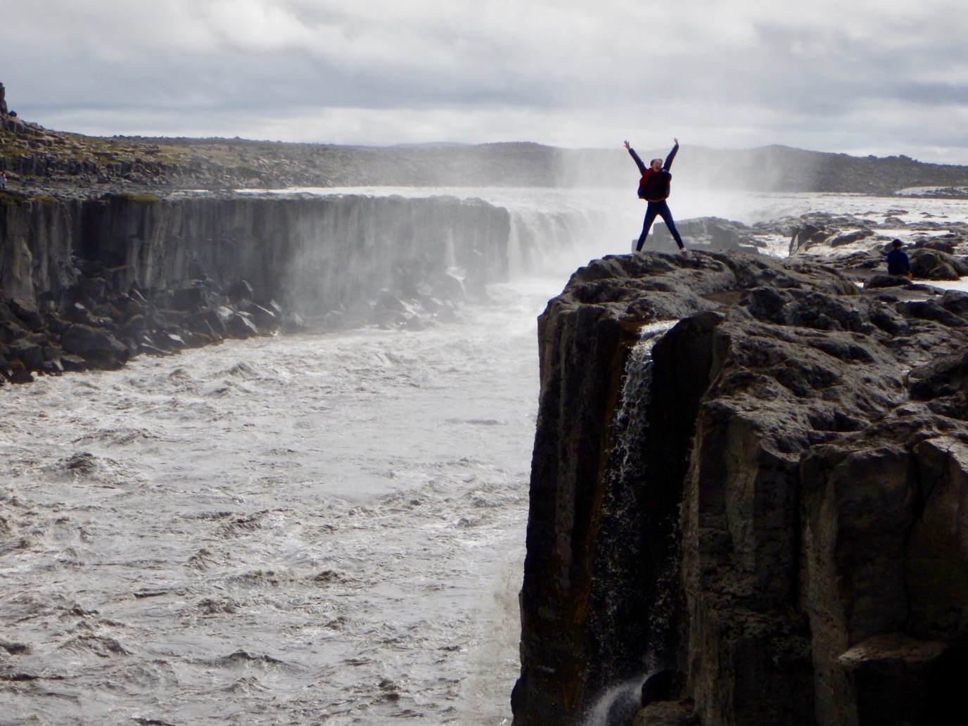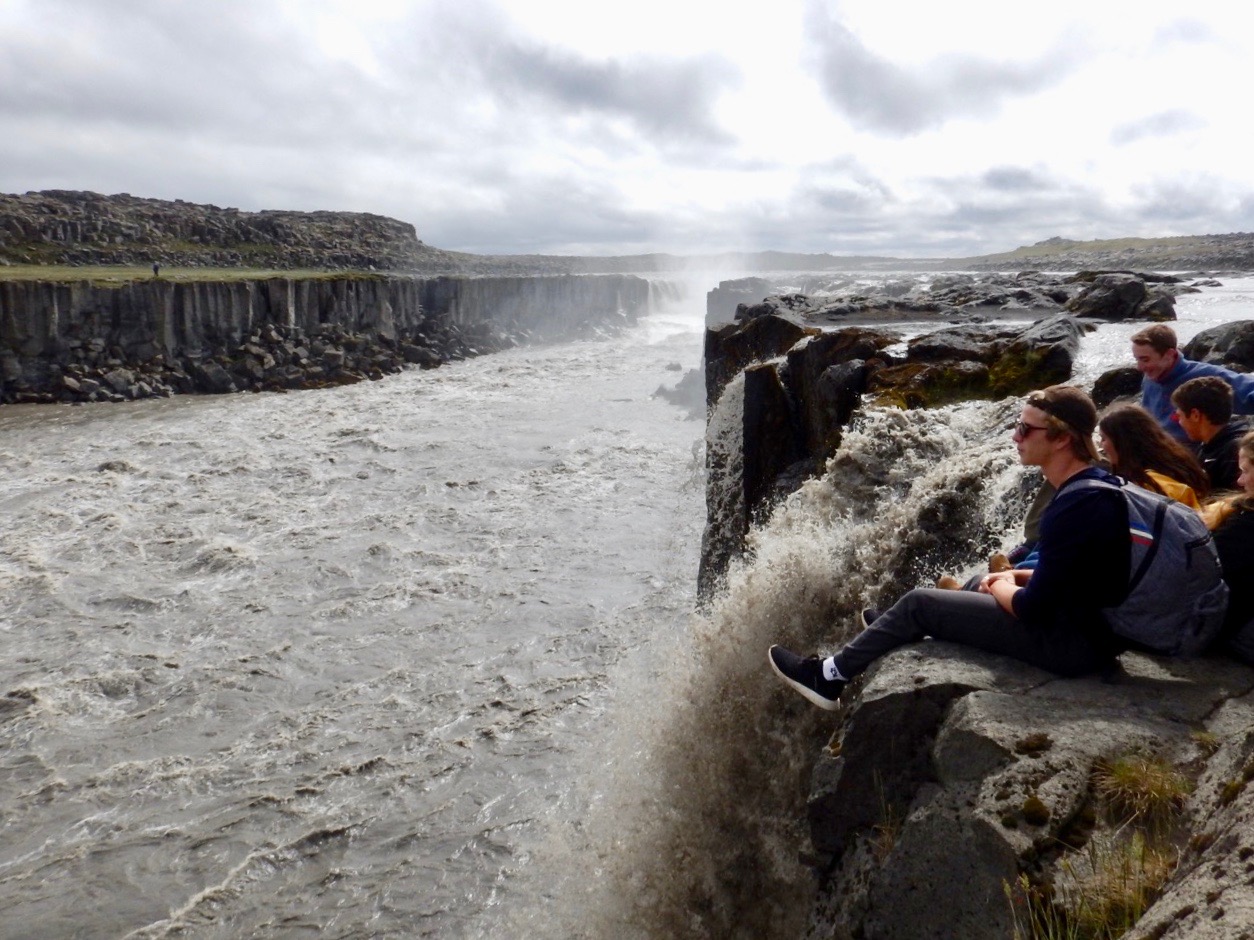 WATERFALLS!!!! We visited two waterfalls, Dettifoss and Selfoss. Our first waterfall, Selfoss, was the smaller of the two but just as gorgeous. We sat on the edge and could almost feel the water rushing. This is also where our dear friend Snyder fell in the water. Snyder then had to wear Lulu’s flared bottoms (this was quite a laugh). We then headed over to Dettifoss, the larger of the two waterfalls. Here we could feel the mist from the big downfall. It was a very beautiful, powerful place that no one will ever forget. This was also Jammi’s favorite waterfall (which made it so much better).