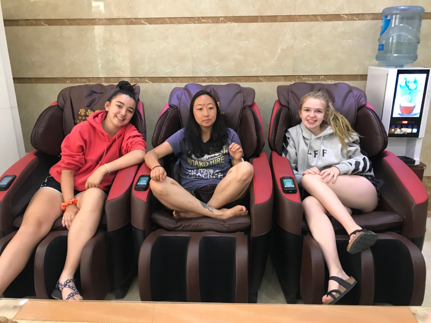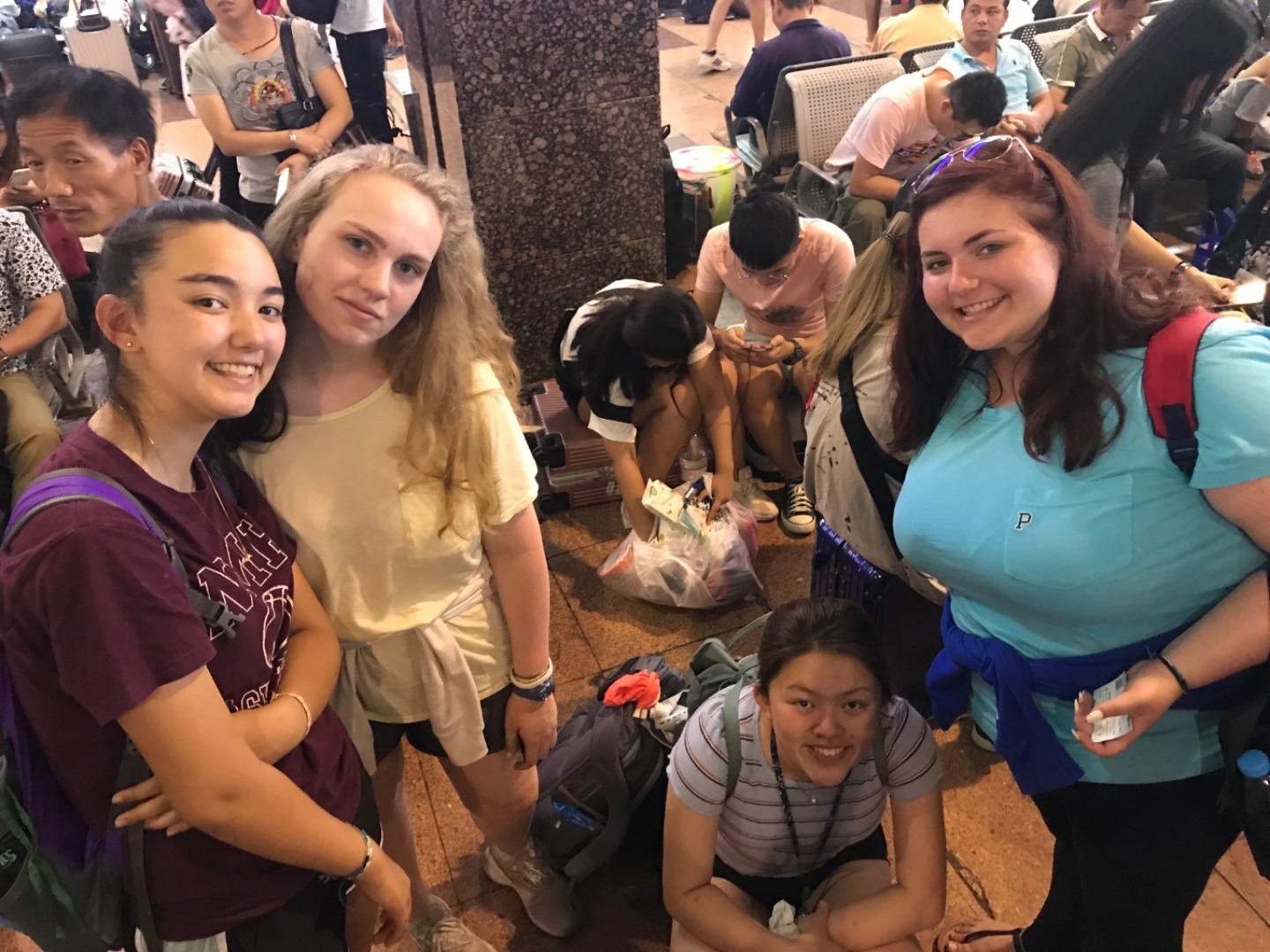 Our day was started like a lot do in China… on an overnight train. This time, however, was a little different, as our alarm clock was a train lady yelling at us to wake up and give her our tickets. You know, the usual. We arrived in Baotou ridiculously early: 5:30 in the MORNING. At least we were greeted with the amazing and now homey Baotou breeze as soon as we stepped off of the train! Ten minutes later, we were back in the Tan Van, the majority of the group exhausted and not feeling that hot, a couple of us lively and ready for another day. At the hotel, we swapped roommates based on sick levels so that the 3 of us who felt great wouldn’t catch anything (and could sleep without being woken up every 5 seconds by coughing). We were given a lot of time to rest and nap, but for those of us who were up for it, breakfast was at 8. We split in half, some to Queen Image, the bakery with the best caramel bread, and Hallie, LongYun, Evan, and I headed for some wonton soup and Chinese hamburgers from a local hole-in-the-wall. [BTW, a Chinese hamburger is a delicious biscuit-like bread and pork sandwich] Surprise, after that was a quick Tell Me stop for some snacks/drinks because we can’t go a day without our beloved teas and White Rabbits. We had another nap time, or talk time for some people, before a Chinese lunch courtesy of the orphanage and health checks with the staff. Most people did not go to service today due to fatigue/illness so they could rest, so Olivia, Ryan, and I went alone. It was oddly quiet, but we did have a good time soaking in our last hours with the kids… they’ve really captured our hearts, and we’re gonna miss them so much.