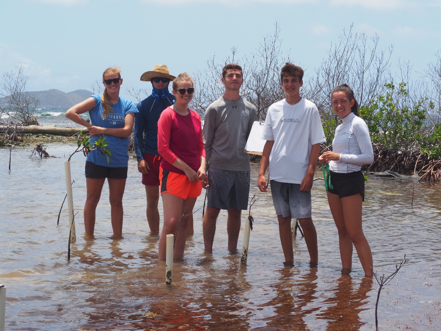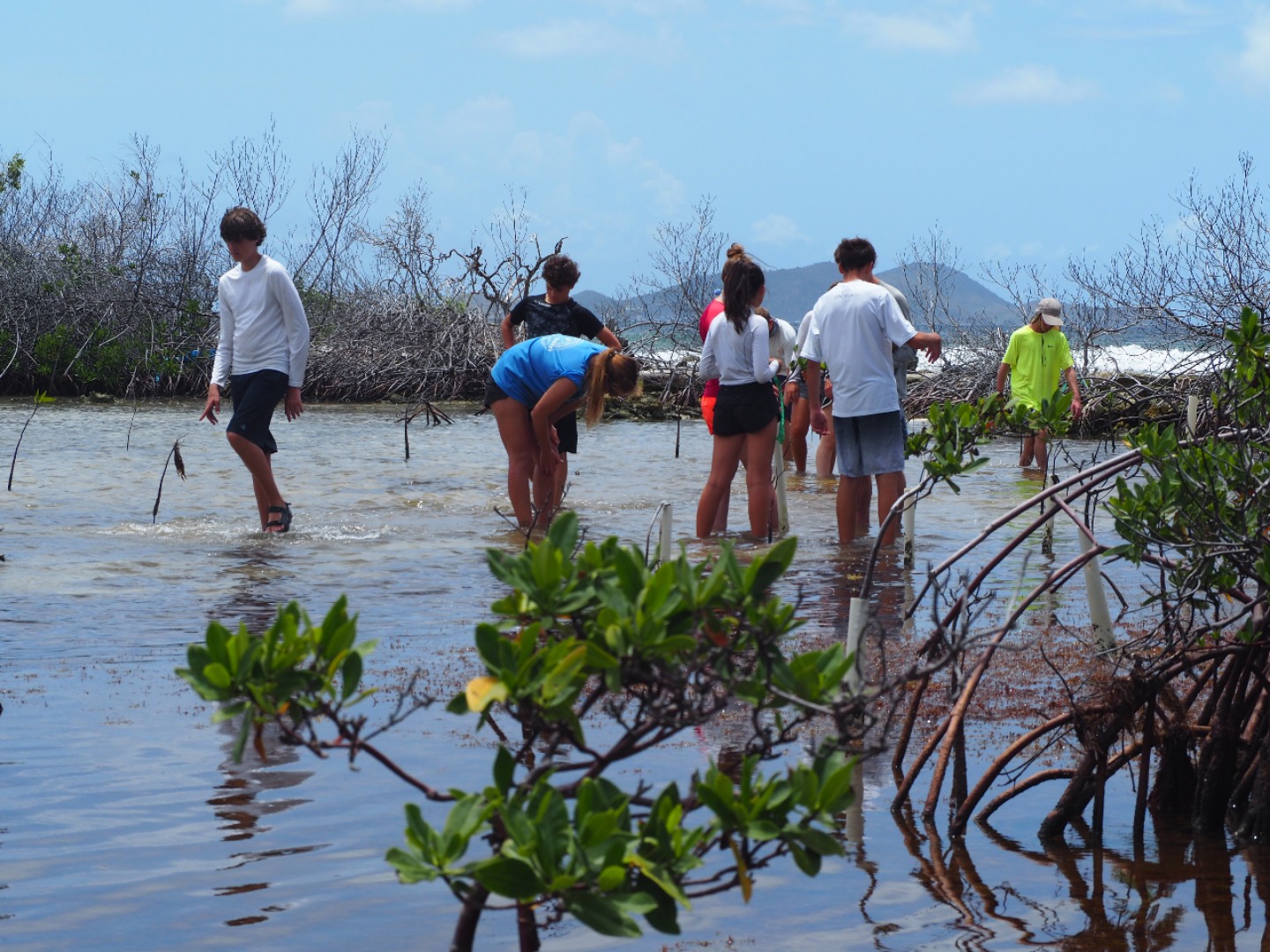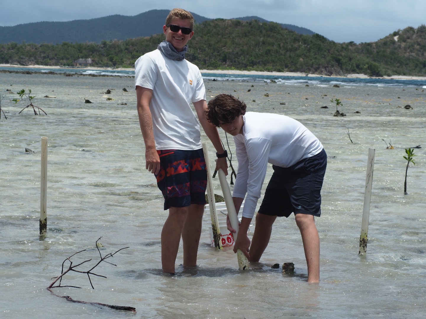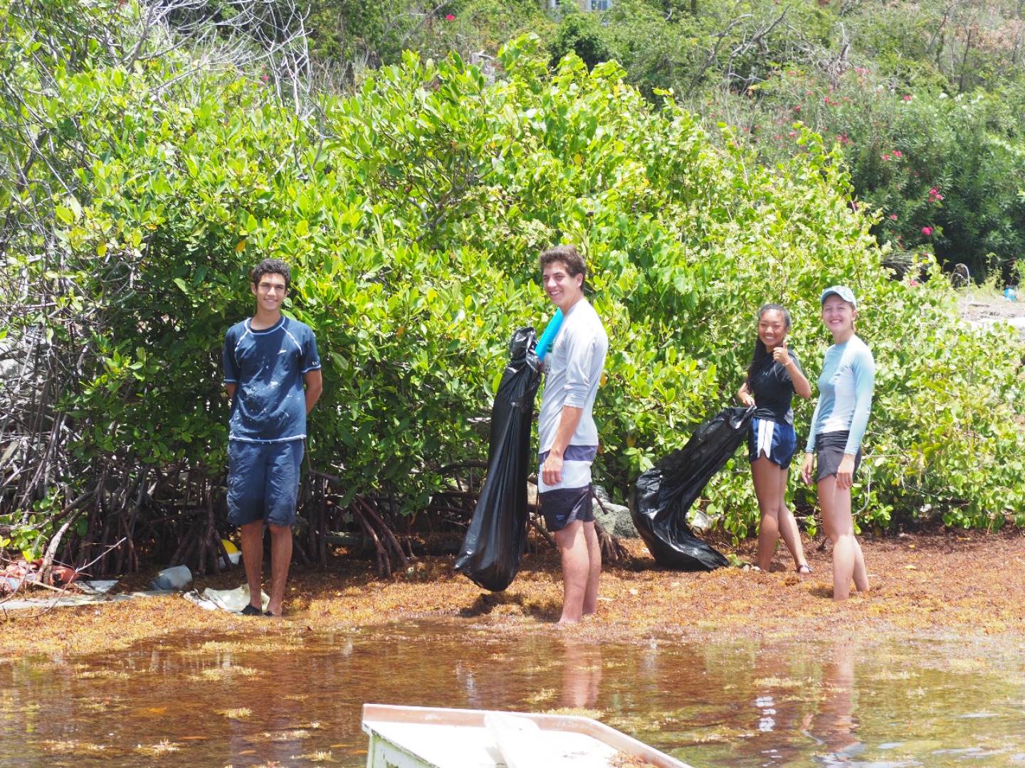 This morning we woke up in Great Harbor Peter and were able to sleep in much later than usual, and believe me it was well needed. After a bunch of days of service, we needed our sleep, so it was very pleasant to sleep in until 8:30. Everyone was happy to have french toast for breakfast which is usually the best option on the menus, so it was an amazing morning. With full stomachs, we were ready for some service, and we embarked on a quick sail over to Hodges Creek, Tortola. Our service for the day was to collect data on a mangrove forest that had been planted 15 years ago but had been destroyed by Irma. These mangroves were very important to the ecosystem because they protected the land and animals around them so without them the balance of the entire ecosystem was thrown off — groups of people measured and counted the mangroves as well as collected data to see how the population was doing a year after the storm. Jackson, Joey and I were tasked with finding trash and planting new mangroves, it was sad to see how a once healthy forest was destroyed by 200 miles an hour winds during Irma but hopefully, we were able to plant new ones that will grow shortly. After some work, we headed down to Rhode Town, the capital of the BVI’s for some shore time. Rhode town is one of my favorite places because of the good food and grocery stores so I couldn’t wait to go back. We all called home, stocked up on snacks and drinks and sailed back to Great Harbor Peter to join all of the other AQ boats. It was a very hot day, and we were all eager to shower so it felt amazing and most of us were doing cool jumps off of the deck which was a great end to the afternoon. We then had breakfast for dinner which is also one of my favorite dinners, so I was content with the day. As the trip is coming to a close, it is very bittersweet because after 4 AQ summers here I love this place so much and it feels like home.