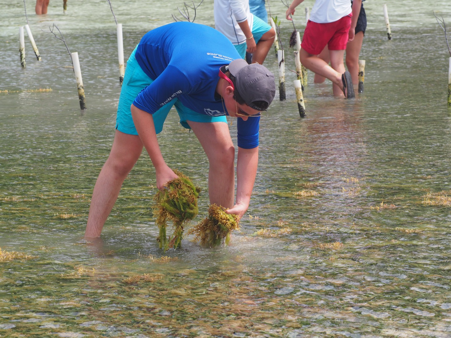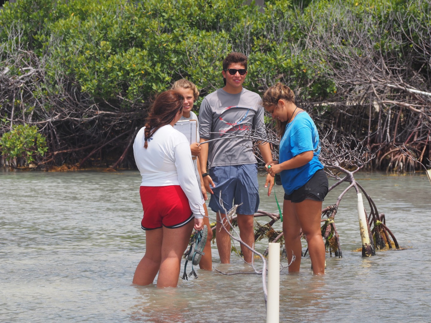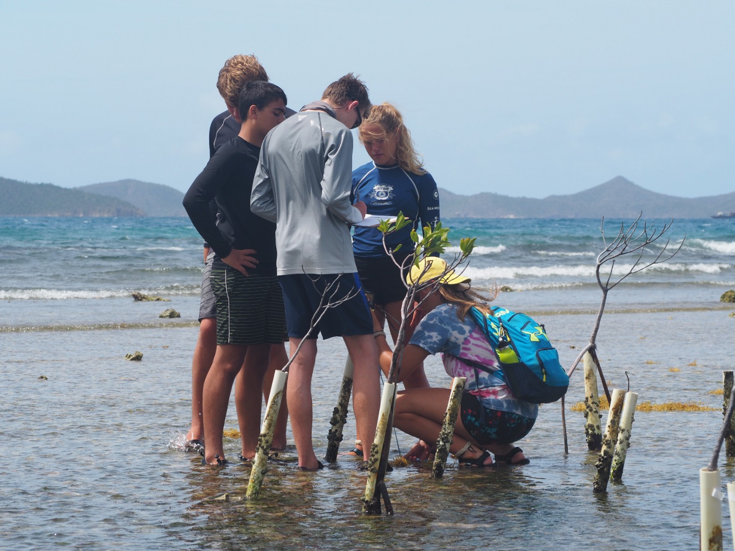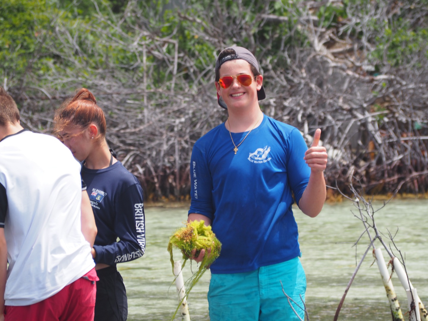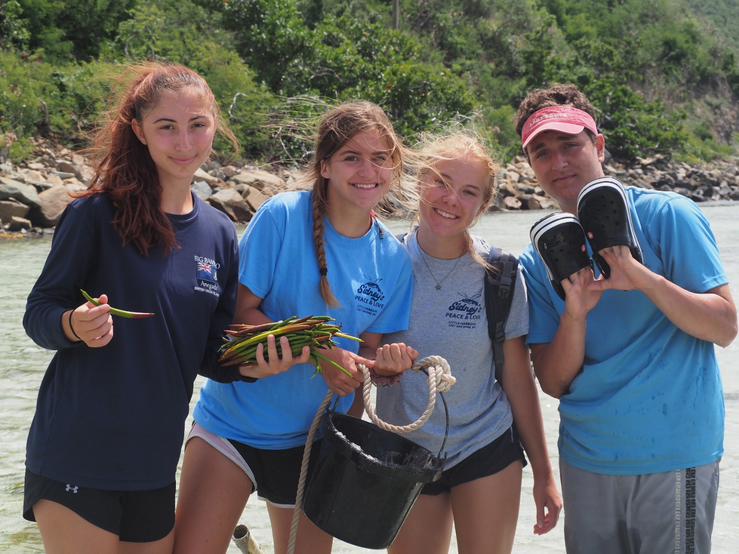 Today our boat went to Sea Cow Bay which is in Tortola. Then, we anchored and dinghied over to the mangrove site where we counted the pipes that were currently housing those plants. Then, we pulled the dead mangroves up and planted propagules. These were collected in Anegada, wherein our free time when we were tagging turtles. They fall off the mangroves as seeds and float. This is called a viviparous plant. After we finished, we sailed over to Road Town. It is the most industrialized area that we have been to. Here, we had shore time. There was a large grocery store where Darius bought a crate of Ting. Ting is a popular drink in the Caribbean that our whole boat is obsessed with so we all got to indulge when we got back to the boat. We then ate dinner and had a chill rest of our night.