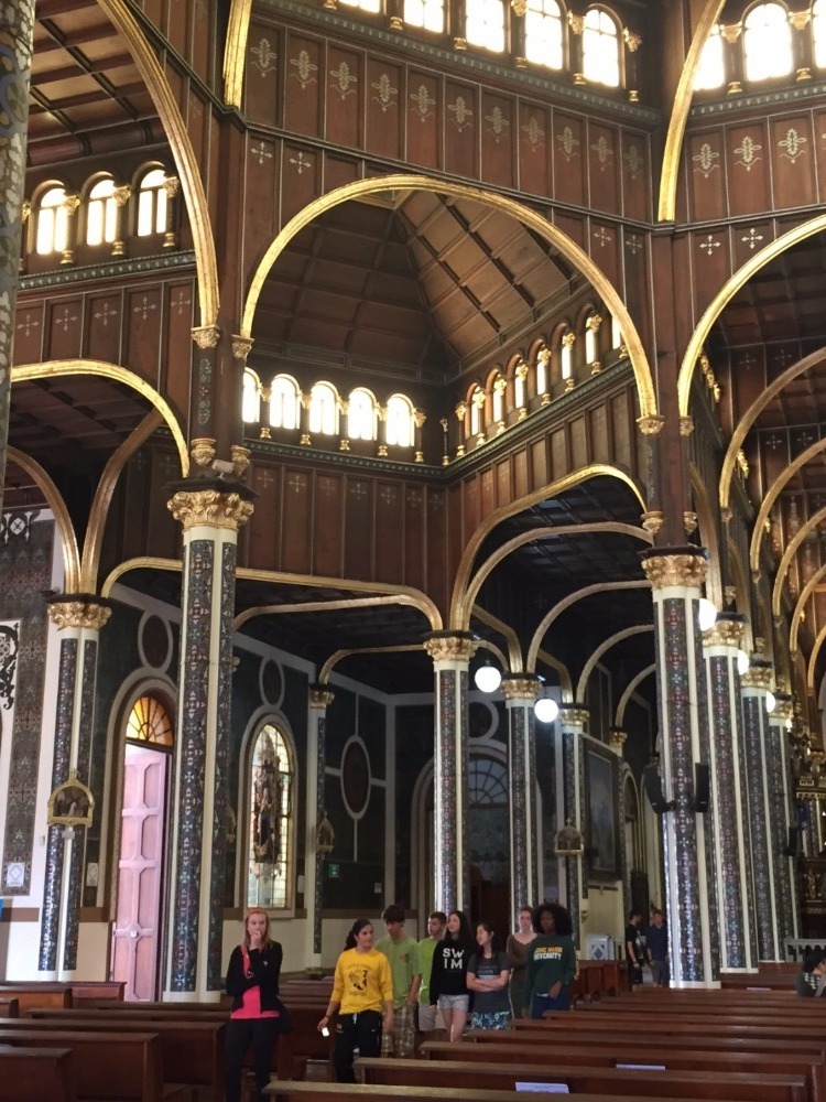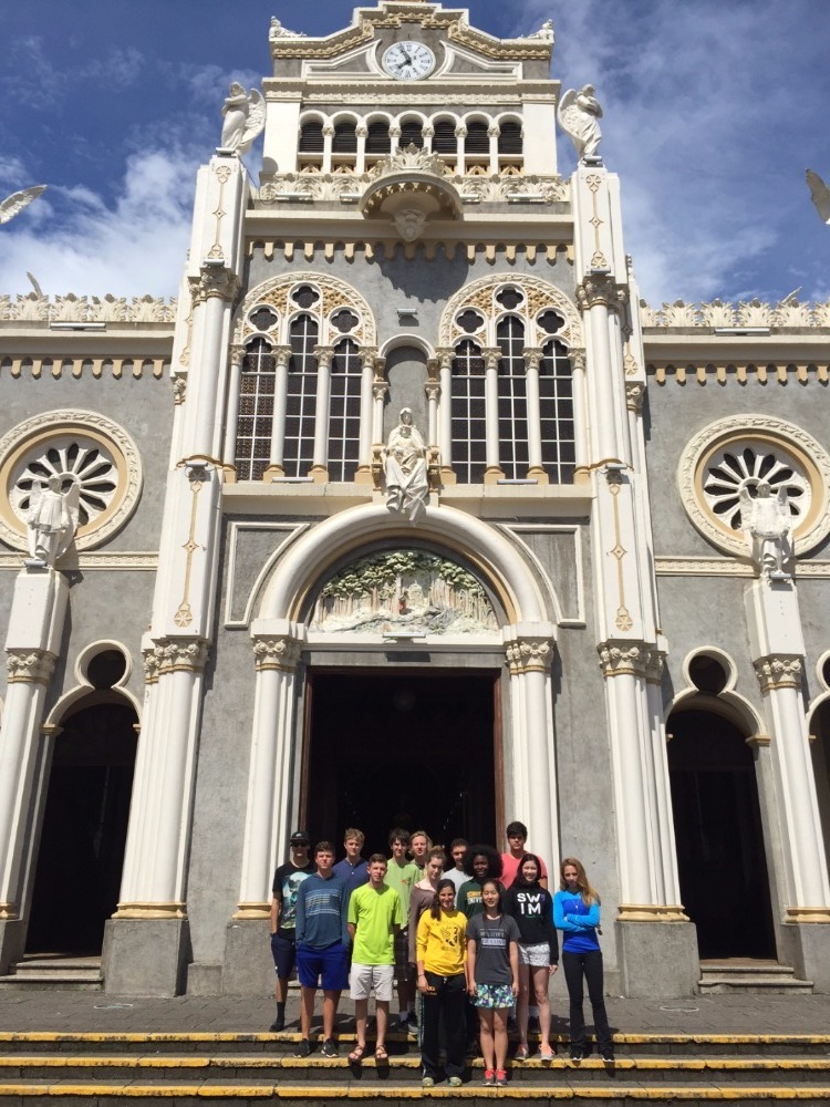 Today we woke up early to go on a hike in a Costa Rican cloud forest to see the elusive Quetzal, the national bird of Guatemala. The hike took roughly two hours, and despite the fact that we could not find the bird, it was cool to see the forest. After eating lunch, we left the hotel and headed to the Basilica of Cartago, where we saw people crawling on their hands and knees as part of a pilgrimage to repent their sins and ask for health. After the basilica, we drove to a town called Piedades where we met our host families. In the beginning, it was awkward and weird to be living in another person’s home. But as the night progressed, we started to feel more and more comfortable. Today was an interesting day!