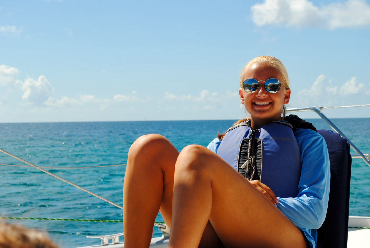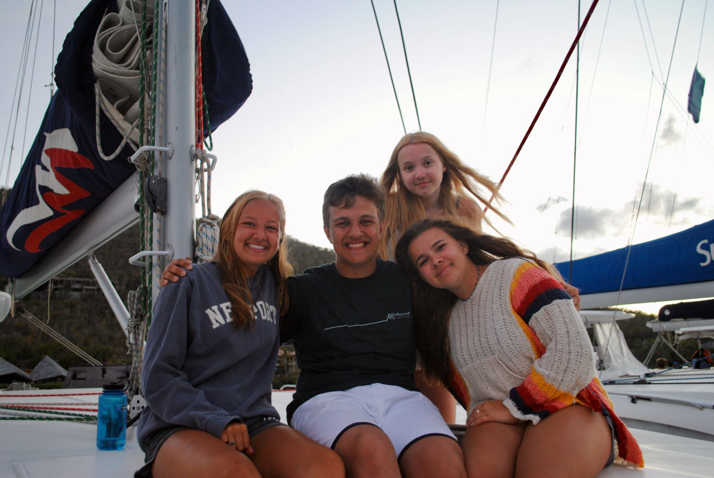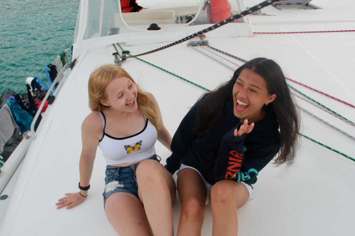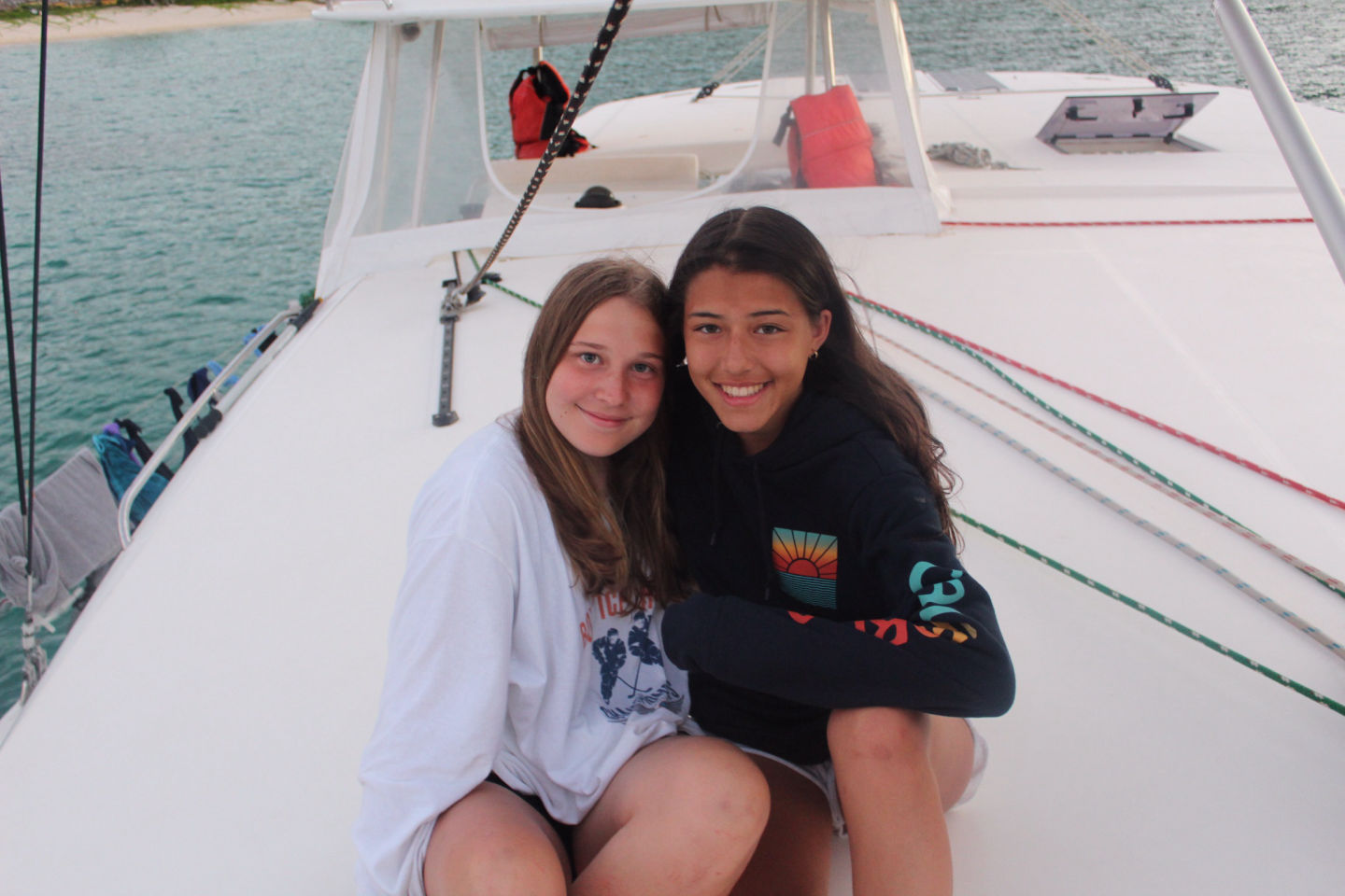 Today was the first day we got to sleep in on the boat. Gwen made us pancakes for breakfast, and they were sooo good! Right after clean-up, the Rebuilding Island Life students headed back to the school in a dinghy to continue working on our playgrounds. It was a lot of hard work, but we made a ton of progress, and it was so rewarding to see the kids having a blast on the swings — the principal at the school grilled burgers for us which was super nice. While we were at the school, the Preserving Paradise students went on a short hike and learned all about plastics. After lunch, we headed back to the boats and learned about catching and tagging turtles. We then got our snorkel gear and headed out for about an hour searching for the turtles. Unfortunately, no one was able to catch one, but we learned that “no data” is still good data. All three of the boats were rafted together, so we were able to eat dinner on the other boats and talk to the other students. It was a really fun day, and I can’t wait until tomorrow when the group of Rebuilding students will be able to finally finish our monkey bars.