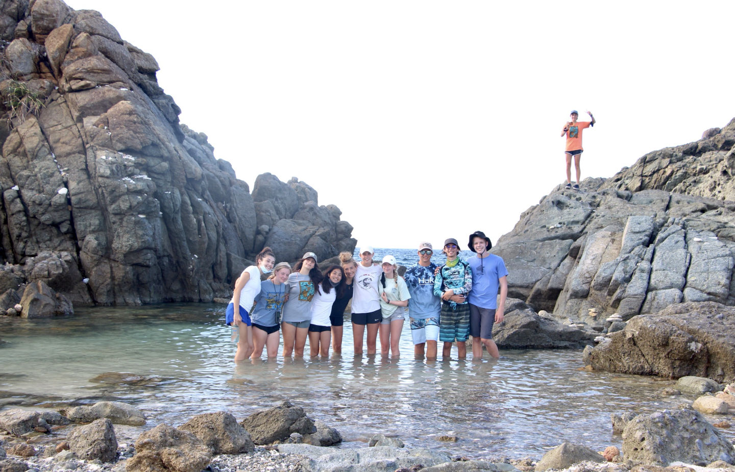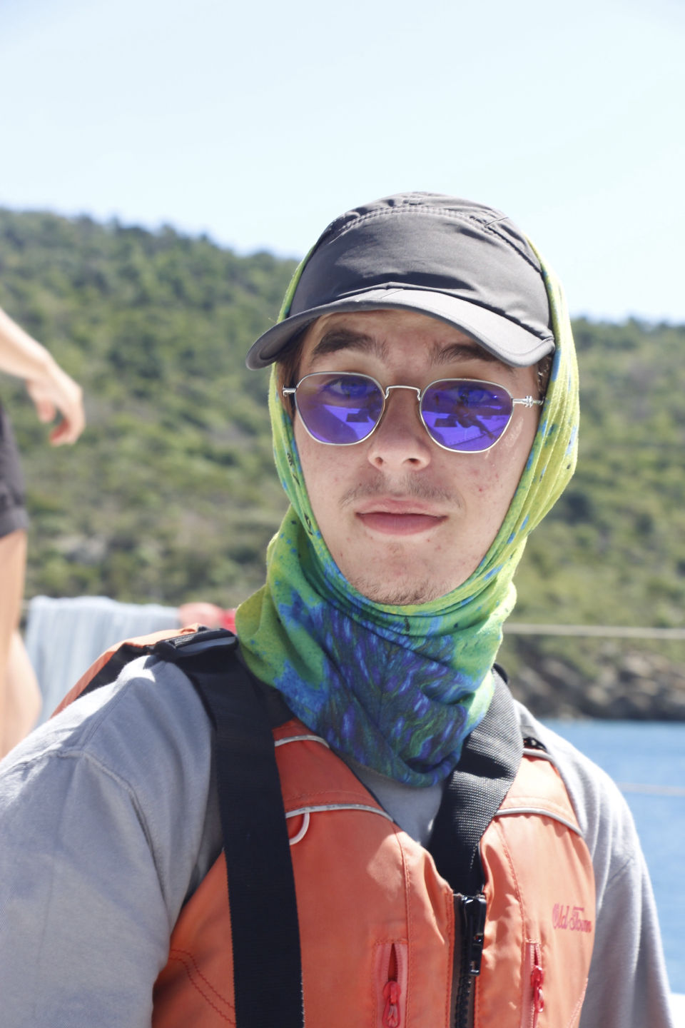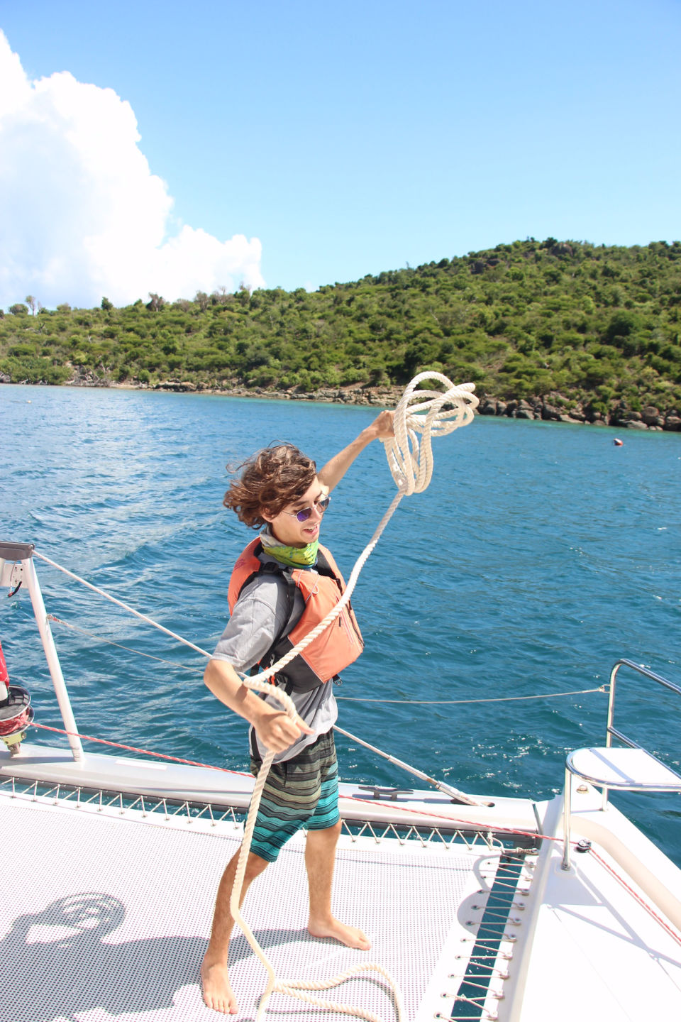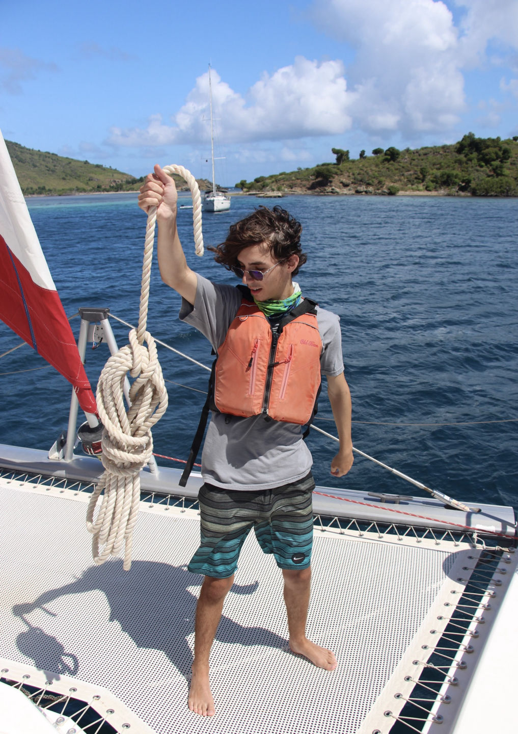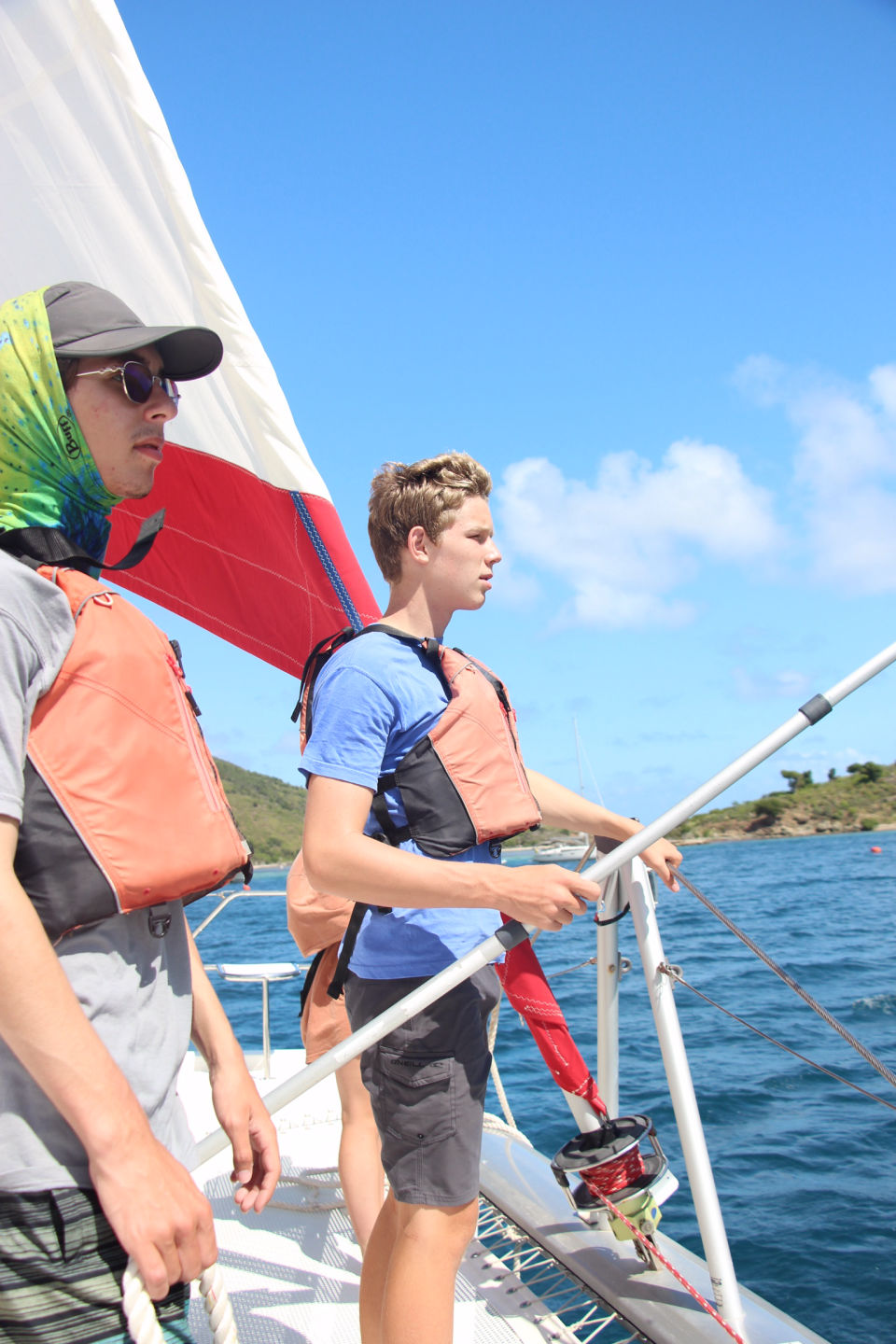 Today we got up and ate oatmeal for breakfast. We then held a mooring ball tournament, where we sailed onto mooring balls and competed to see who could slip them and coil lines the fastest. After this, we sailed to Jost Van Dyke and went to Foxy’s for lunch. Lunch took a while, so while we were waiting, we went to the gift shop. Next, we sailed to the east end of the island, where we monitored mangrove growth and hiked to a bubbly pool. To end the night, we rafted with Tropicool, an ActionQuest boat. We teamed up with them to continue our prank battle and egg Breakaway, ate BBQ takeaway, and had a dance party which was really fun.